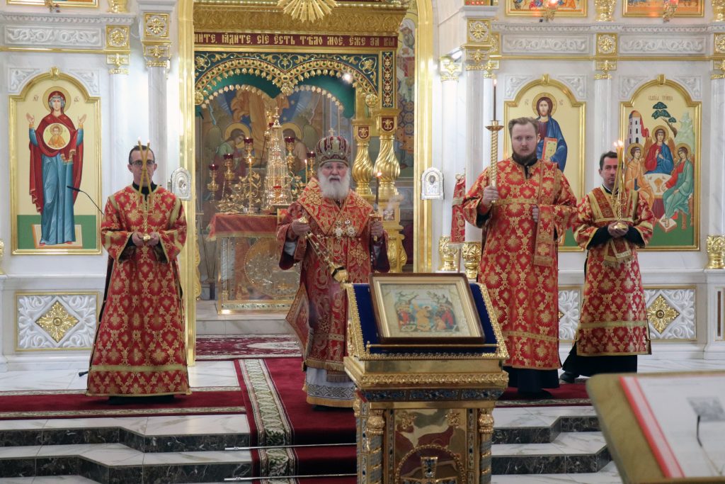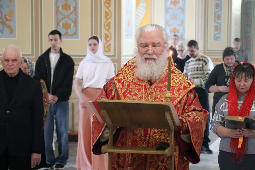 Бузулук. 26 апреля 2026 года, вечером в Неделю 3-ю по Пасхе, епископ Бузулукский и Сорочинский Алексий совершил вечернее богослужение с акафистом Святой Пасхе в Свято-Троицком кафедральном соборе.