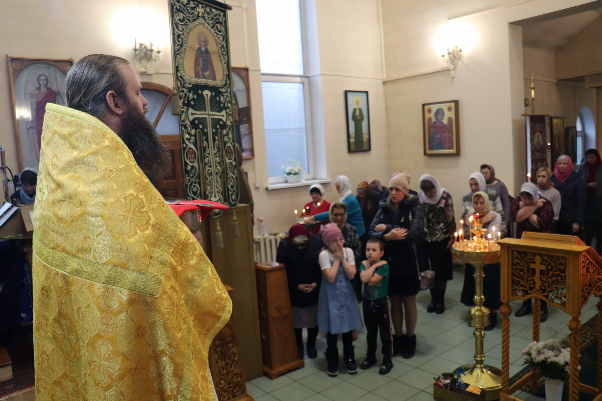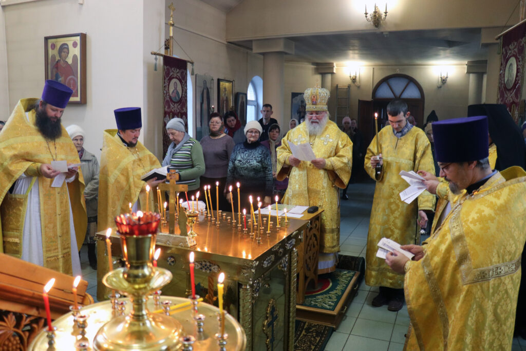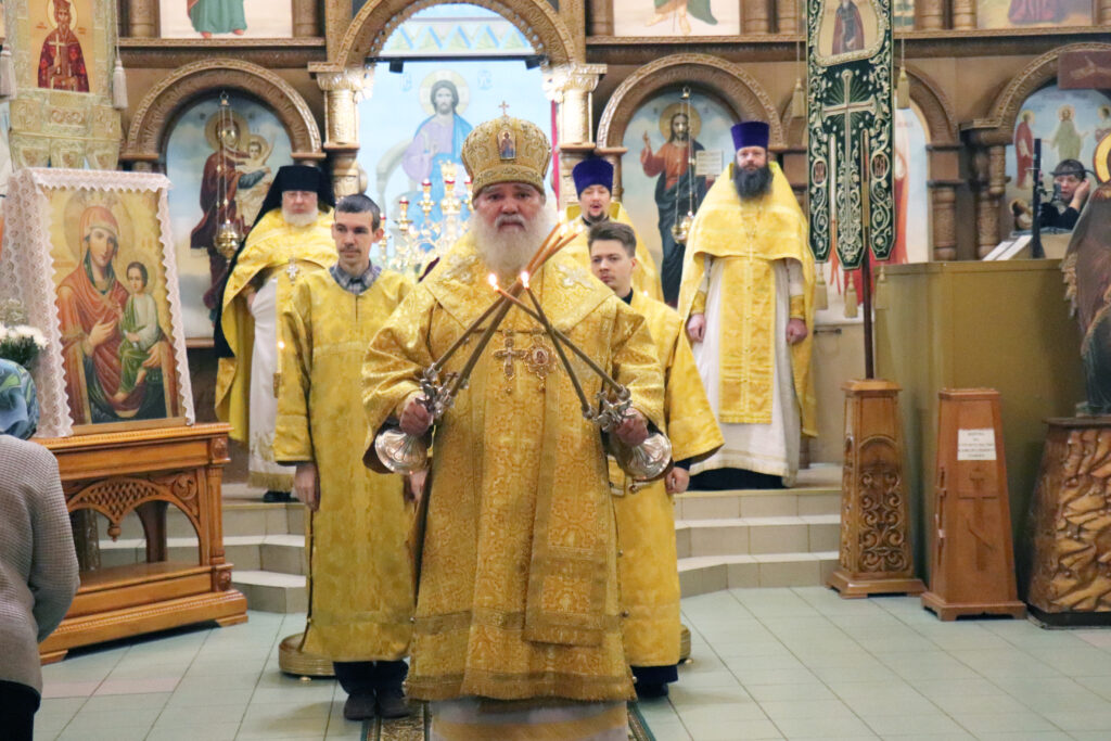 После Божественной литургии и панихиды о всех почивших от века православных христианах Владыка Алексий обратился к прихожанам с проповедью: «Во имя Отца и Сына и Святого Духа. Приветствую вас отцы, братья и сестры с памятью ныне прославляемых святых. Поговорим о них для нашего назидания.