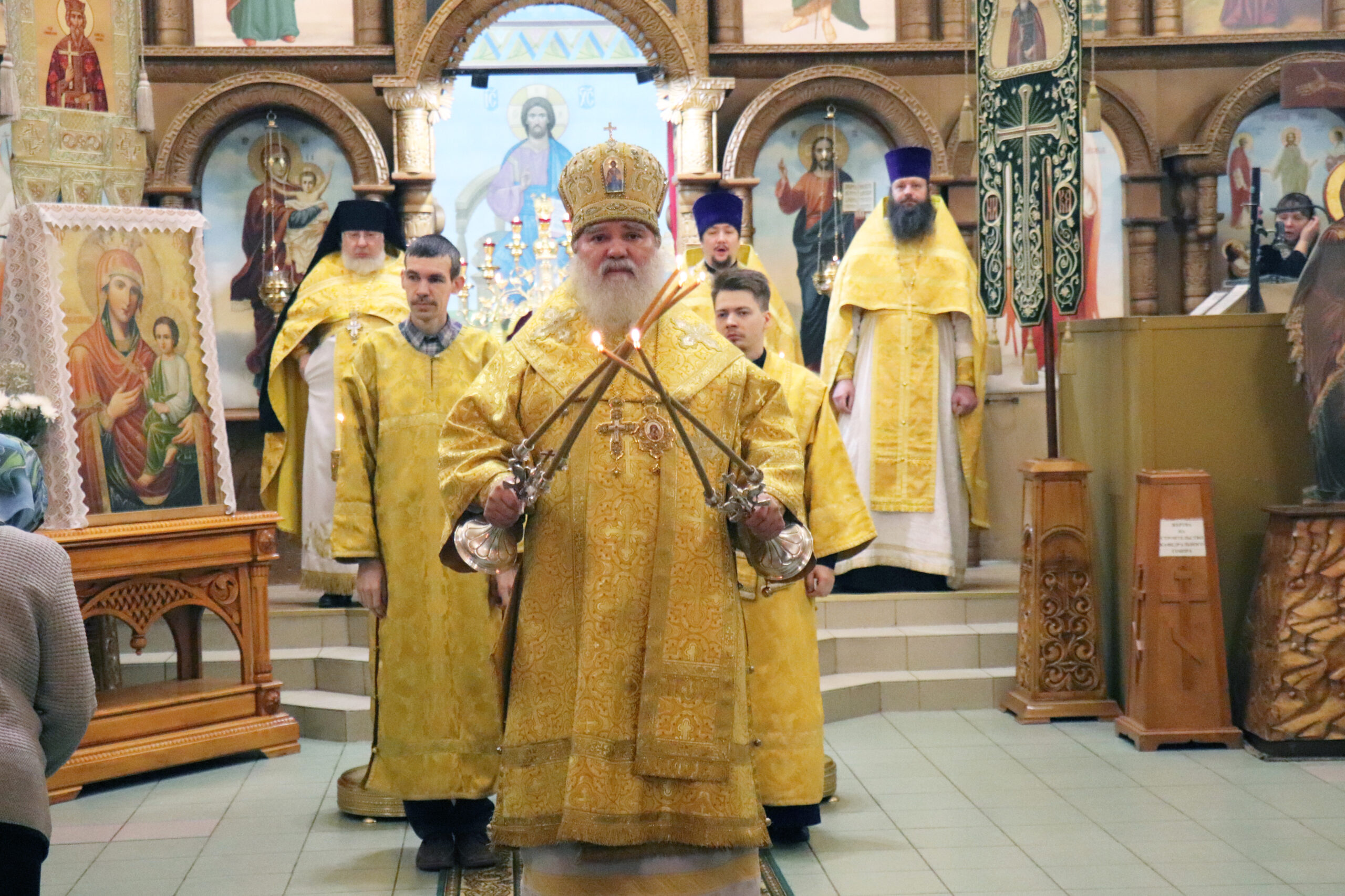 Его Преосвященству сослужили: секретарь Бузулукской епархии иерей Дионисий Горбунов и клирики храма архимандрит Ефрем (Матынцев), иерей Антоний Сотников и иерей Анатолий Марченков. Богослужебные песнопения исполнил хор храма под управлением Наталии Задориной.
