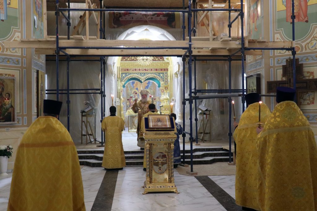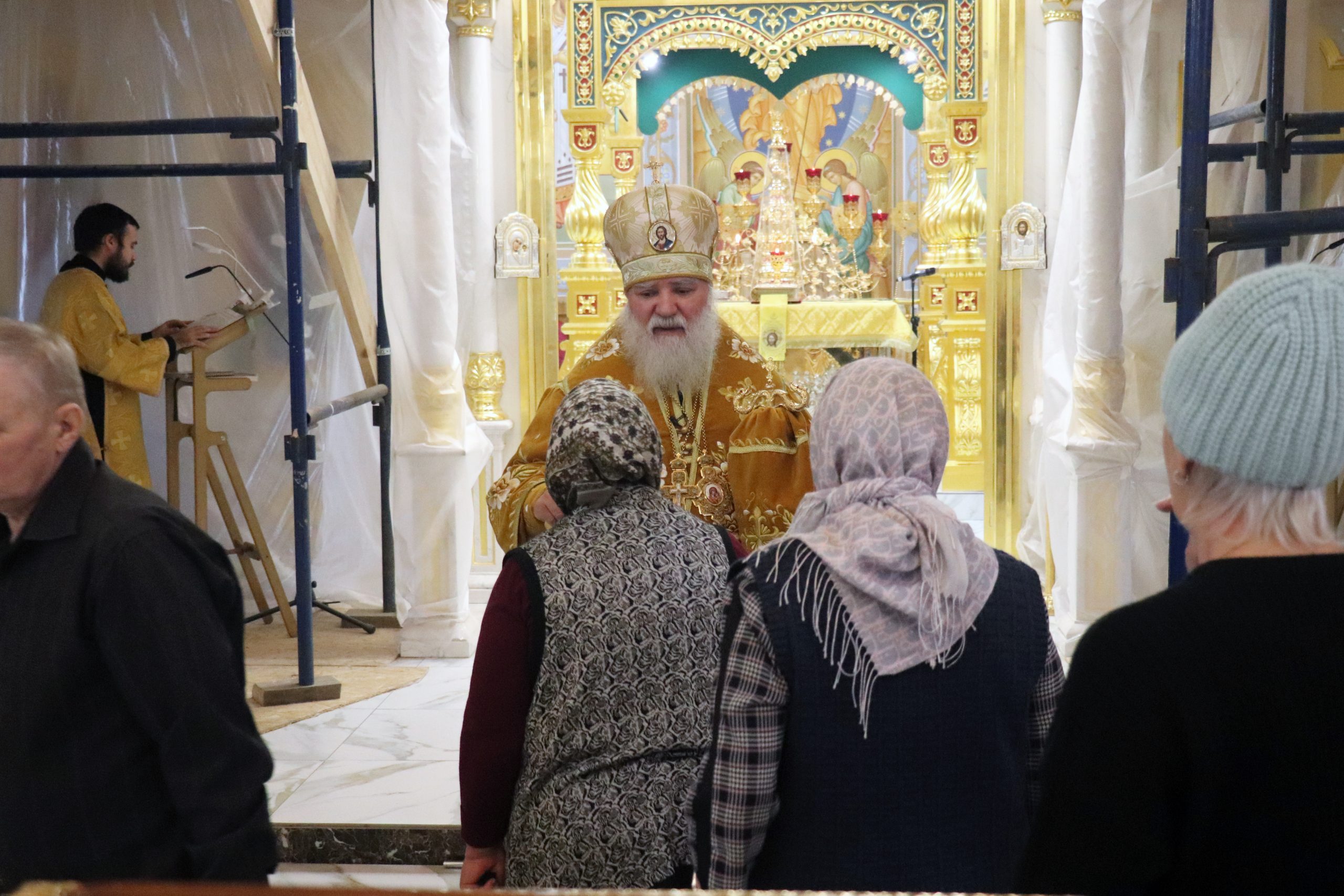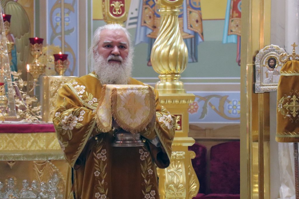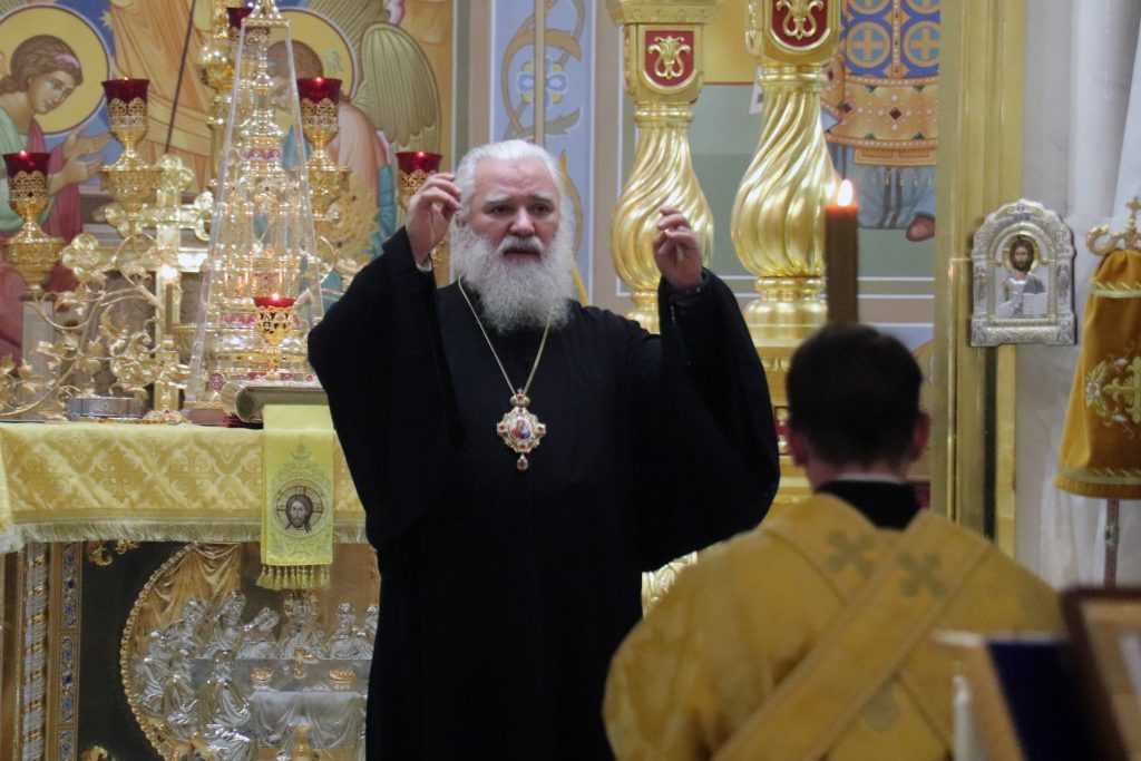 Обращаясь с проповедью к собравшимся, Владыка Алексий побеседовал о ныне прославляемых святых, после чего пригласил всех присутствующих на поминальную трапезу в здании Епархиального управления.