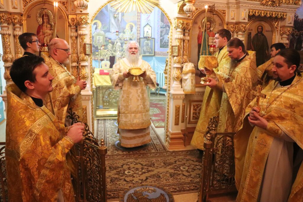 Его Преосвященству сослужили протоиерей Александр Бузыгин, протоиерей Александр Тарасов, иерей Михаил Цапяк, иерей Александр Мишучков и диакон Давид Ганиев. Пел хор под управлением Наталии Задориной. За богослужением молились настоятельница монастыря игумения Пантелеимона (Кривенкова) с сестрами.