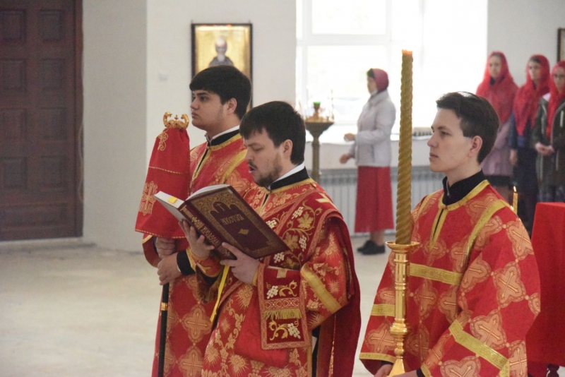 Богослужебные песнопения исполнил архиерейский хор под управлением иерея Александра Ромашкова. Проповедь по запричастном стихе произнес клирик храма прп. Пимена Угрешского иерей Артемий Чирков.