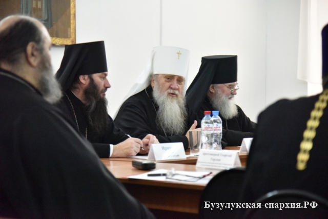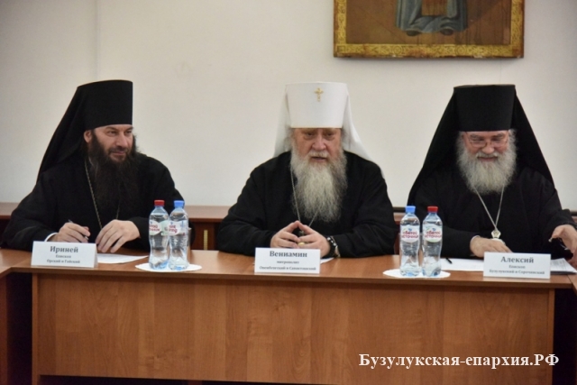 Затем под председательством митрополита Вениамина в актовом зале семинарии состоялся расширенный архиерейский совет. В его работе участвовали епископ Орский и Гайский Ириней, епископ Бузулукский и Сорочинский Алексий, председатели некоторых епархиальных отделов всех трёх епархий Оренбургской митрополии. Собравшиеся подвели итоги прошедших Богородице-Рождественских чтений, представили вниманию высокого собрания доклады о работе межепархиальных коллегий по миссионерской деятельности, религиозному образованию и катехизации, культуре, социальному служению.