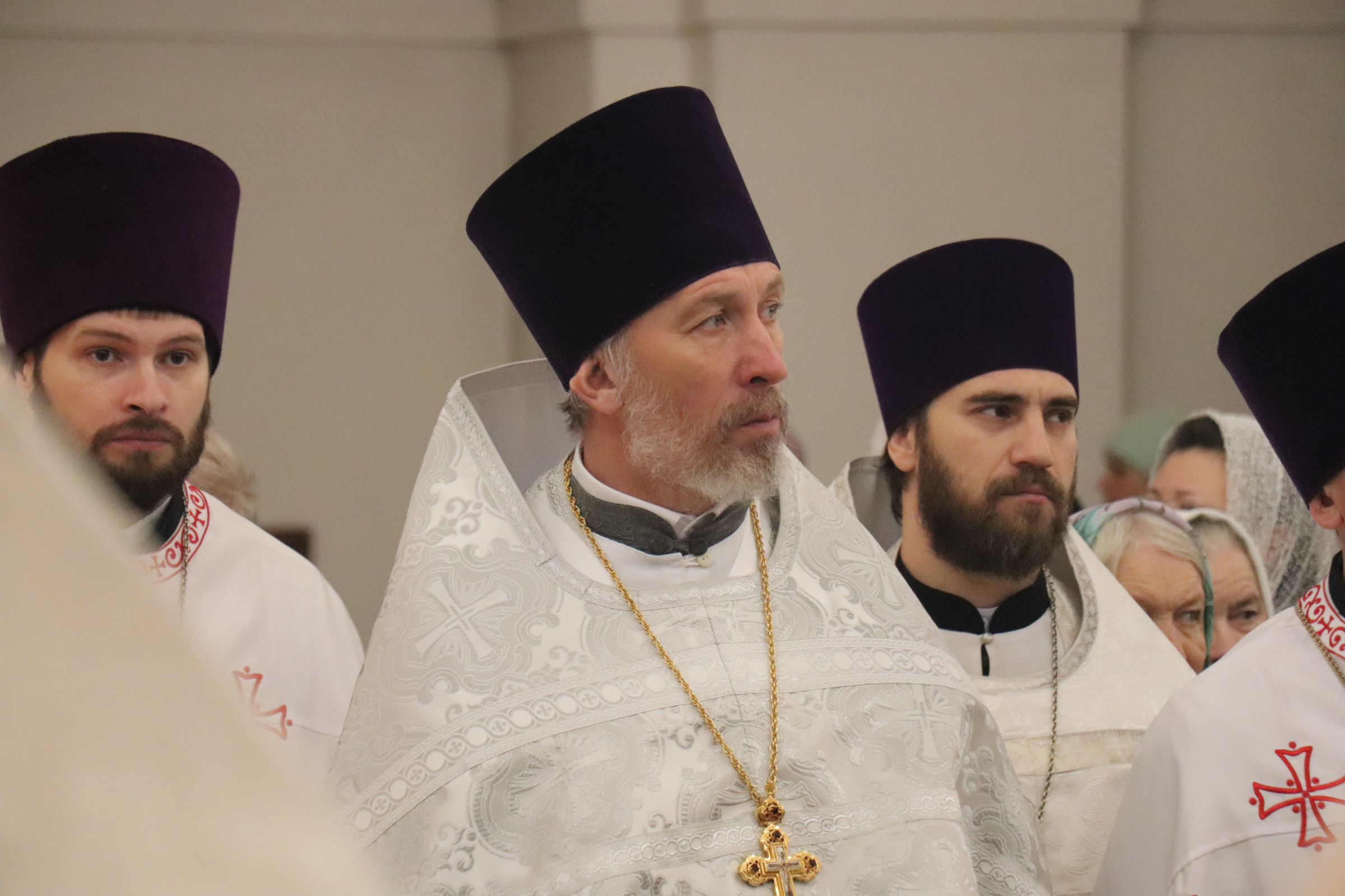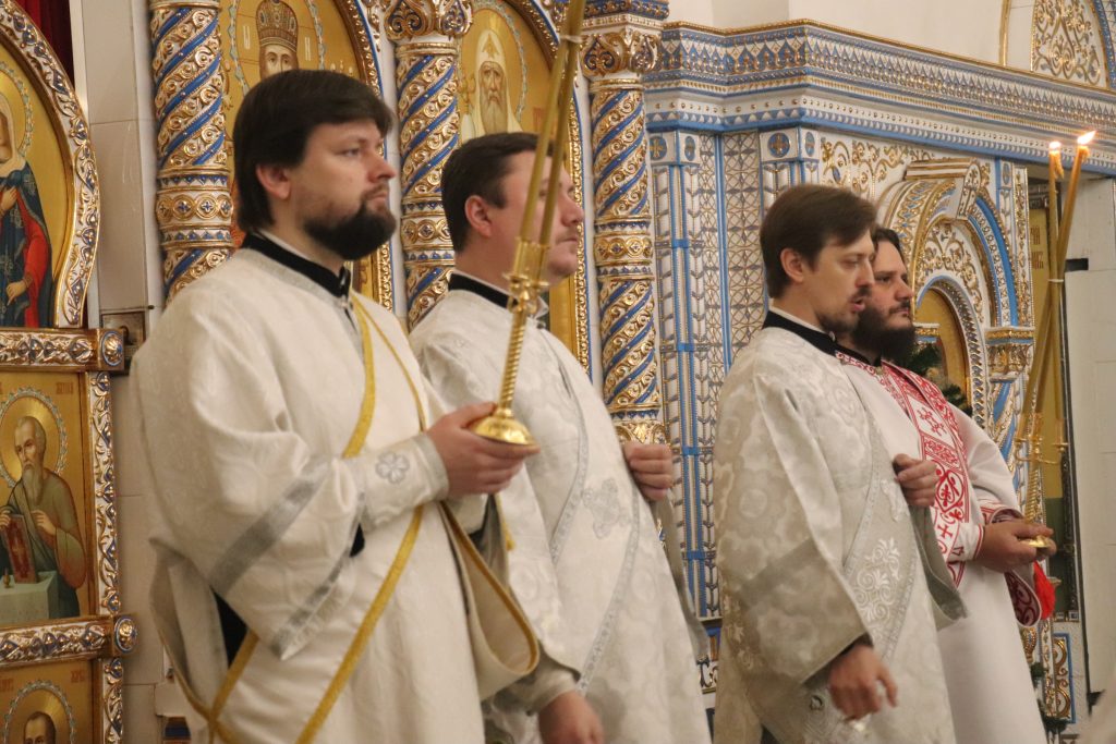 Его Высокопреосвященству сослужили Преосвященнейший Ириней, епископ Орский и Гайский; Преосвященнейший Алексий, епископ Бузулукский и Сорочинский; настоятель Никольского кафедрального собора протоиерей Алексий Асеев, духовник Оренбургской епархии протоиерей Анатолий Семенюк, протоиерей Александр Майоров , протоиерей Стефан Лищенюк, протоиерей Василий Кибалюк, настоятель храма Казанской иконы Божией Матери протоиерей Иоанн Кочанкин, секретарь епархии иерей Вадим Татусь, ректор Оренбургской духовной семинарии иерей Петр Панов, благочинные округов, настоятели храмов, духовенство Оренбургской епархии. Диаконский чин возглавил диакон Георгий Качанкин.
