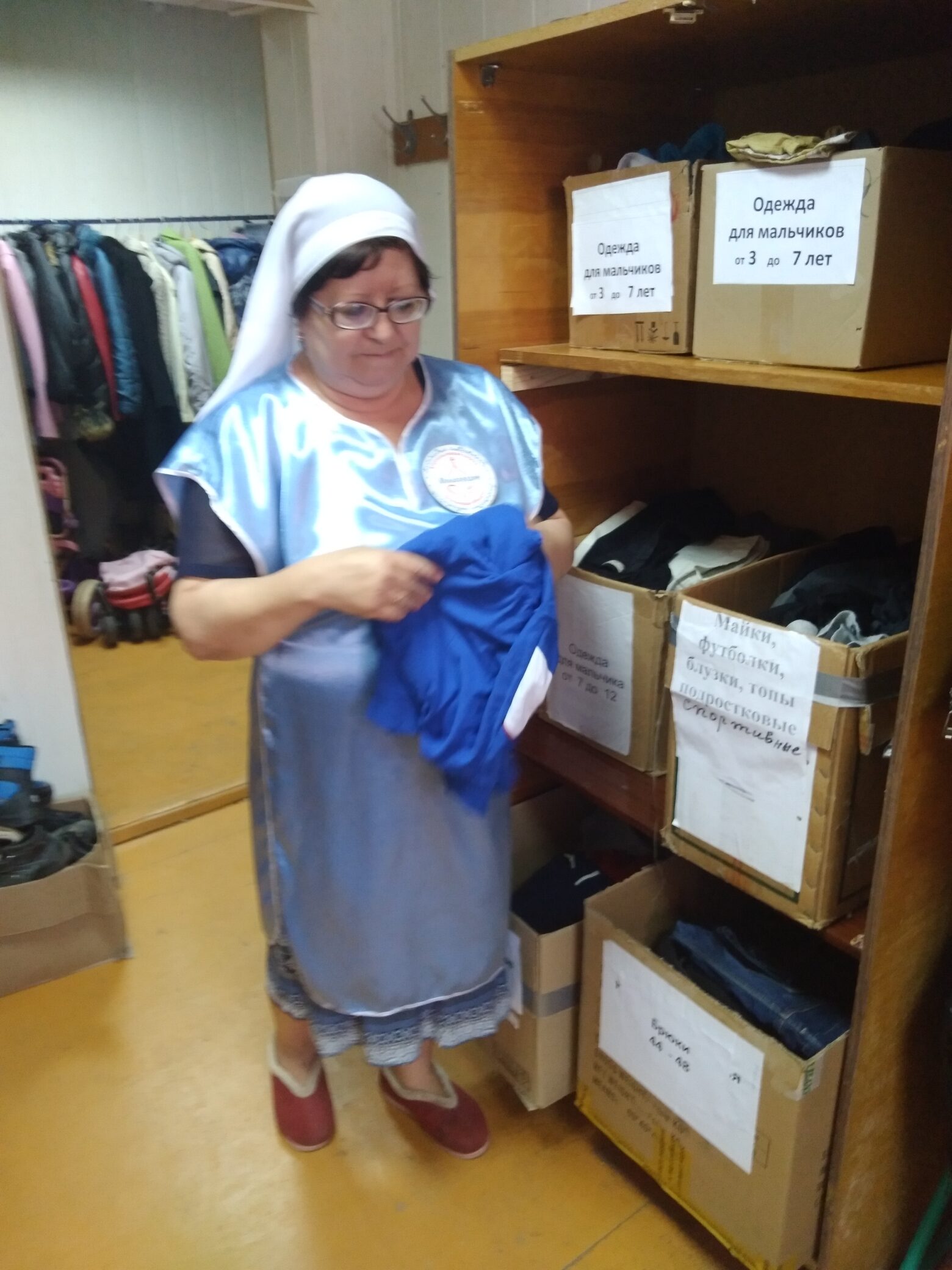 Не хватает центру стеллажей и вешалок. По словам координатора Ирины Михайловны Грошевой в апреле обращались в пять магазинов известных торговых сетей с просьбой поделиться ими, откликнулся только один – «Стройландия».