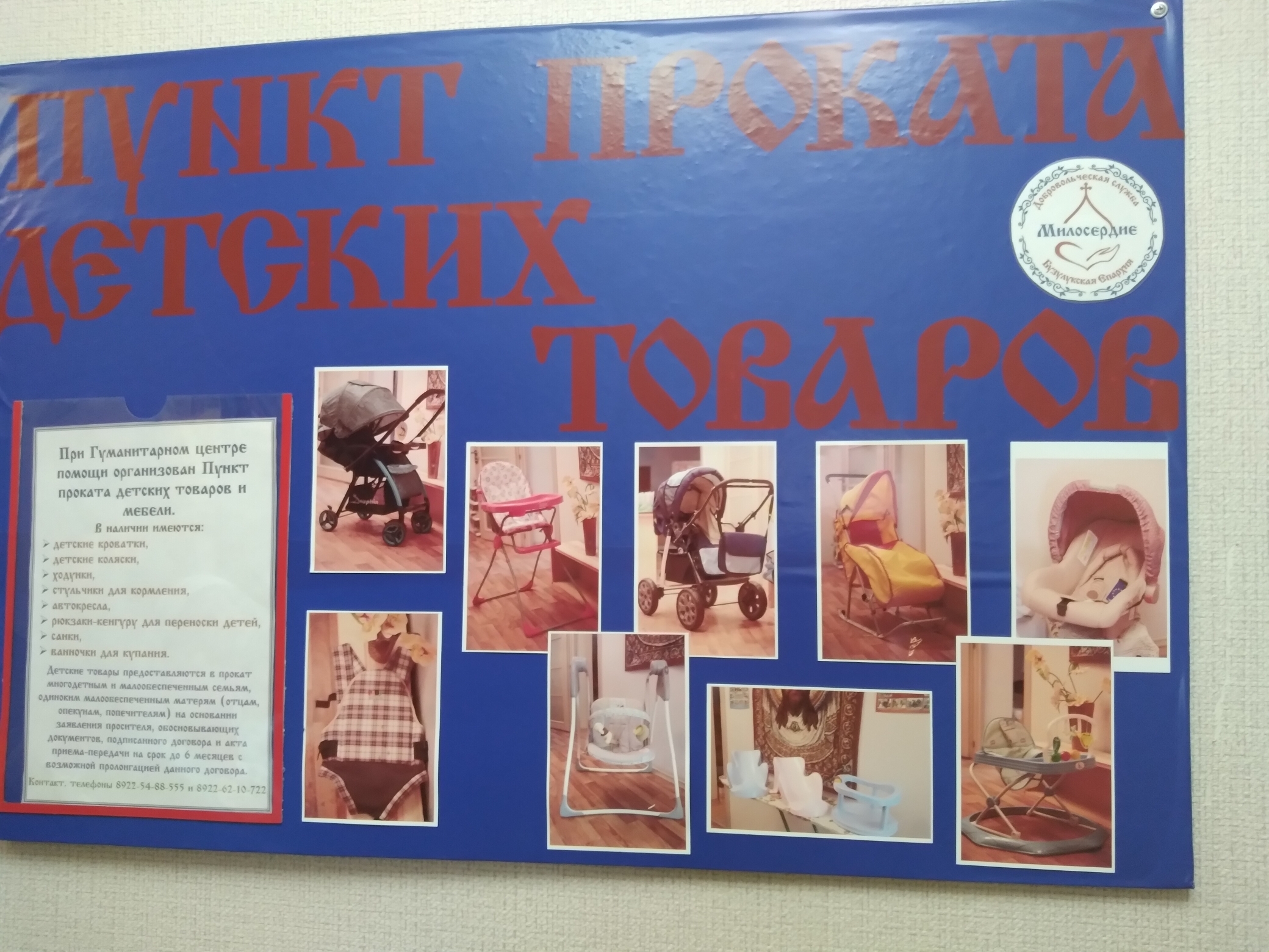 В центре гуманитарной помощи можно взять на прокат инвалидную коляску, детские коляски, кроватки, ходунки и т.д.
