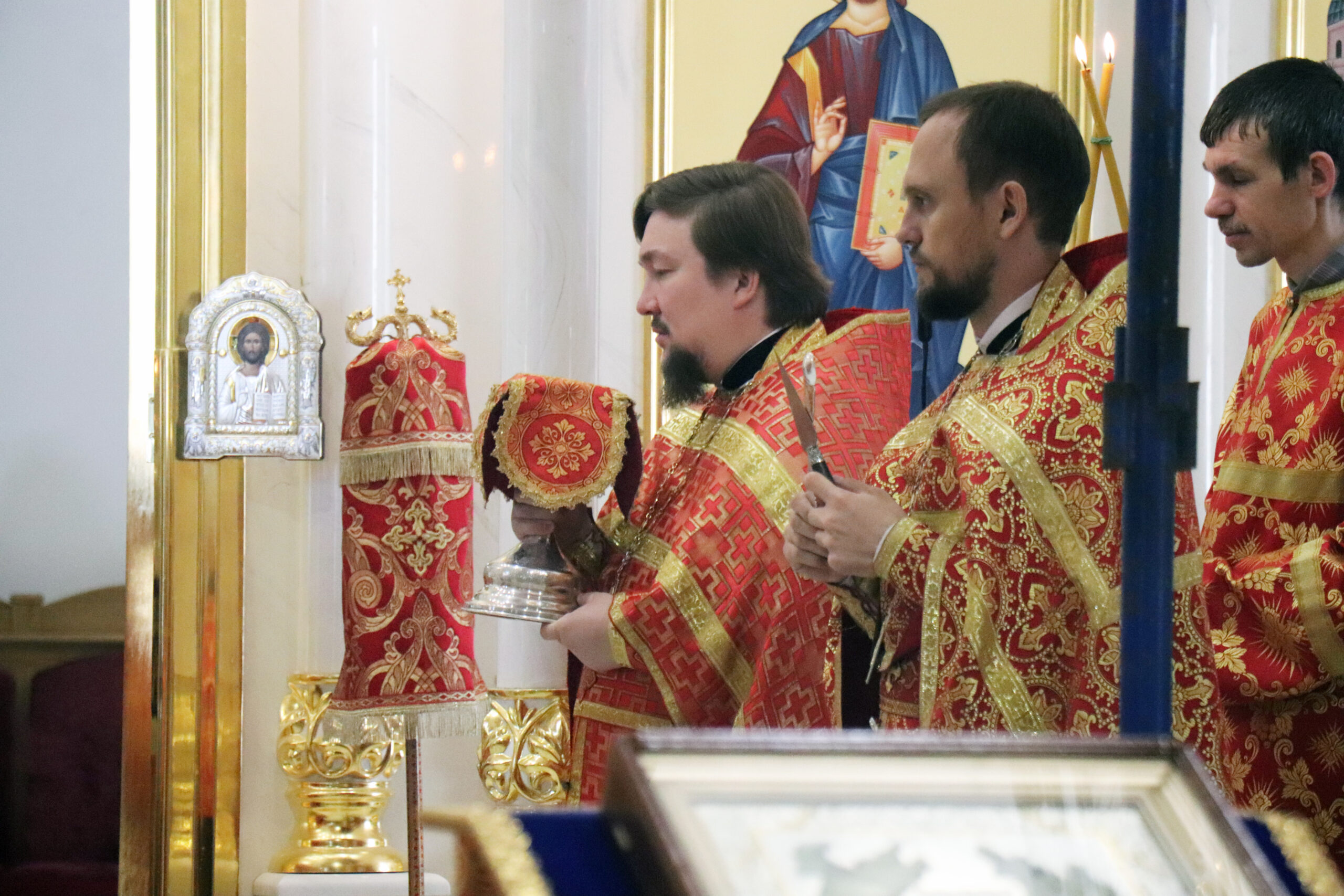 Его Преосвященству сослужили: секретарь Бузулукской епархии иерей Дионисий Горбунов, архимандрит Ефрем (Матынцев), иерей Вадим Зотов и диакон Иоанн Шумилин.