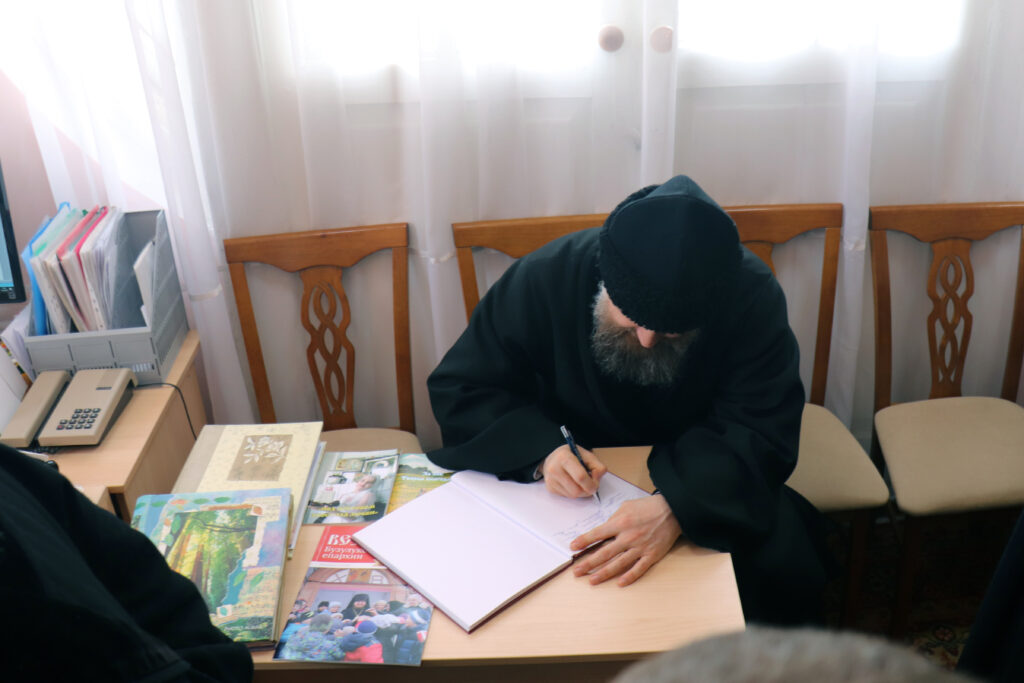 Далее владыки посетили гуманитарный склад социального отдела Бузулукской епархии, Никольский собор, Православную школу, где митрополит Григорий оставил памятную запись в журнале, храм Петра и Павла и храмы Спасо-Преображенского Бузулукского мужского монастыря.