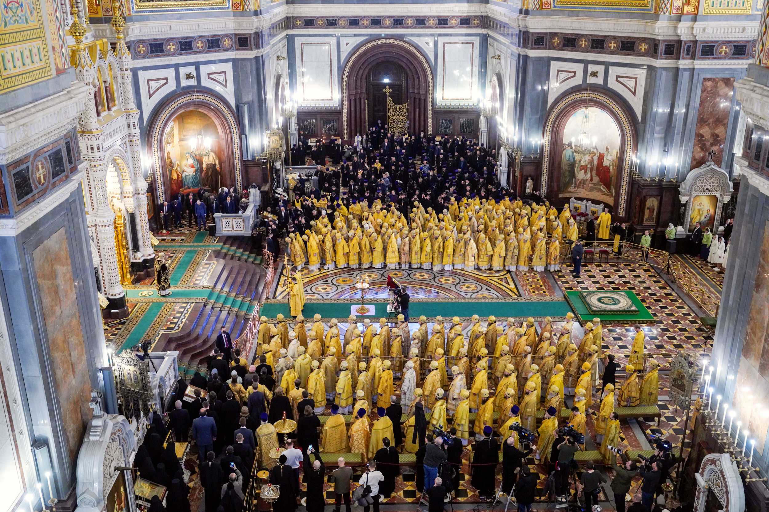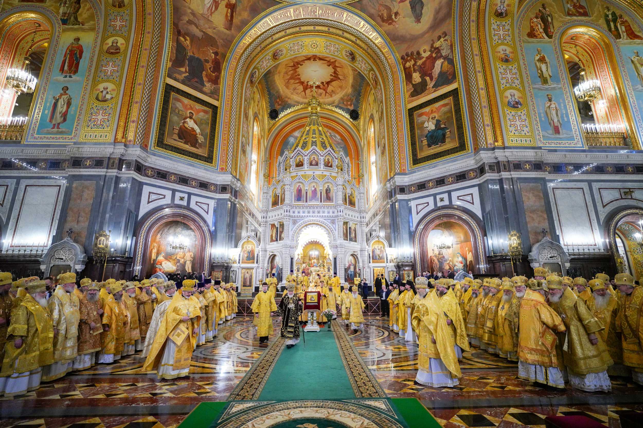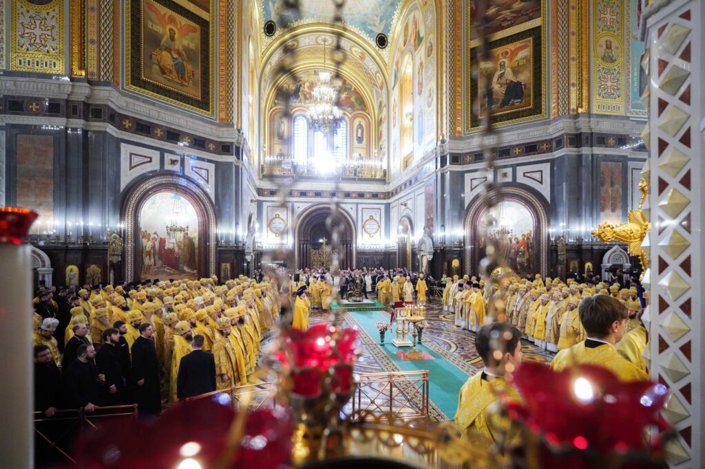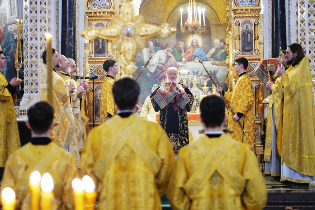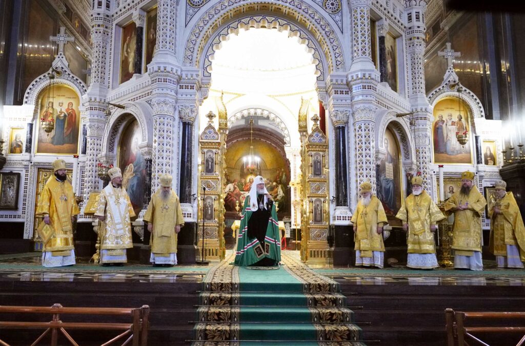 В сугубую ектению были включены особые прошения о ныне чествуемом Святейшем Патриархе Кирилле и Церкви Русской, им ведомой.