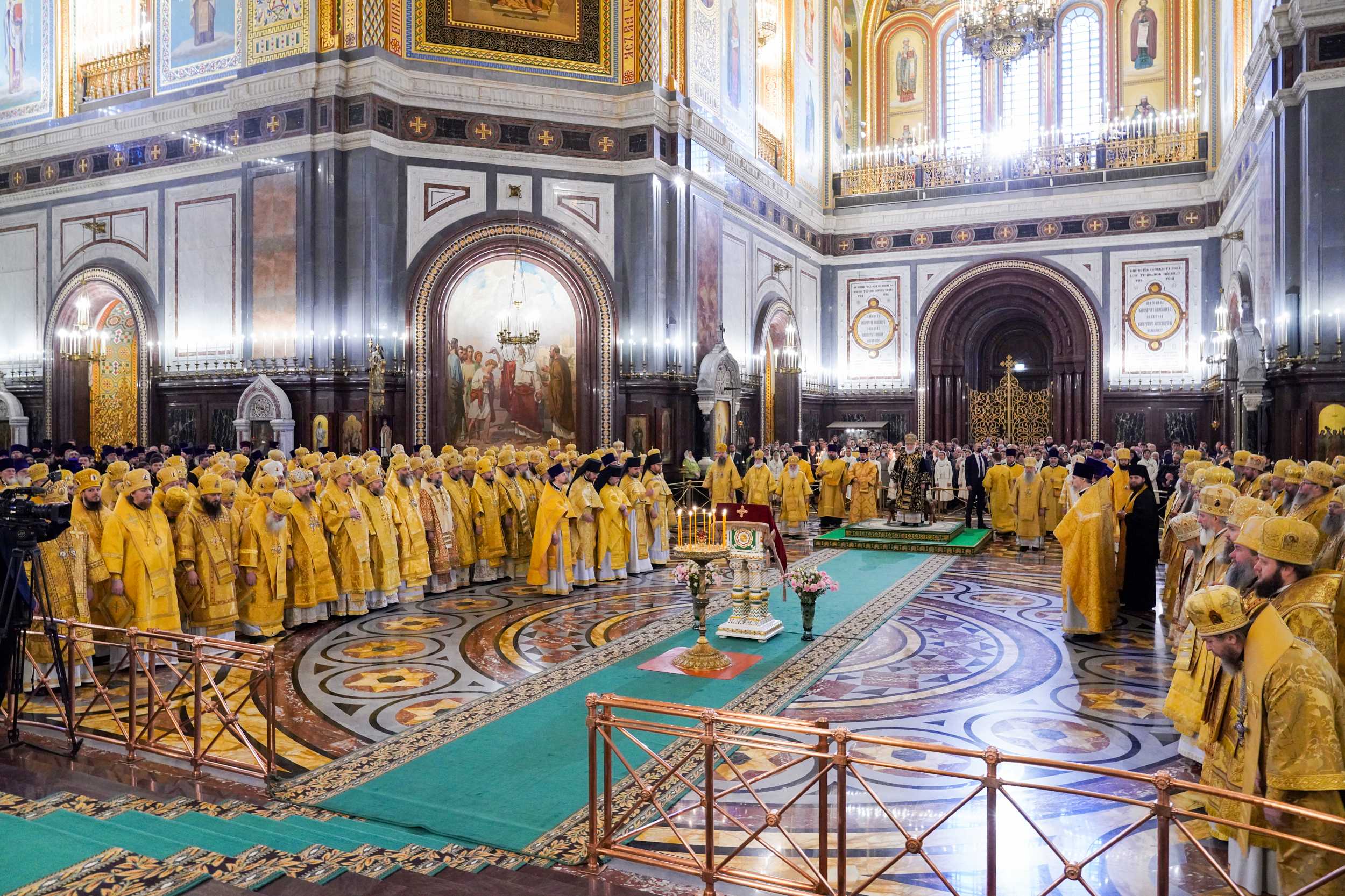 Его Святейшеству сослужили: митрополит Ташкентский и Узбекистанский Викентий, глава Среднеазиатского митрополичьего округа; митрополит Санкт-Петербургский и Ладожский Варсонофий; митрополит Крутицкий и Коломенский Павел, Патриарший наместник Московской митрополии; митрополит Минский и Заславский Вениамин, Патриарший экзарх всея Беларуси; митрополит Воскресенский Дионисий, первый викарий Патриарха Московского и всея Руси, управляющий делами Московской Патриархии; митрополит Волоколамский Антоний, председатель Отдела внешних церковных связей Московского Патриархата; митрополит Калужский и Боровский Климент, председатель Издательского Совета Русской Православной Церкви; митрополит Воронежский и Лискинский Сергий; митрополит Омский и Таврический Владимир; митрополит Липецкий и Задонский Арсений; митрополит Курский и Рыльский Герман; митрополит Красноярский и Ачинский Пантелеимон; митрополит Йошкар-Олинский и Марийский Иоанн; митрополит Томский и Асиновский Ростислав; митрополит Казанский и Татарстанский Кирилл; митрополит Иваново-Вознесенский и Вичугский Иосиф; митрополит Ростовский и Новочеркасский Меркурий; митрополит Брянский и Севский Александр; митрополит Курганский и Белозерский Даниил; митрополит Каширский Феогност, председатель Синодального отдела по монастырям и монашеству; митрополит Тамбовский и Рассказовский Феодосий; митрополит Симбирский и Новоспасский Лонгин; митрополит Рязанский и Михайловский Марк; митрополит Тверской и Кашинский Амвросий; митрополит Кемеровский и Прокопьевский Аристарх; митрополит Елисей (Иванов); митрополит Новосибирский и Бердский Никодим; митрополит Иосиф (Масленников); митрополит Орловский и Болховский Тихон; митрополит Саранский и Мордовский Зиновий; митрополит Хабаровский и Приамурский Артемий; митрополит Вологодский и Кирилловский Савва; митрополит Саратовский и Вольский Игнатий; митрополит Архангельский и Холмогорский Корнилий; митрополит Владивостокский и Приморский Владимир; митрополит Иркутский и Ангарский Максимилиан; митрополит Барнаульский и Алтайский Сергий; митрополит Астраханский и Камызякский Никон; митрополит Пензенский и Нижнеломовский Серафим; митрополит Костромской и Нерехтский Ферапонт; митрополит Клинский Леонид, Патриарший экзарх Африки; митрополит Мурманский и Мончегорский Митрофан; митрополит Ижевский и Удмуртский Викторин; митрополит Екатеринодарский и Кубанский Григорий; митрополит Читинский и Петровск-Забайкальский Димитрий; митрополит Псковский и Порховский Тихон, председатель Патриаршего совета по культуре; митрополит Челябинский и Миасский Алексий; сонм архиереев Московского Патриархата.