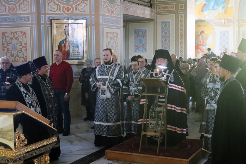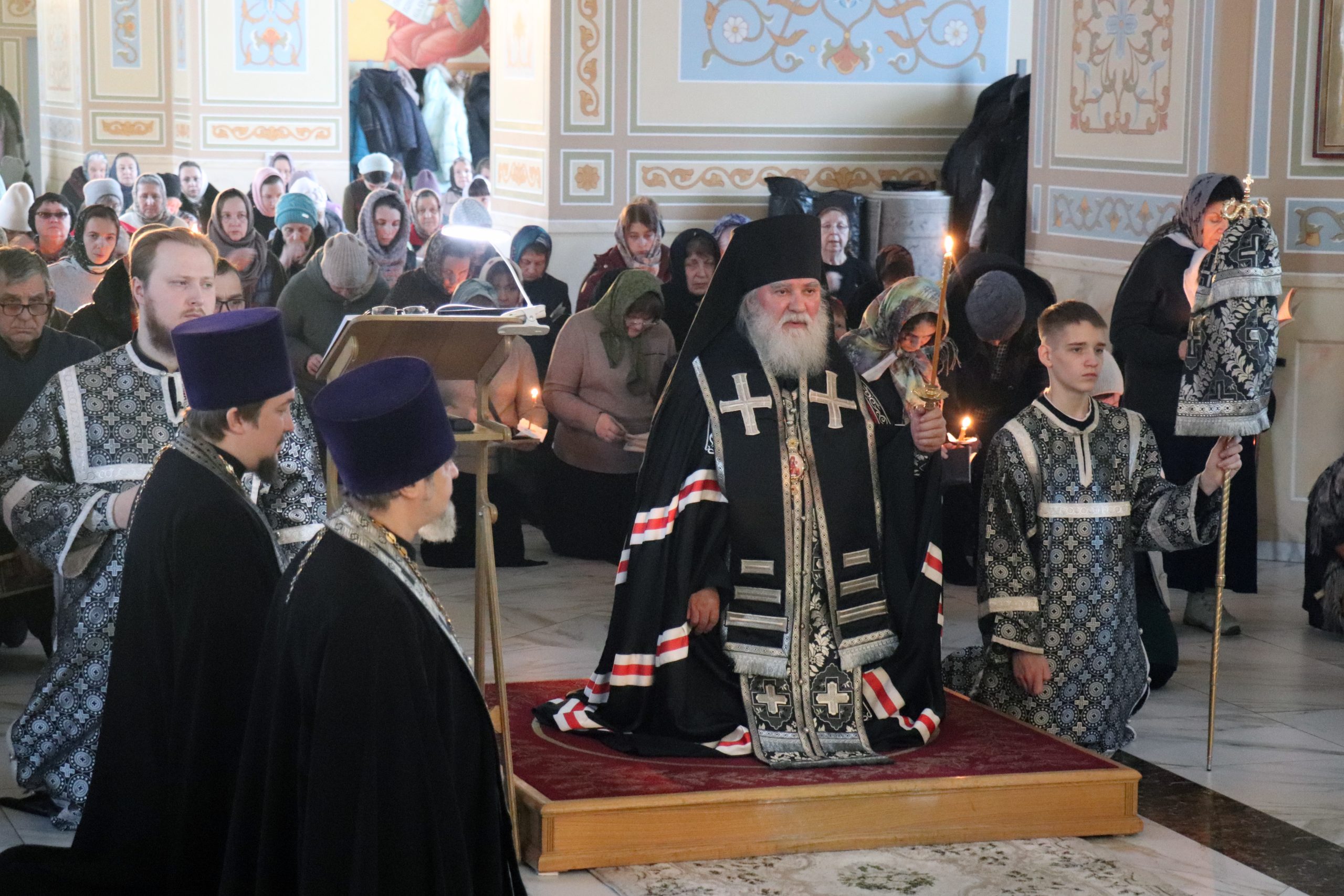 Бузулук. 23 февраля 2026 года в понедельник 1-й седмицы Великого поста епископ Бузулукский и Сорочинский Алексий совершил Великое повечерие с чтением Великого канона преподобного Андрея Критского в Свято-Троицком кафедральном соборе.