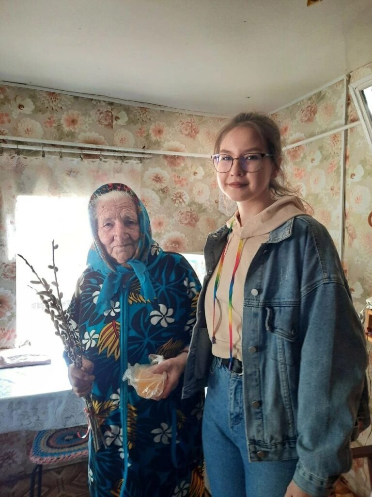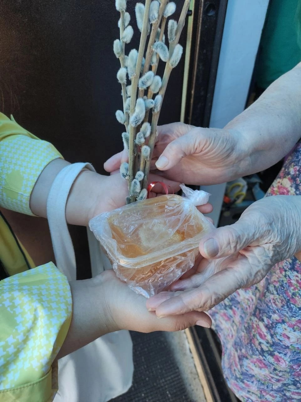 Добровольцы команды разнесли маломобильным жителям села Северное освященные веточки вербы и душистый целебный мёд – подарок от настоятеля храма Дмитрия Ростовского.