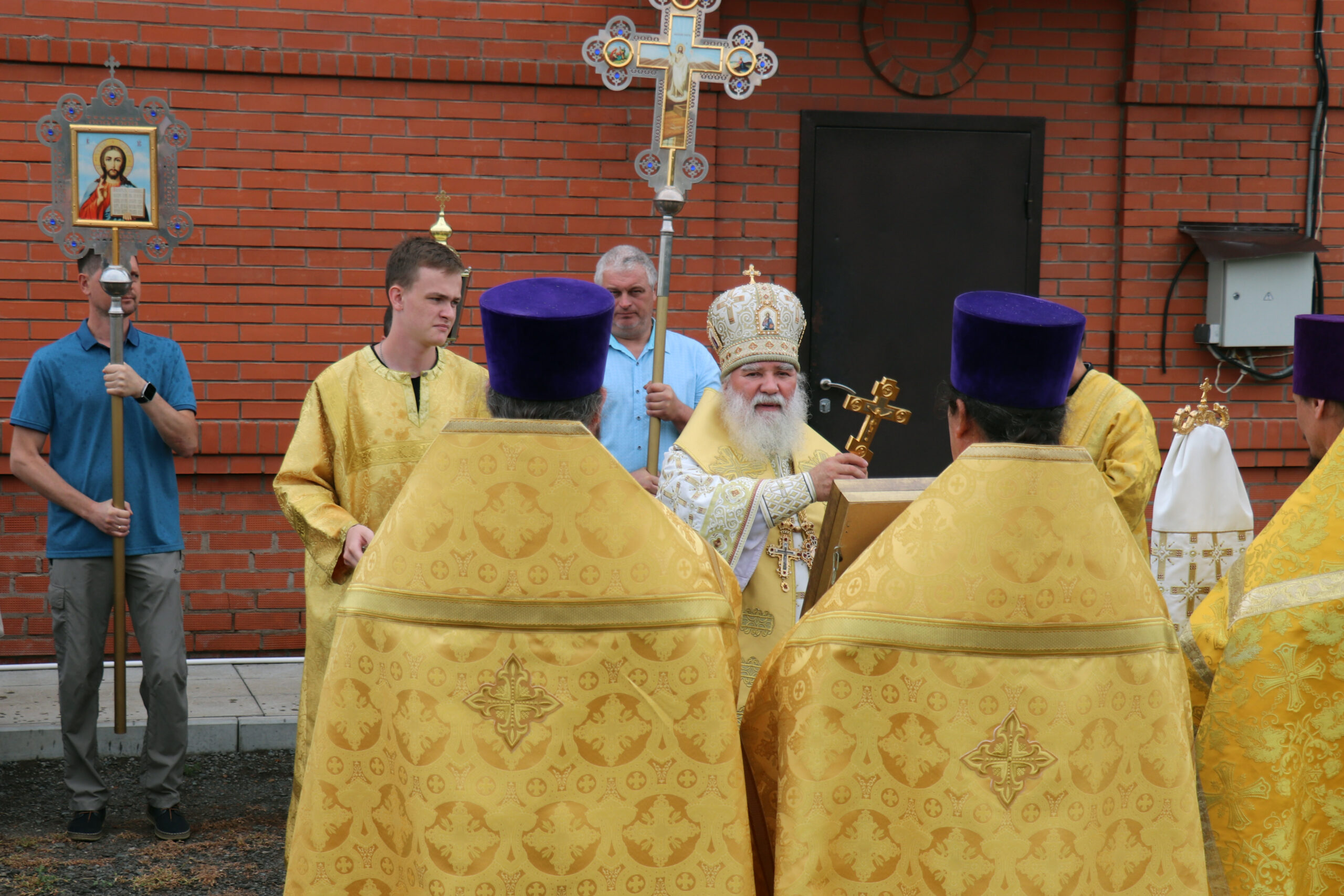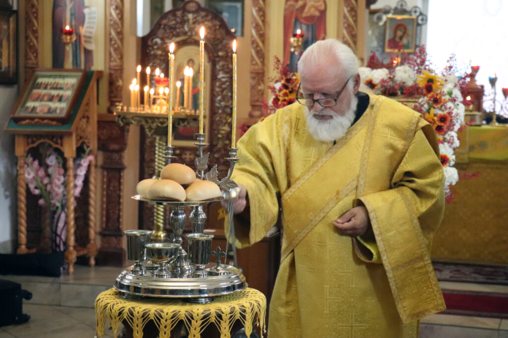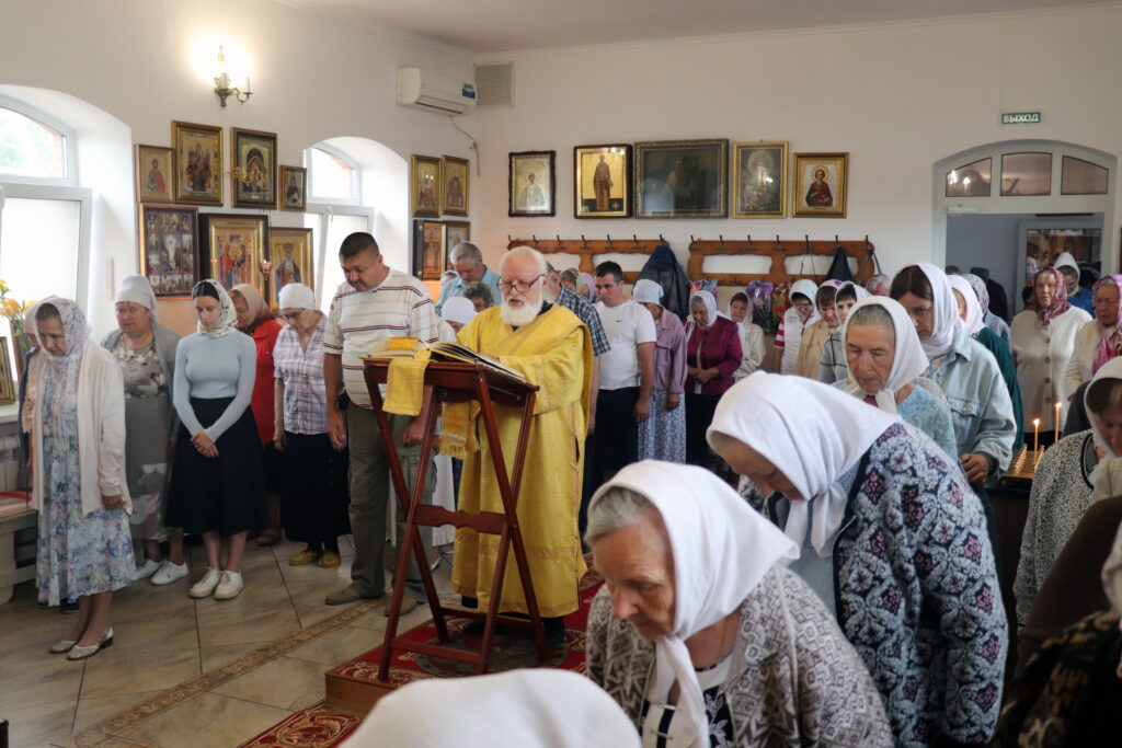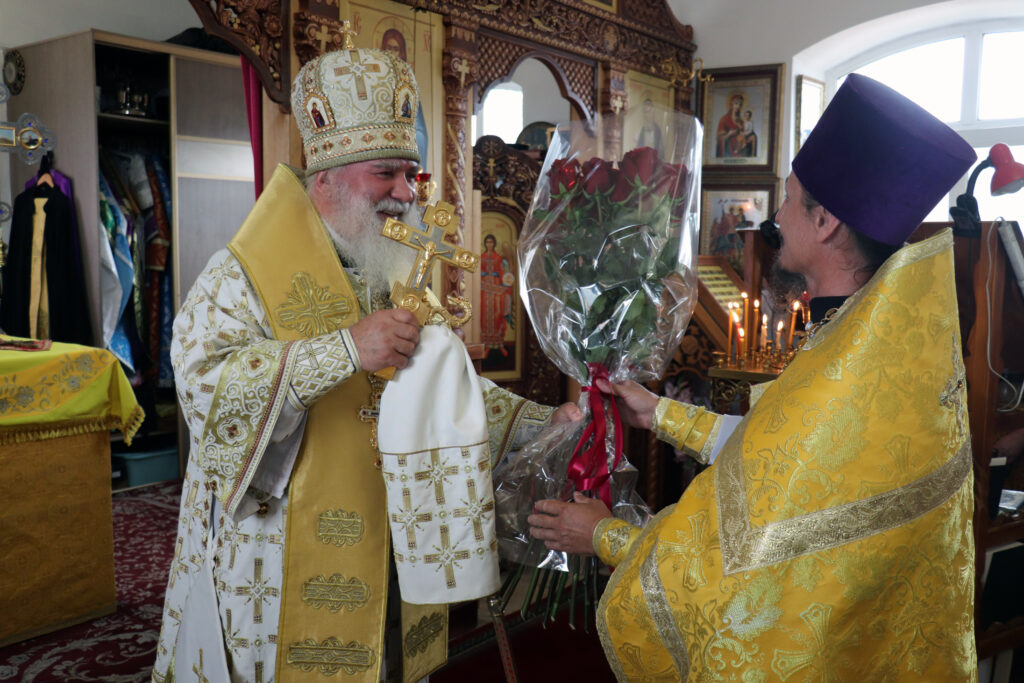 Его Преосвященству сослужили: настоятель храма протоиерей Анатолий Бильчук, благочинный Сорочинского округа протоиерей Иоанн Хижняк, иерей Антоний Хабаров, иерей Игорь Ивашков и диакон Валентин Лаишцев.