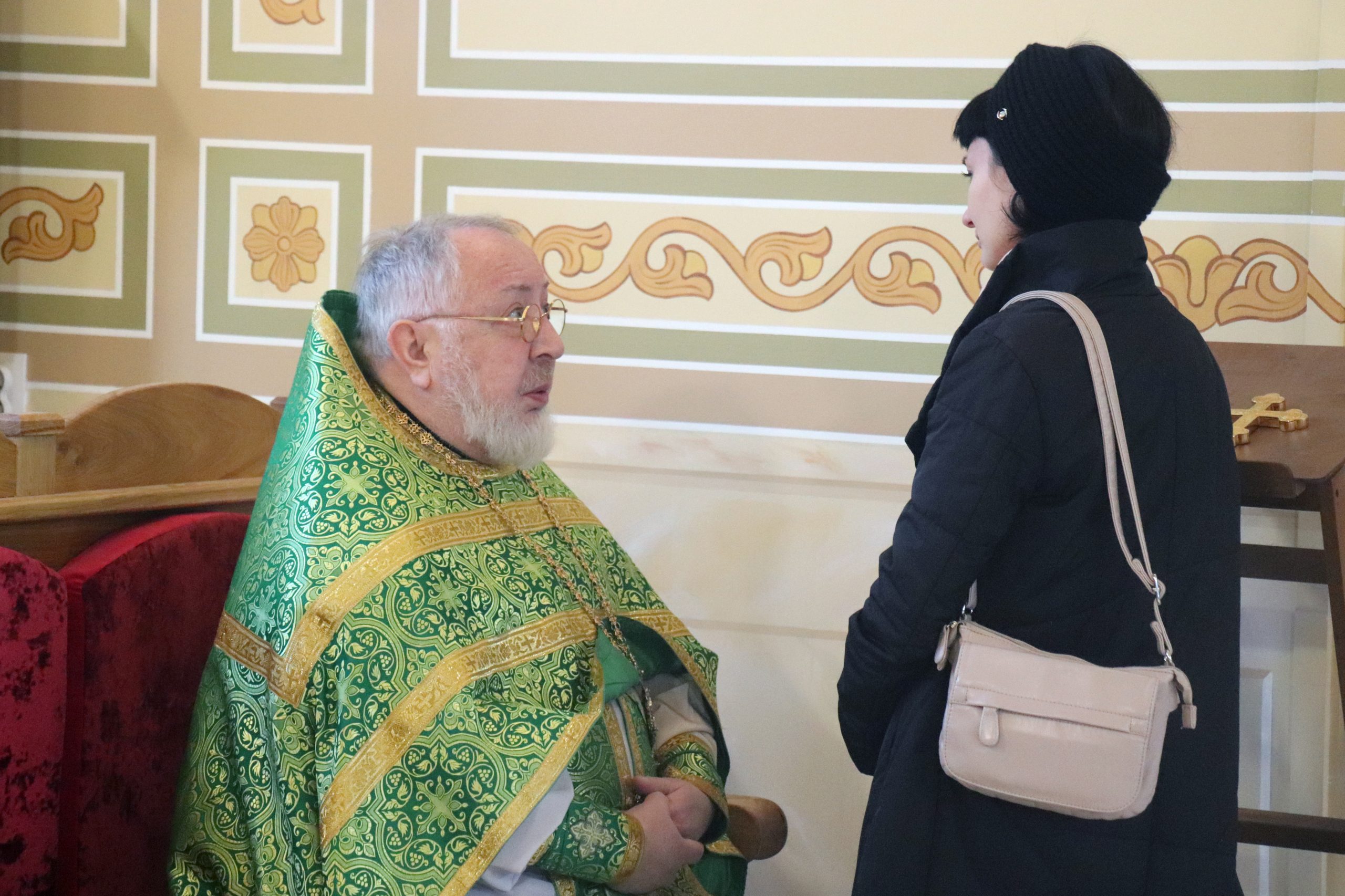 Его Преосвященству сослужили: секретарь Бузулукской епархии иерей Дионисий Горбунов, архимандрит Ефрем (Матынцев), иерей Вадим Зотов и диакон Иоанн Шумилин.