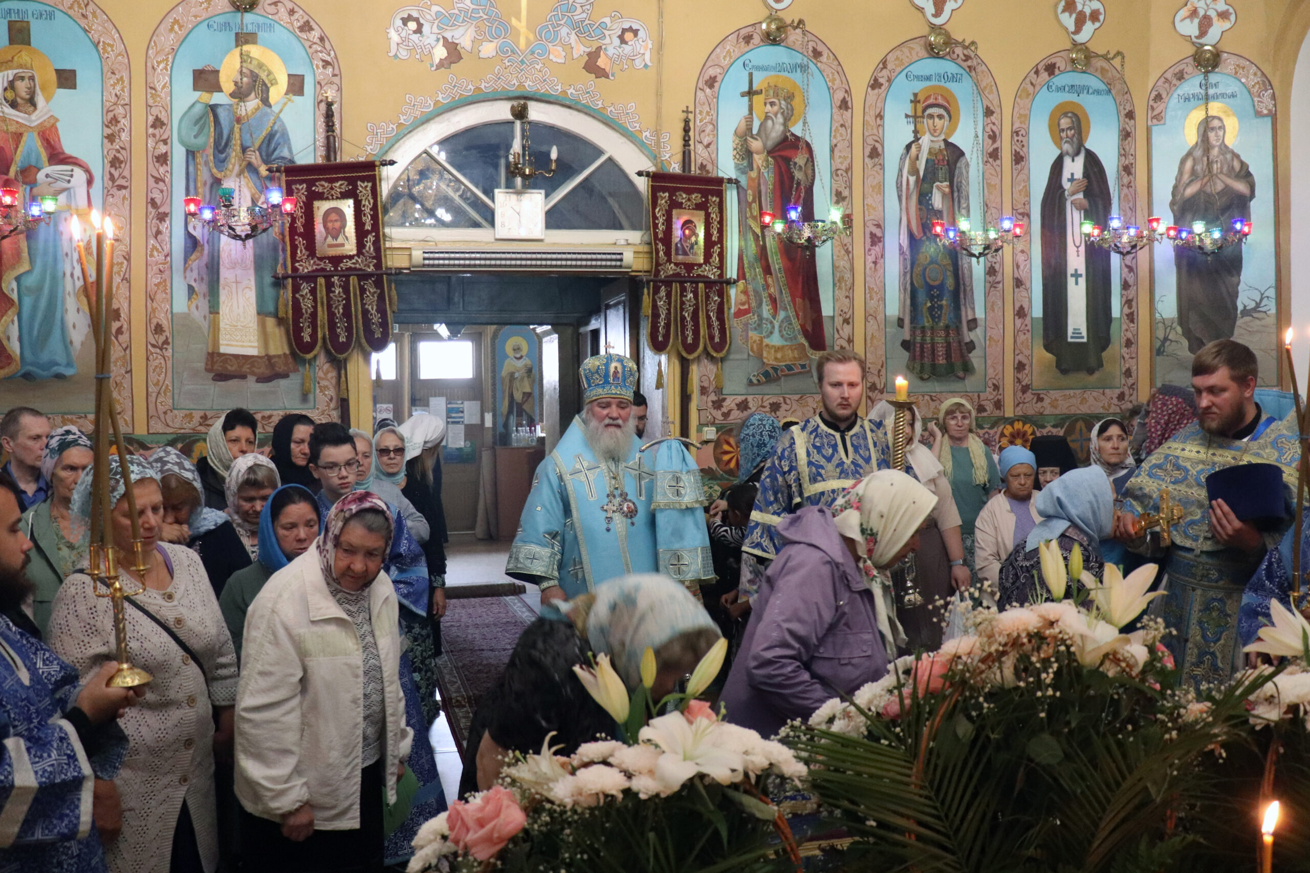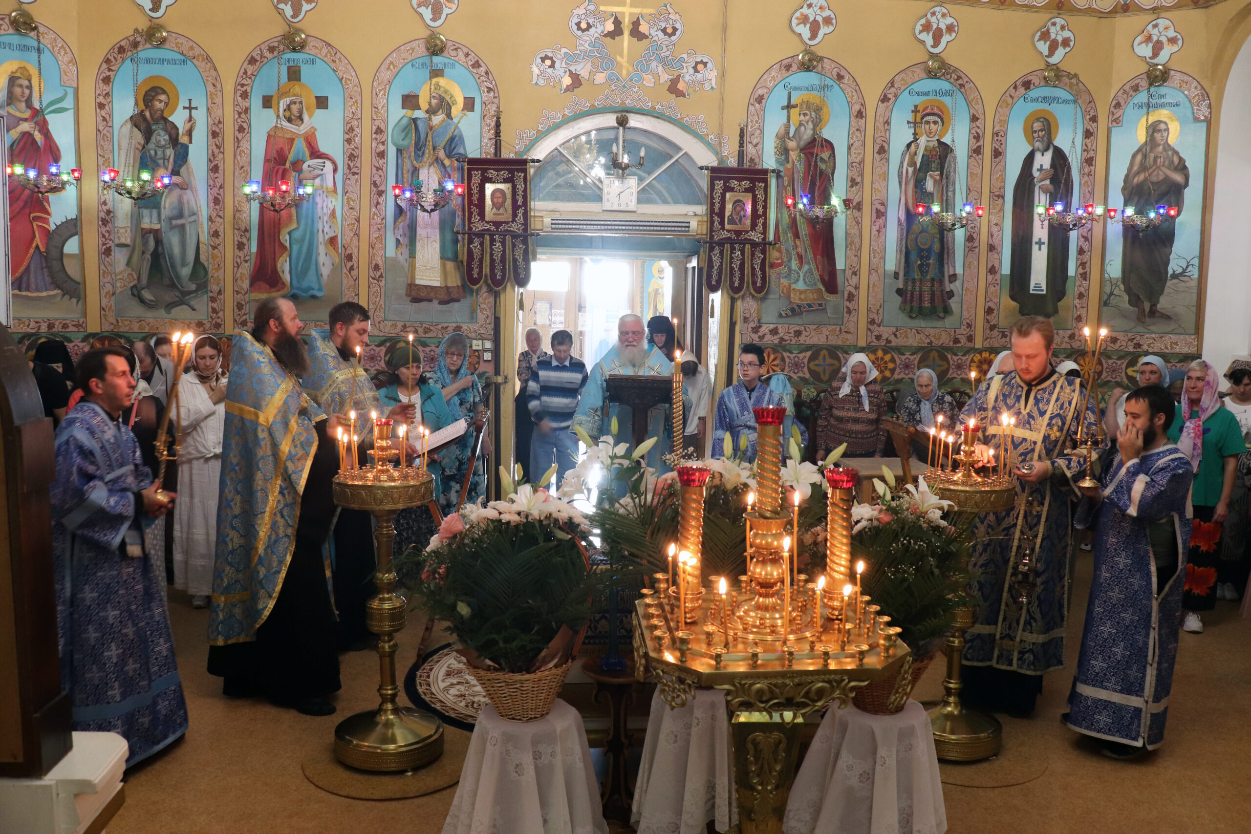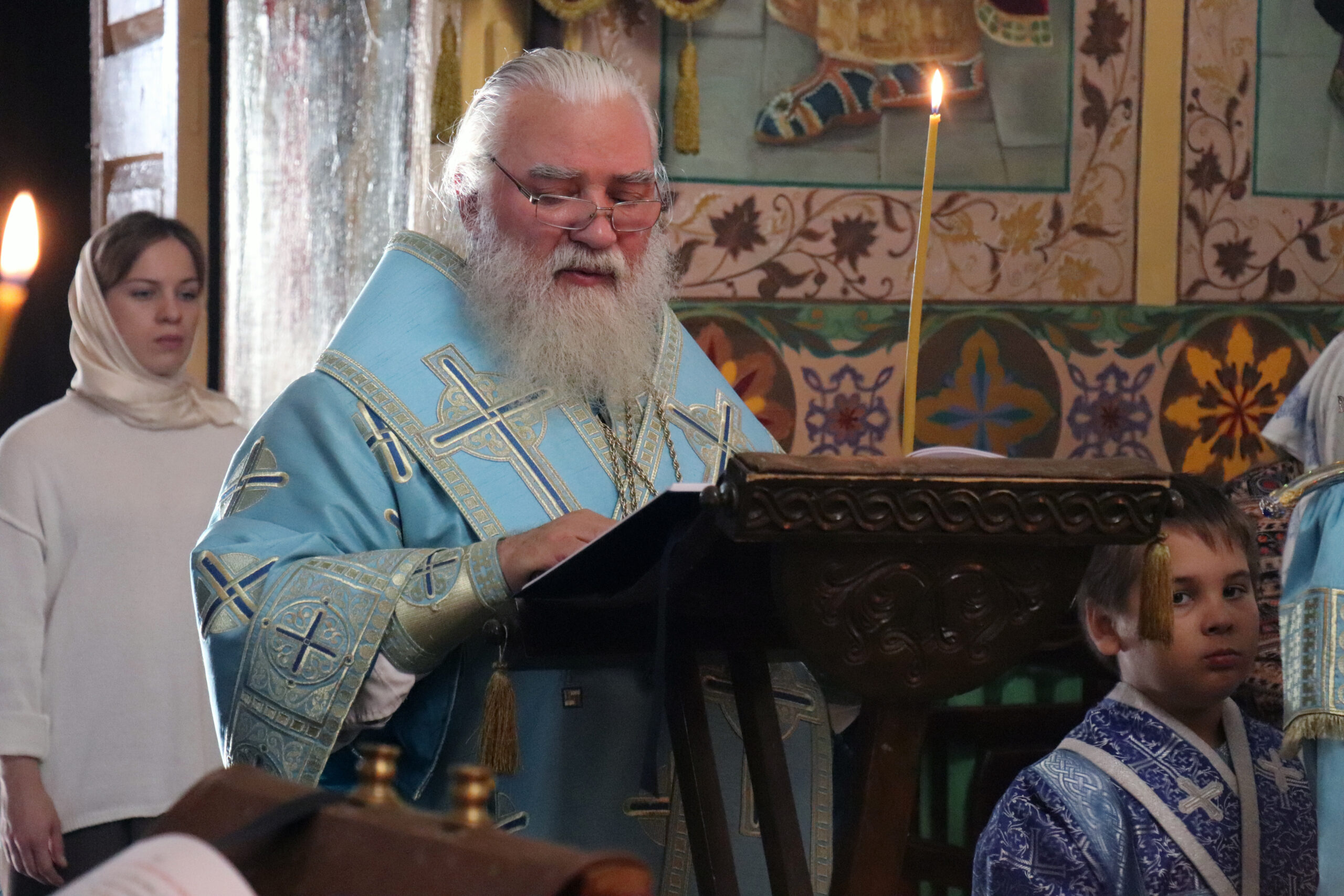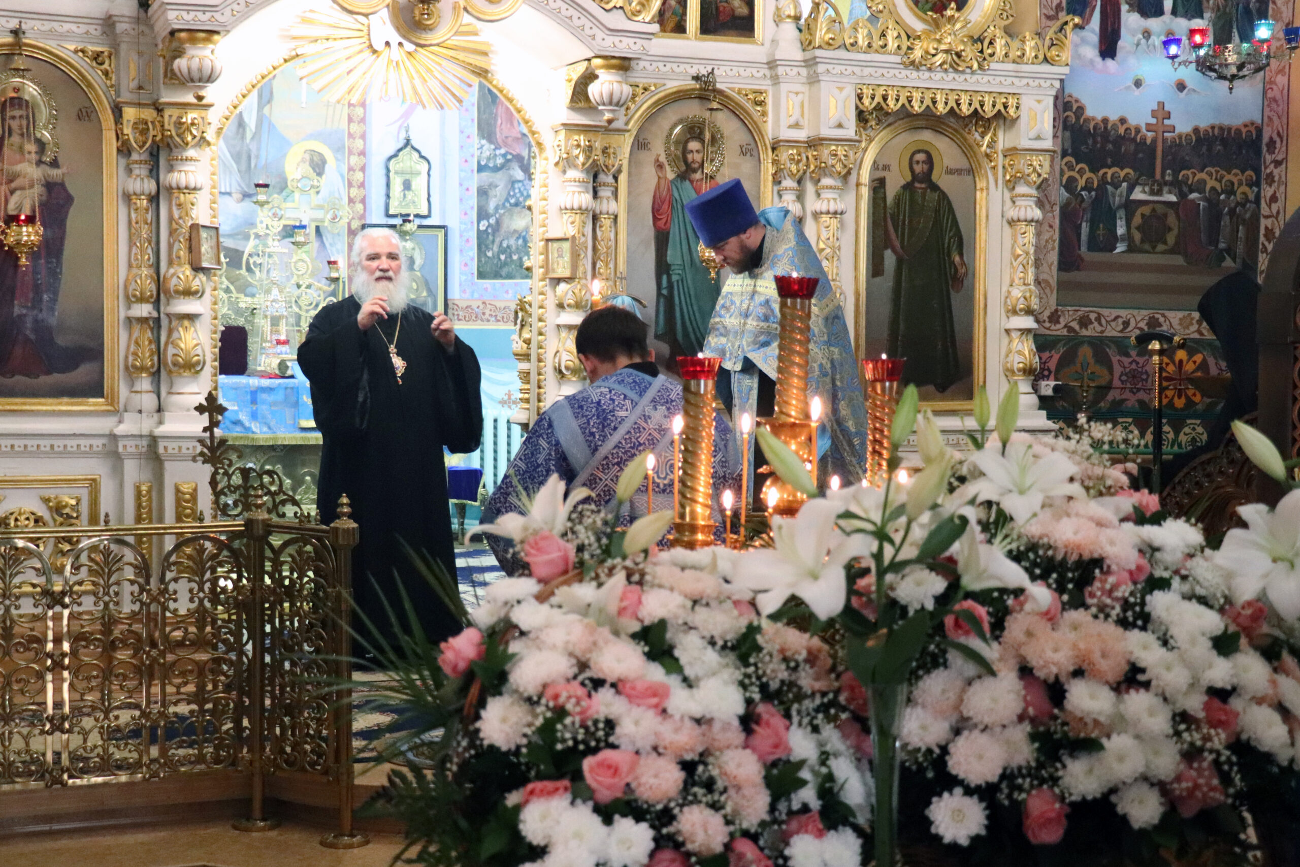 Его Преосвященству сослужили: старший священник храма иерей Илья Михальченко, протоиерей Александр Тарасов, иерей Антоний Сотников и диакон Иоанн Шумилин.