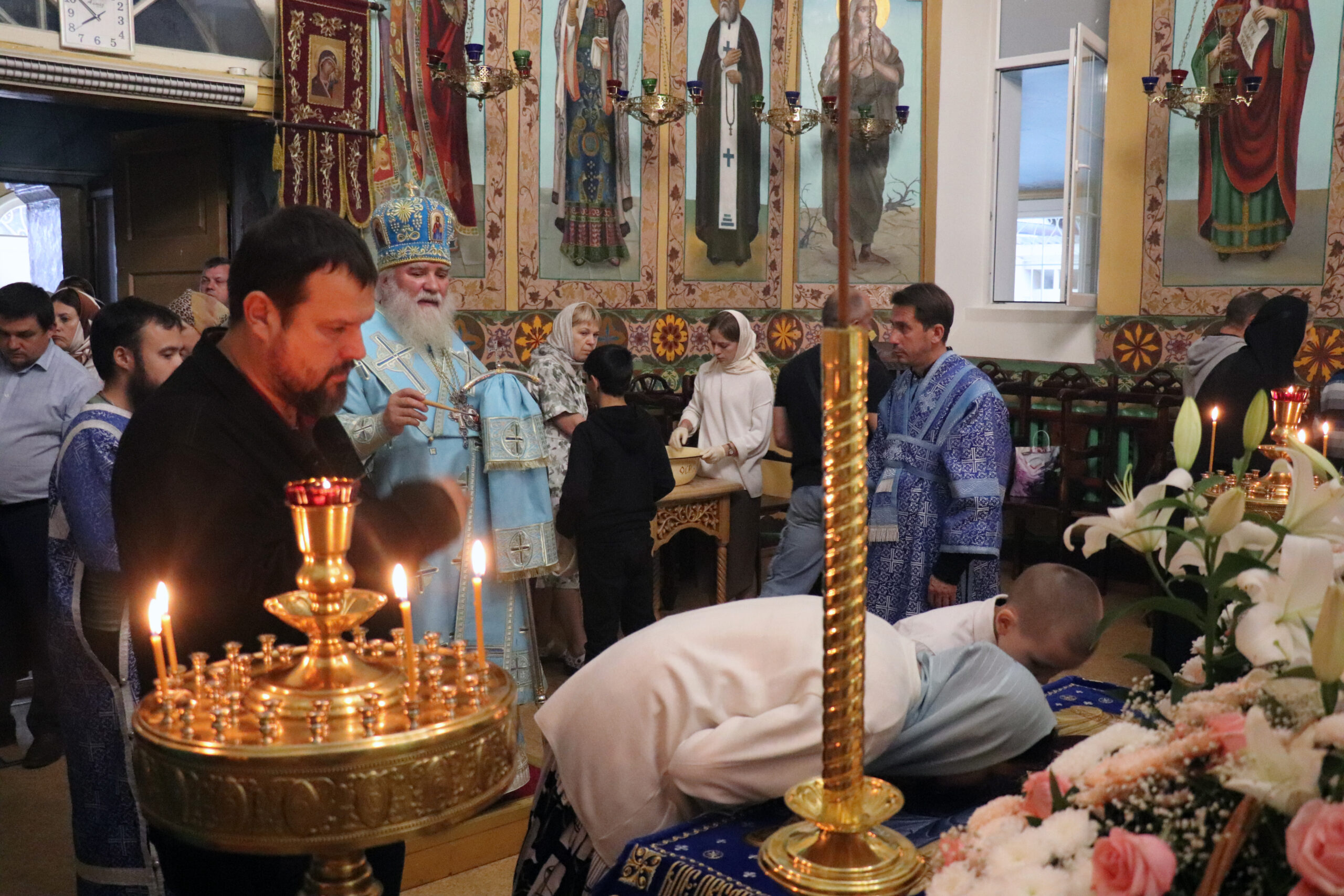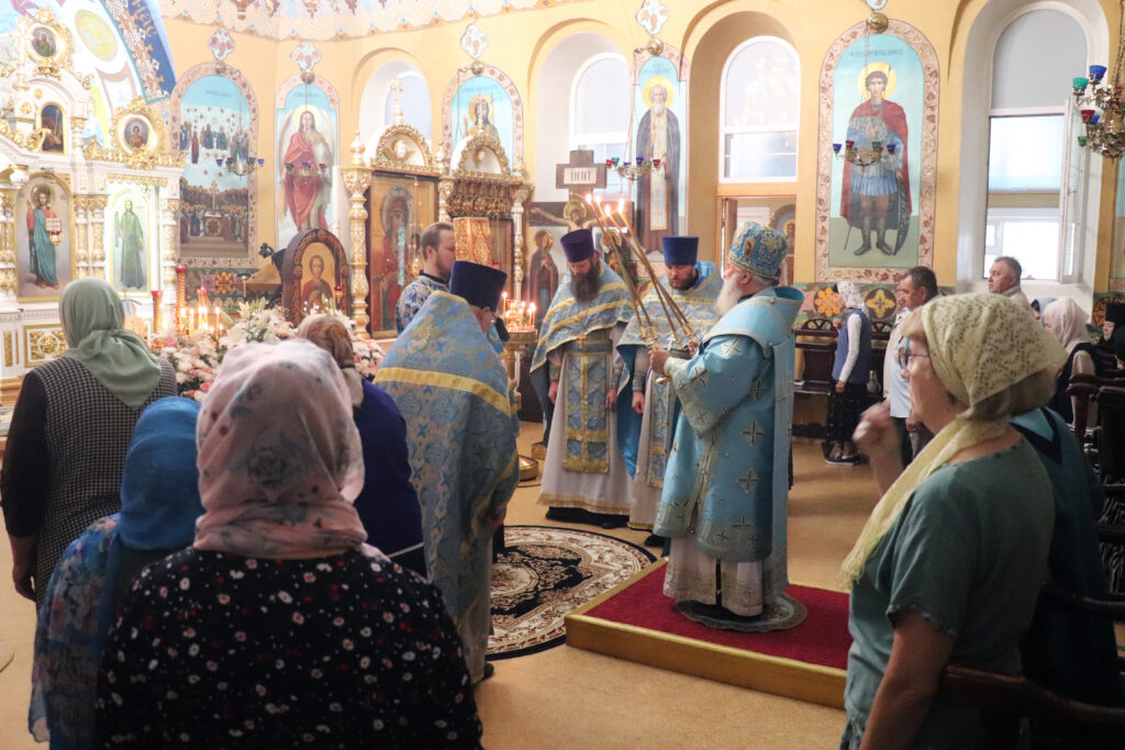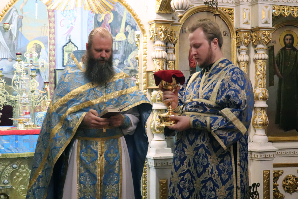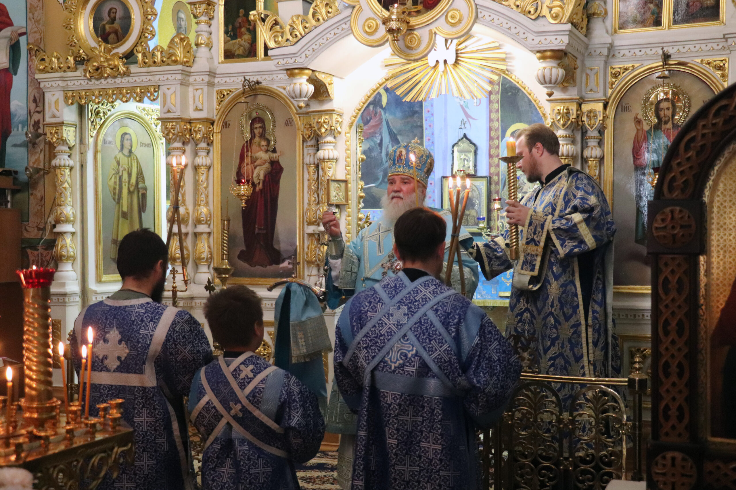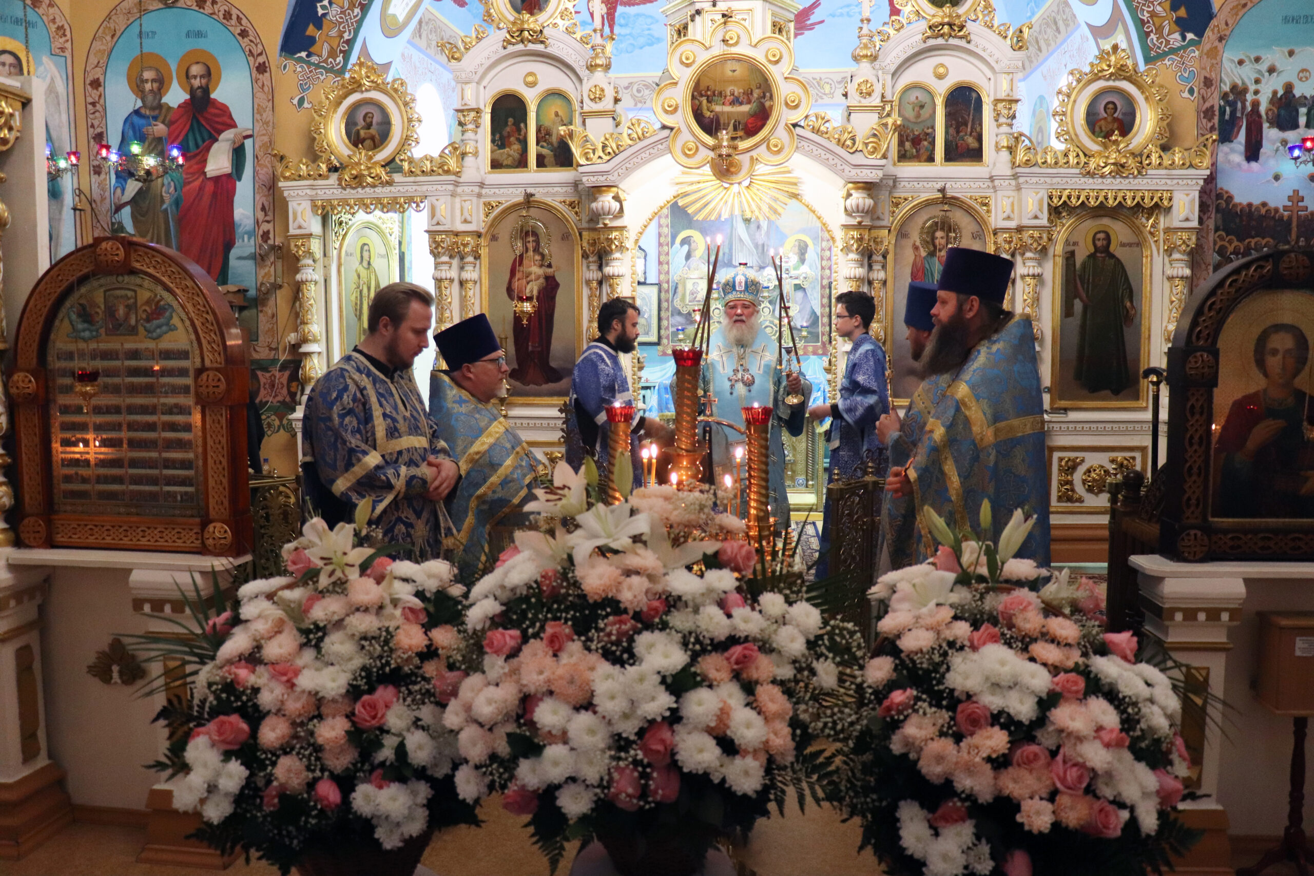 Его Преосвященству сослужили: старший священник храма иерей Илья Михальченко, протоиерей Александр Тарасов, иерей Антоний Сотников и диакон Иоанн Шумилин.
