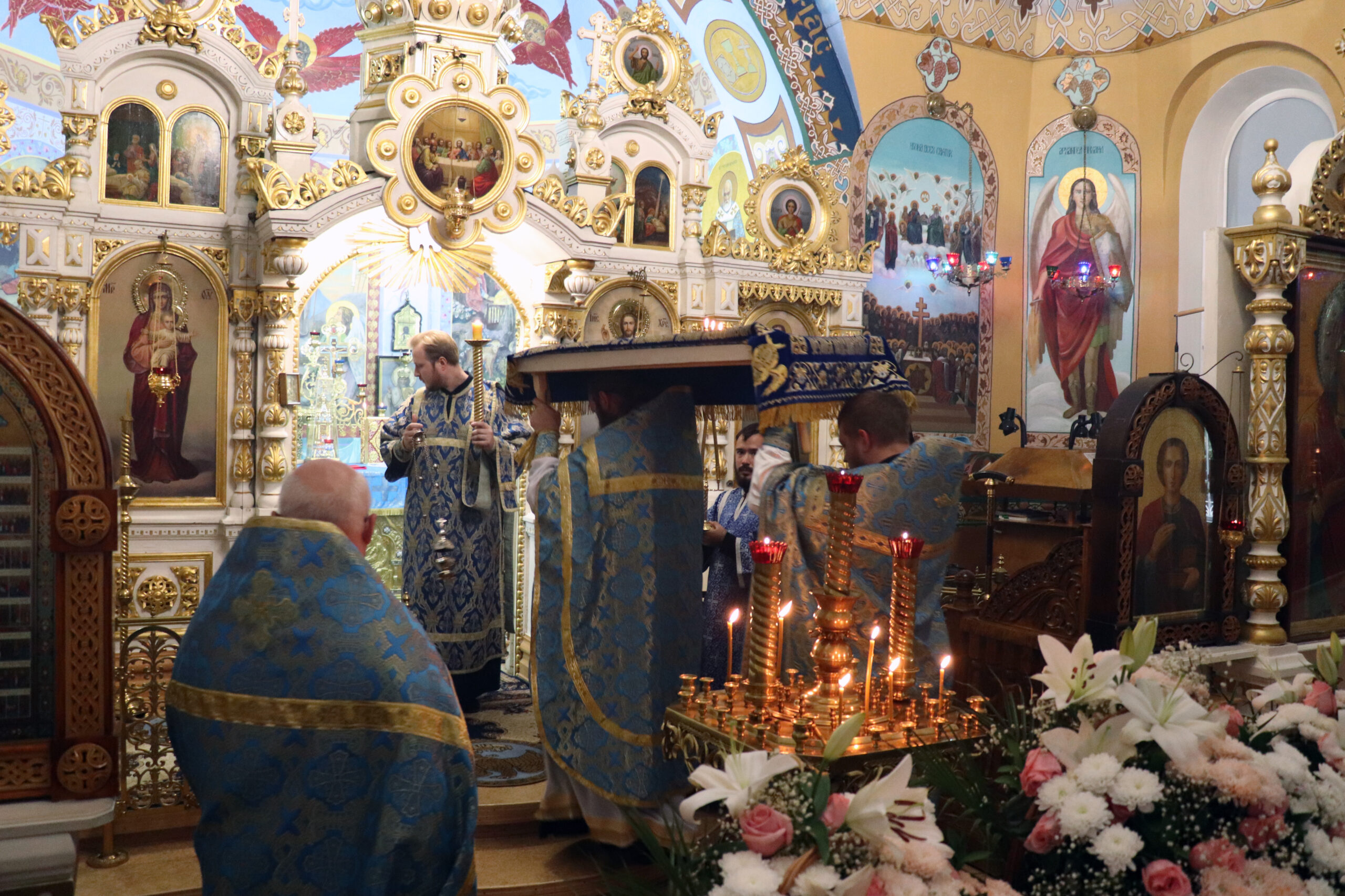 По окончании Божественной литургии, Плащаница Пресвятой Богородицы была перенесена в алтарь.