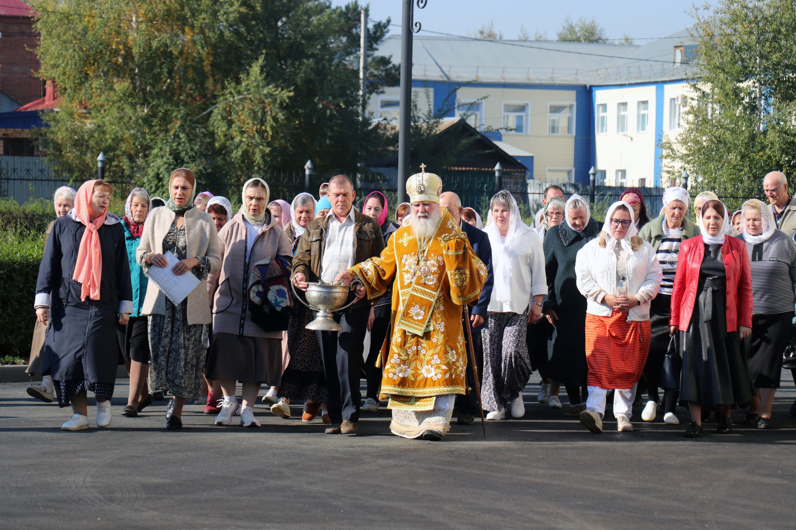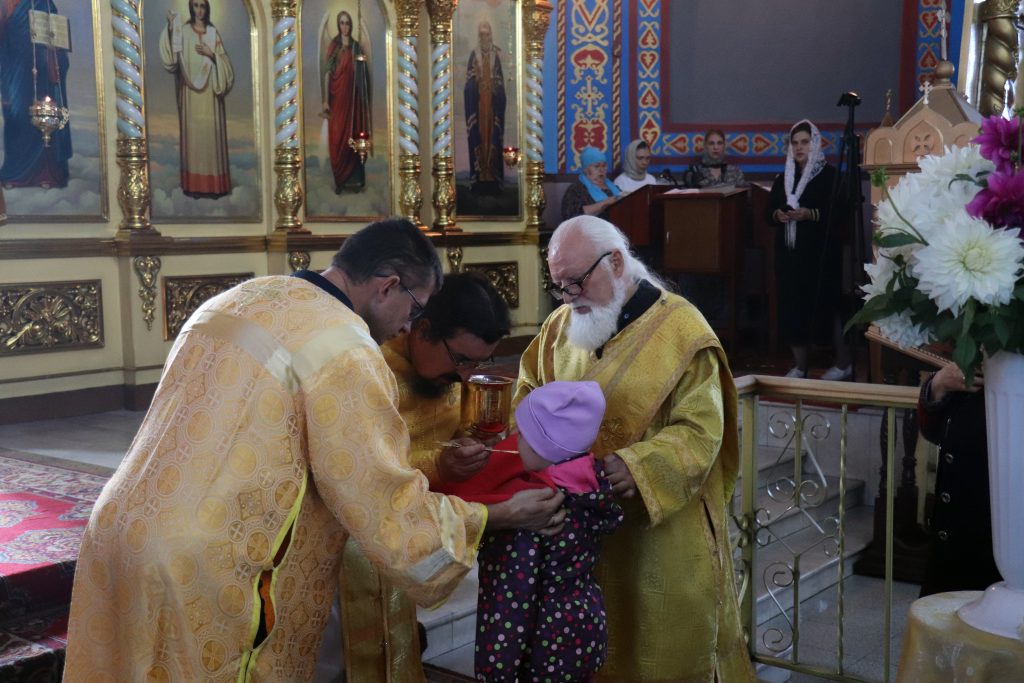 После причастия состоялся праздничный крестный ход вокруг храма.