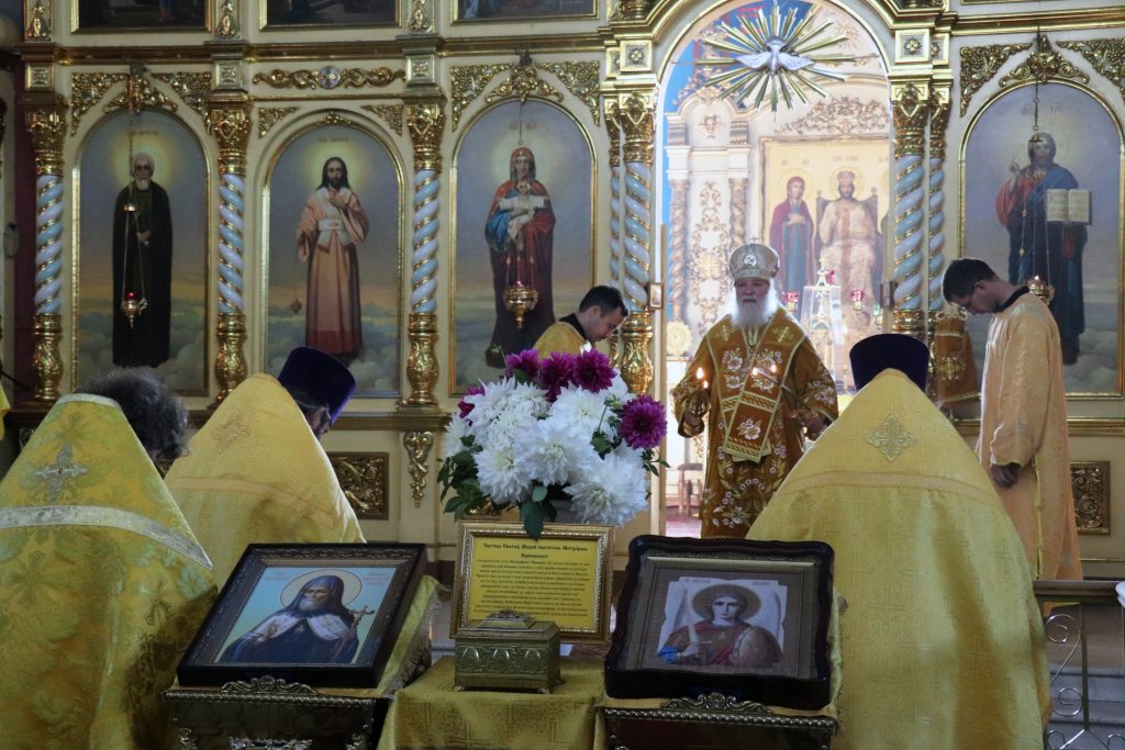 Напомним, что в декабре 2017 года Владыка Алексий освятил левый придел храма во имя святителя Митрофана Воронежского, также в храме хранится частица мощей святого.