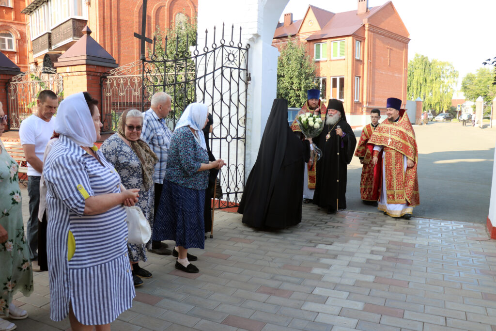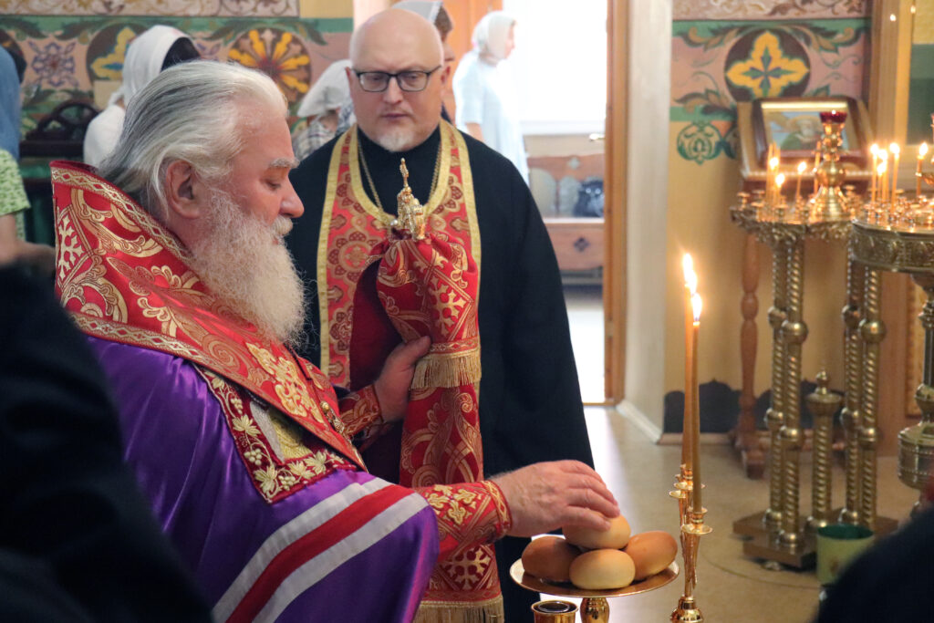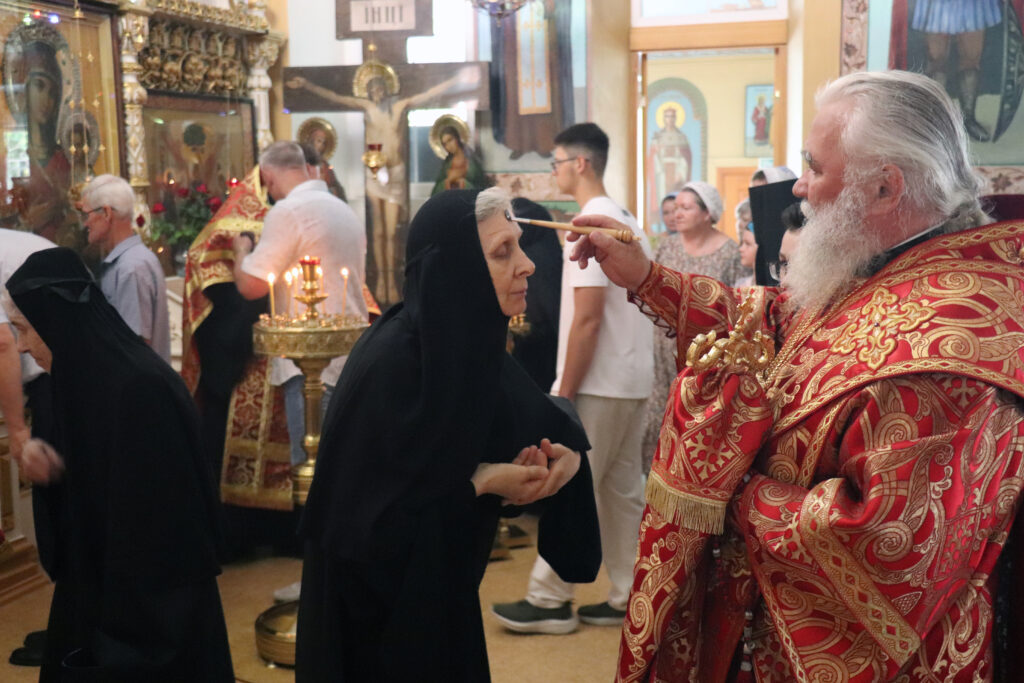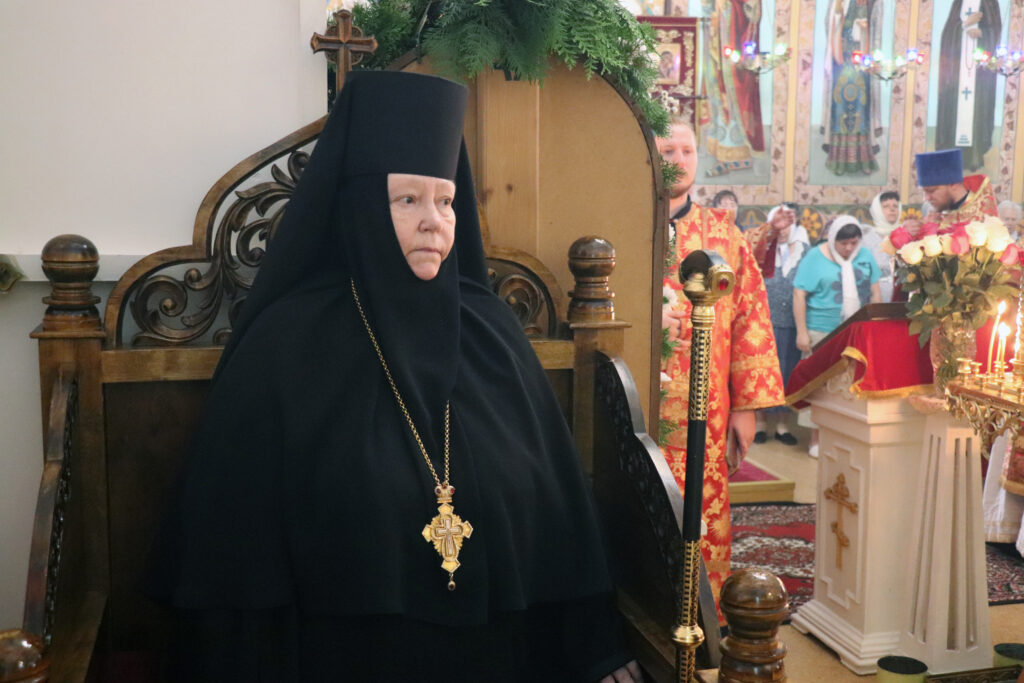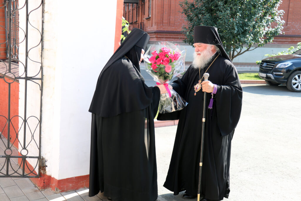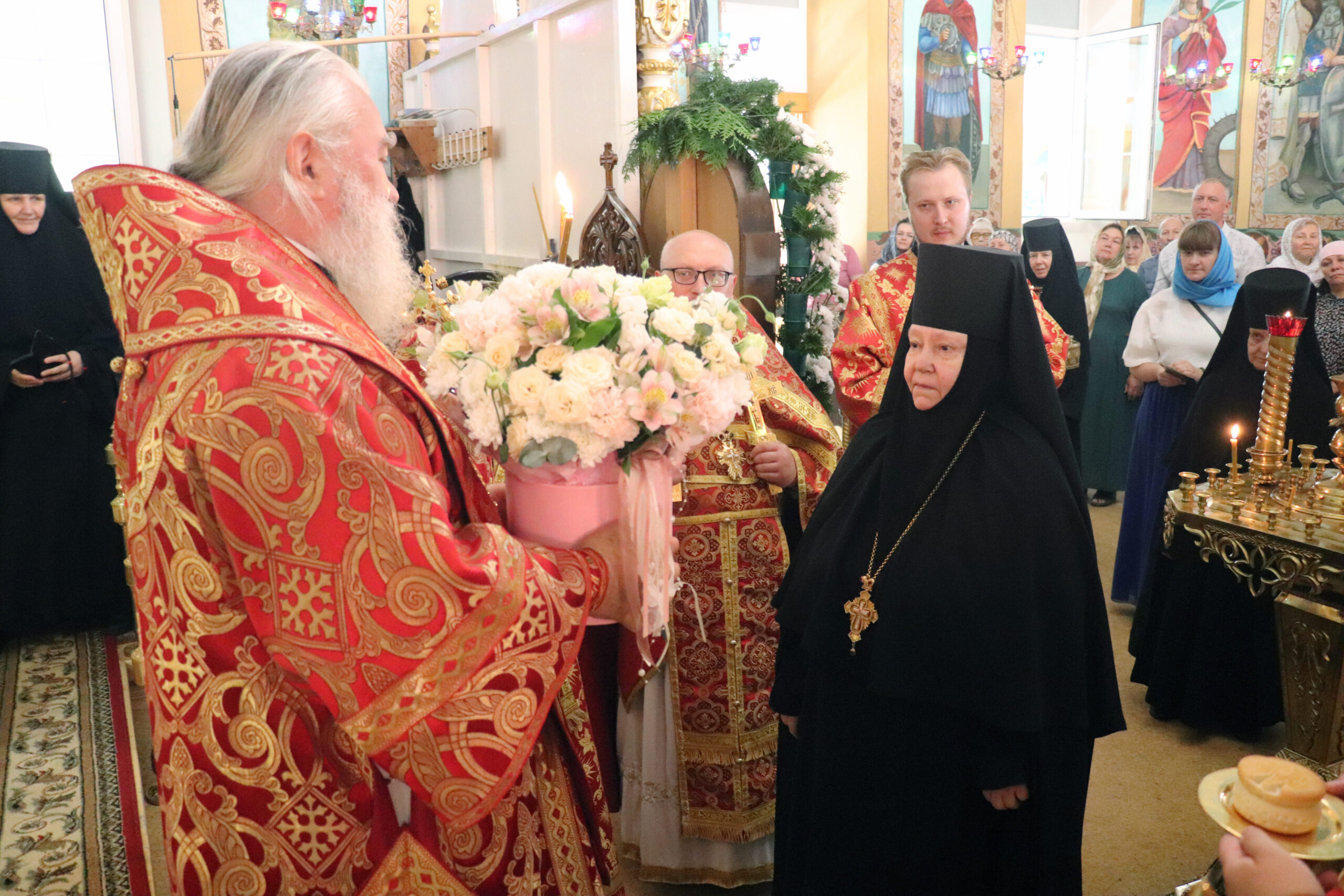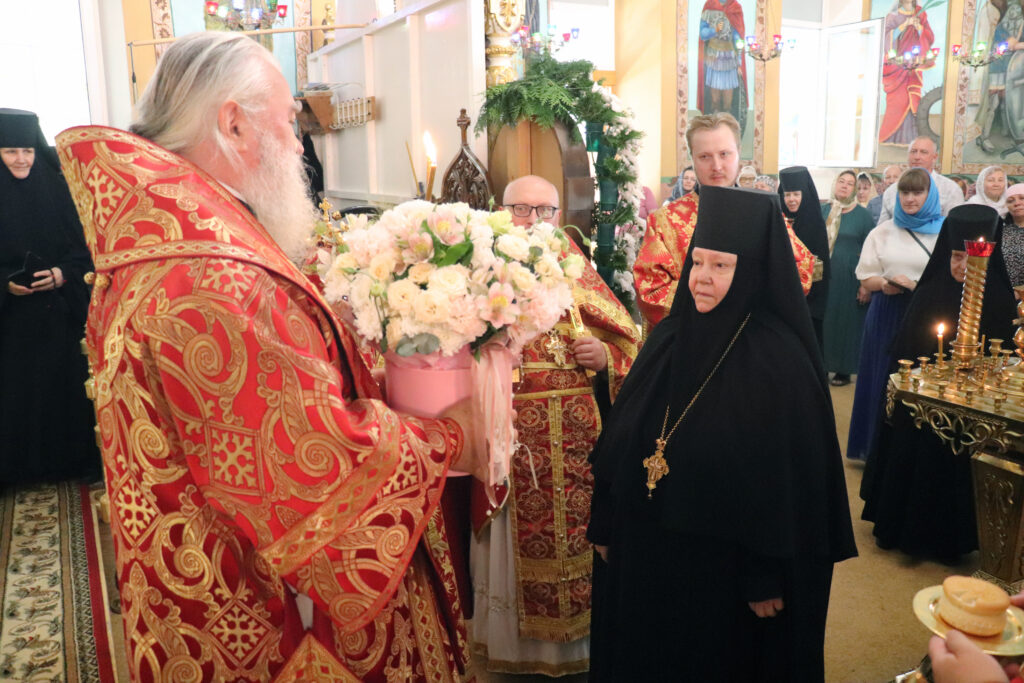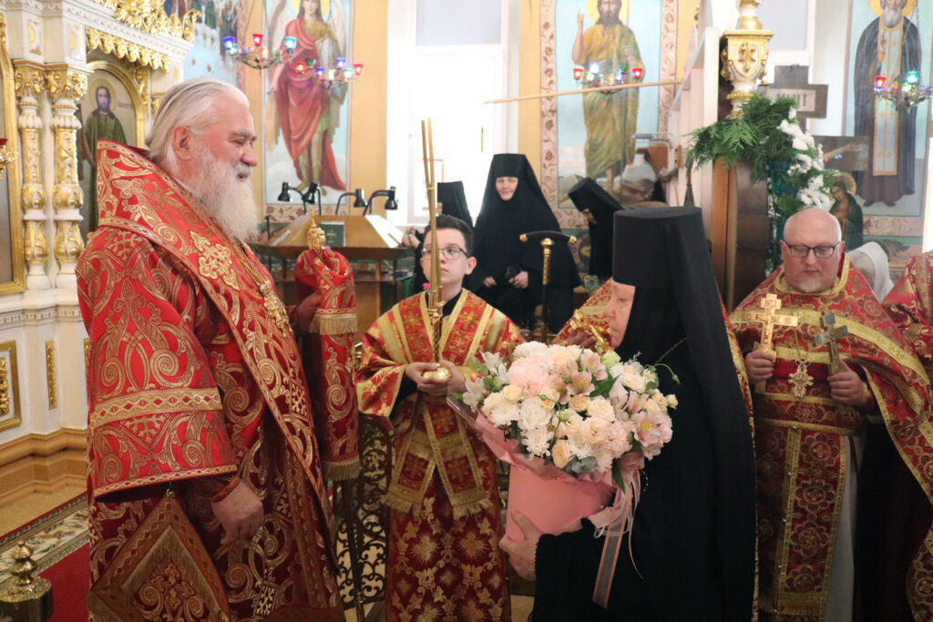 В заключении игумения Пантелеимона поблагодарила Владыку Алексия за поздравление, за архиерейское богослужение, совместную молитву и пригласила всех на праздничную трапезу.