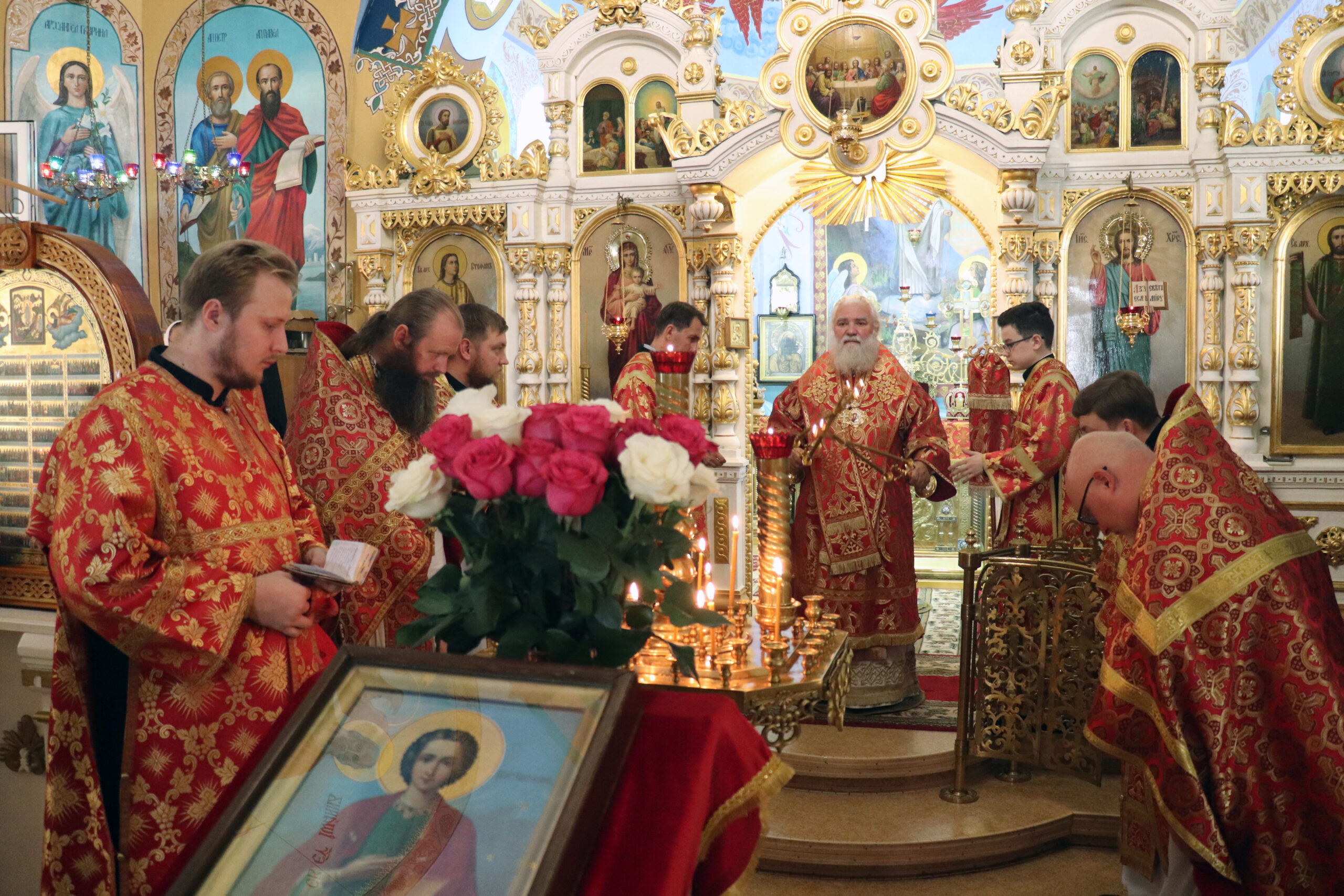 После чтения Евангелия Владыка Алексий обратился к прихожанам с проповедью о житие великомученика и целителя Пантелеимона.