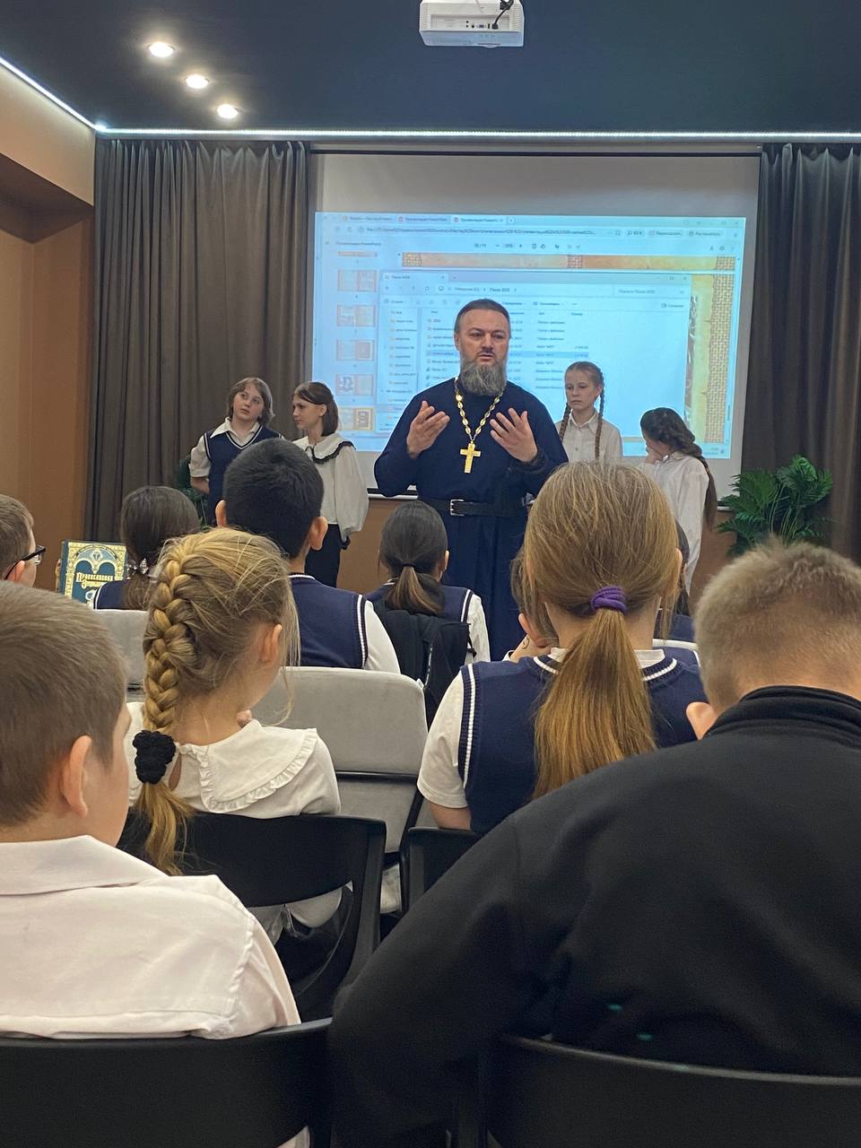 Первомайский. 12 марта 2026 года настоятель храма Вознесения Господня с. Красное Первомайского района иерей Евгений Ермилов с учащимися воскресной школы «Свечечка» и педагогами приняли участие в мероприятии посвященному Дню православной книги, подготовленным работниками Первомайской модельной библиотеки.