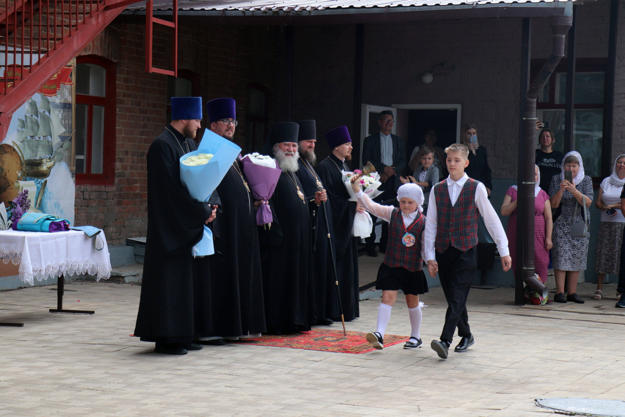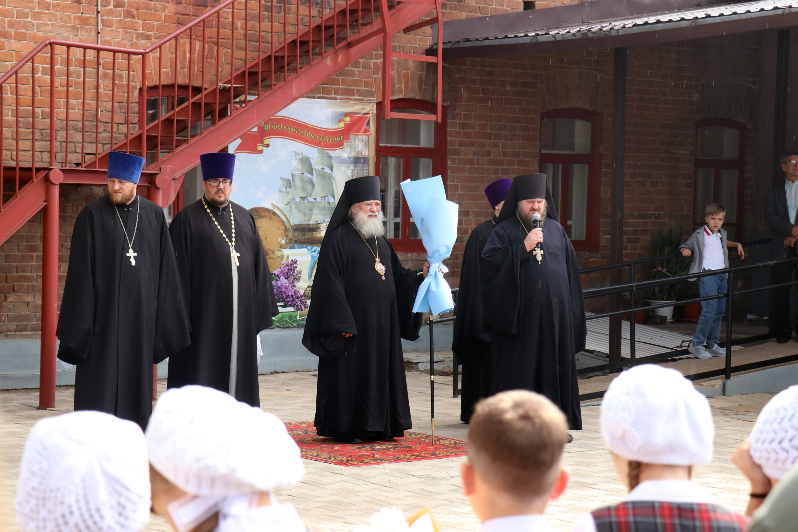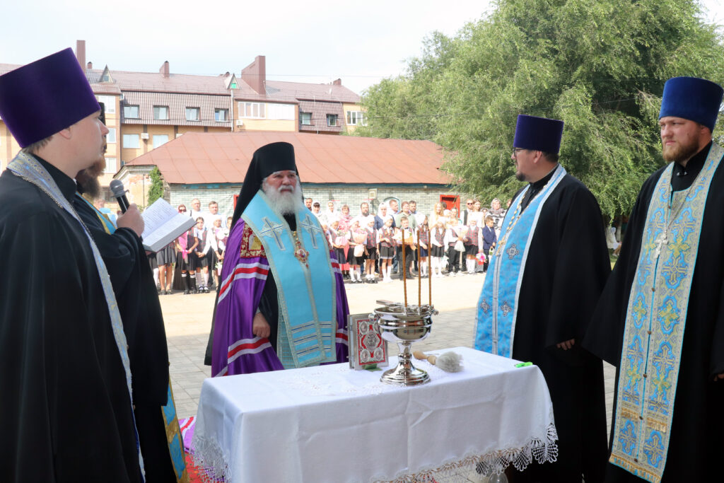 Перед началом линейки Владыка Алексий отслужил молебен перед началом учебного года.