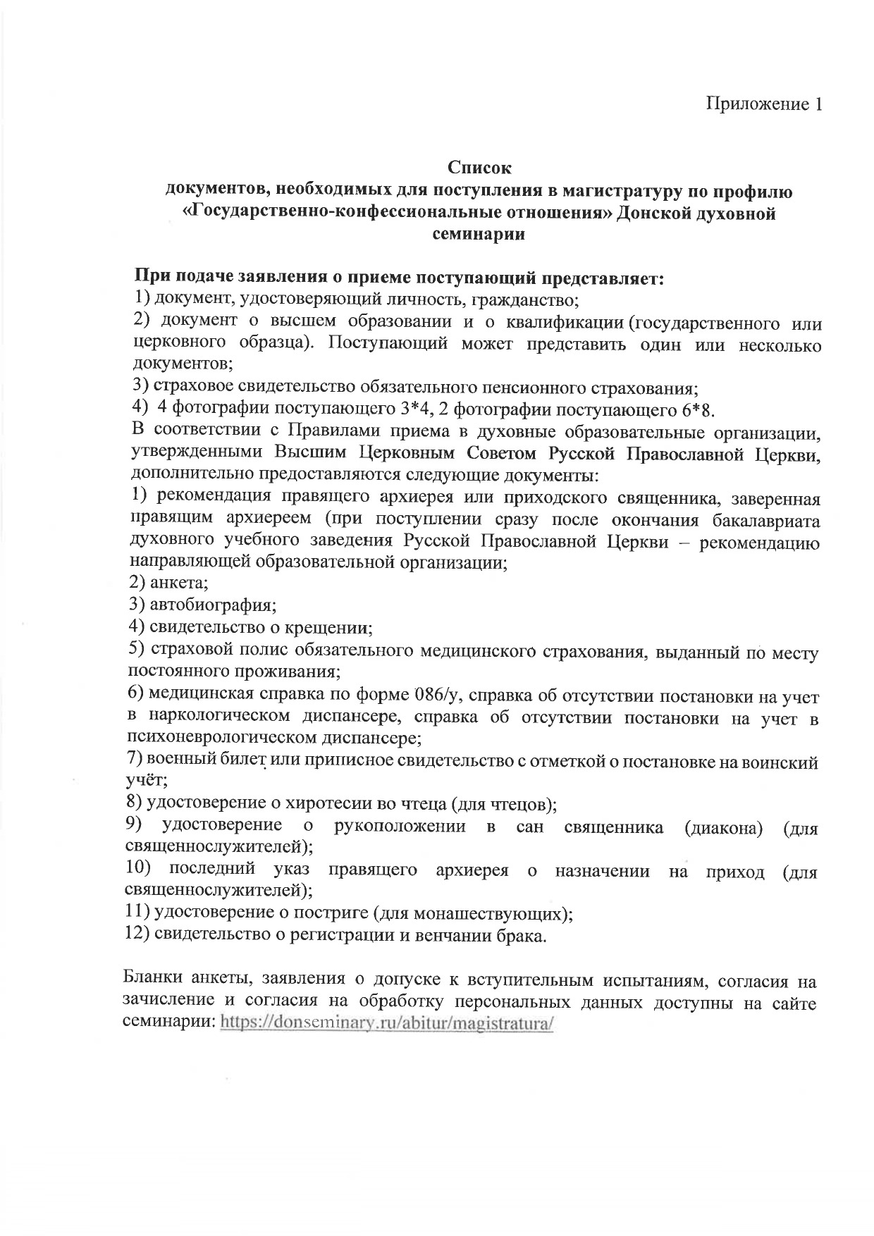 Подробная информация и бланки документов доступны на сайте семинарии.