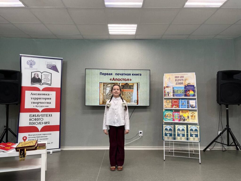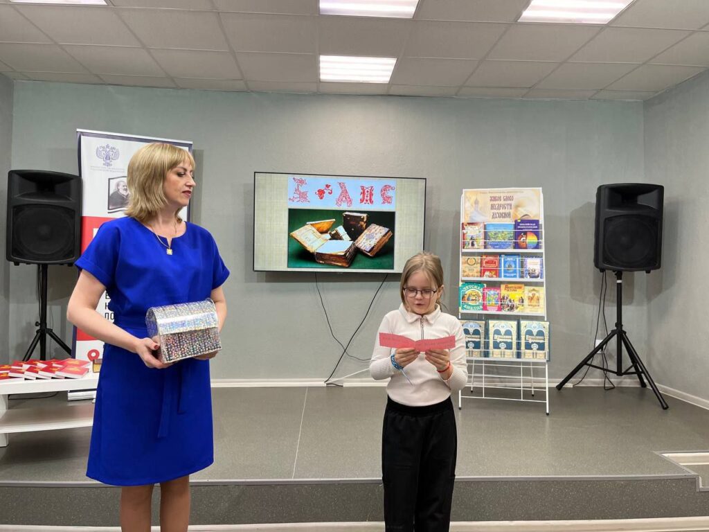 Ведущая Елена Чертищева рассказала ребятам об истории возникновения отечественного книгопечатания, о просветительском значении православной литературы.