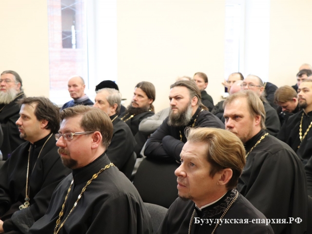 Отчёты о работе за 2019 год предоставили руководители епархиальных отделов: игумен Виталий (Климов) – отдела образования и катехизации, протоиерей Сергий Корчагин – молодежного отдела, протоиерей Вадим Агутин – социального отдела, иерей Анатолий Марченков – отдела по борьбе с пьянством и наркоманией, иерей Максим Заико – миссионерского отдела, протоиерей Иоанн Ковалев – отдела по взаимодействию с Вооруженными силами, протоиерей Сергий Клименко – отдела по канонизации святых. Каждый рассказал о том, как проходили различные мероприятия, акции по направлениям работы отделов, какие работы, встречи и занятия проведены, и поделился планами на будущий год. Игумения Пантелеимона (Кривенкова) – настоятельница Свято-Тихвинского Богородицкого Бузулукского женского монастыря рассказала о деятельности монастырей.