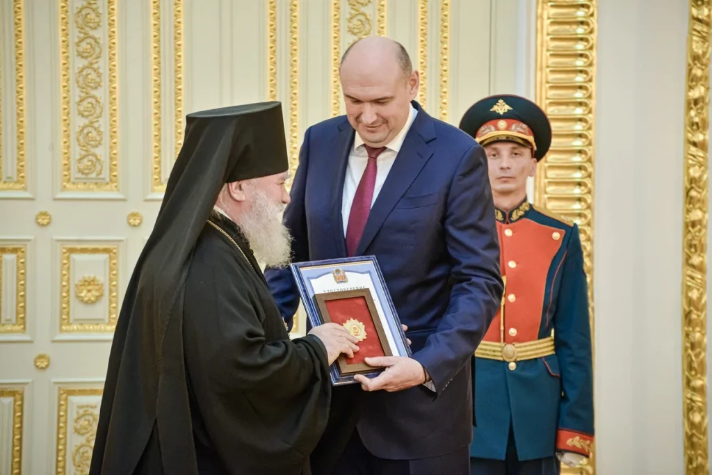Вся Бузулукская епархия награждена знаком отличия «За содействие специальной военной операции». Евгений Солнцев вручил награду управляющему Епархией епископу Бузулукскому и Сорочинскому Алексию. Владыка Алексий в ответном слове поблагодарил главу региона.