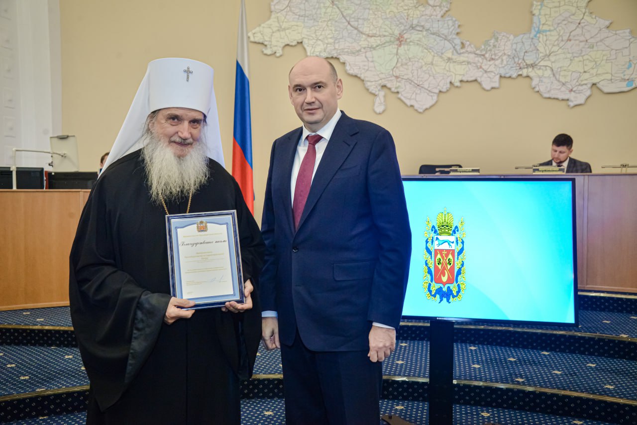 В конце заседания губернатор вручил благодарственное письмо владыке митрополиту «за большой вклад в сохранение и укрепление традиционных духовных и нравственных ценностей».