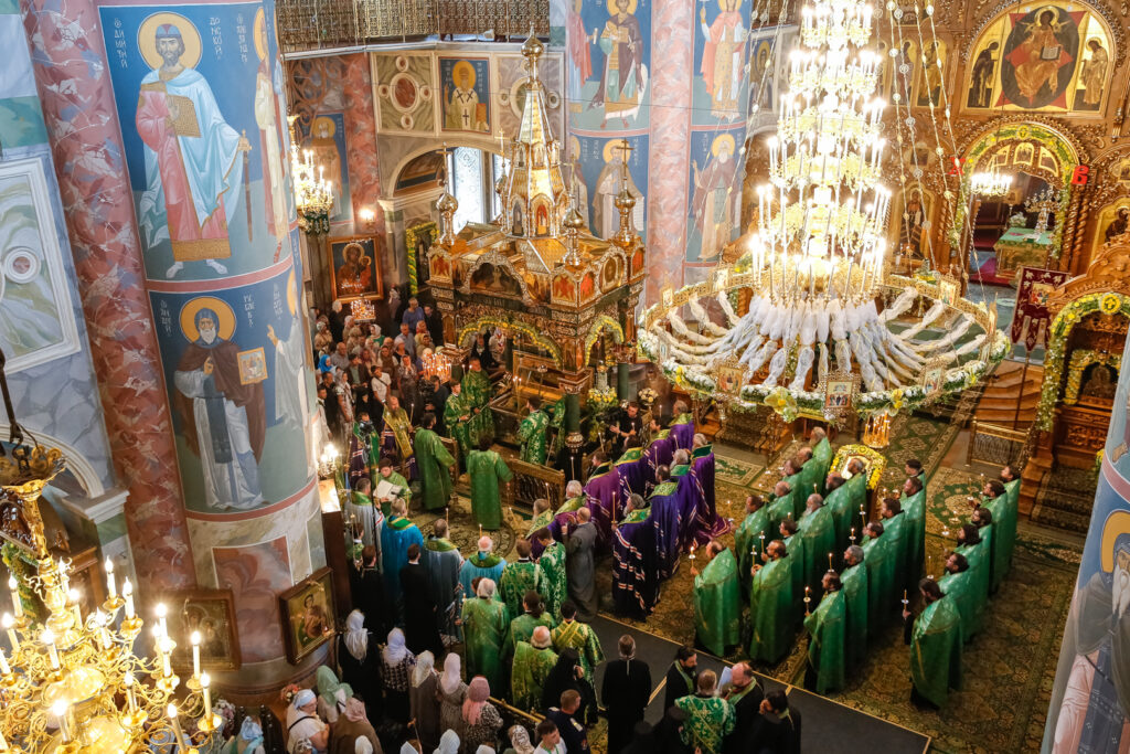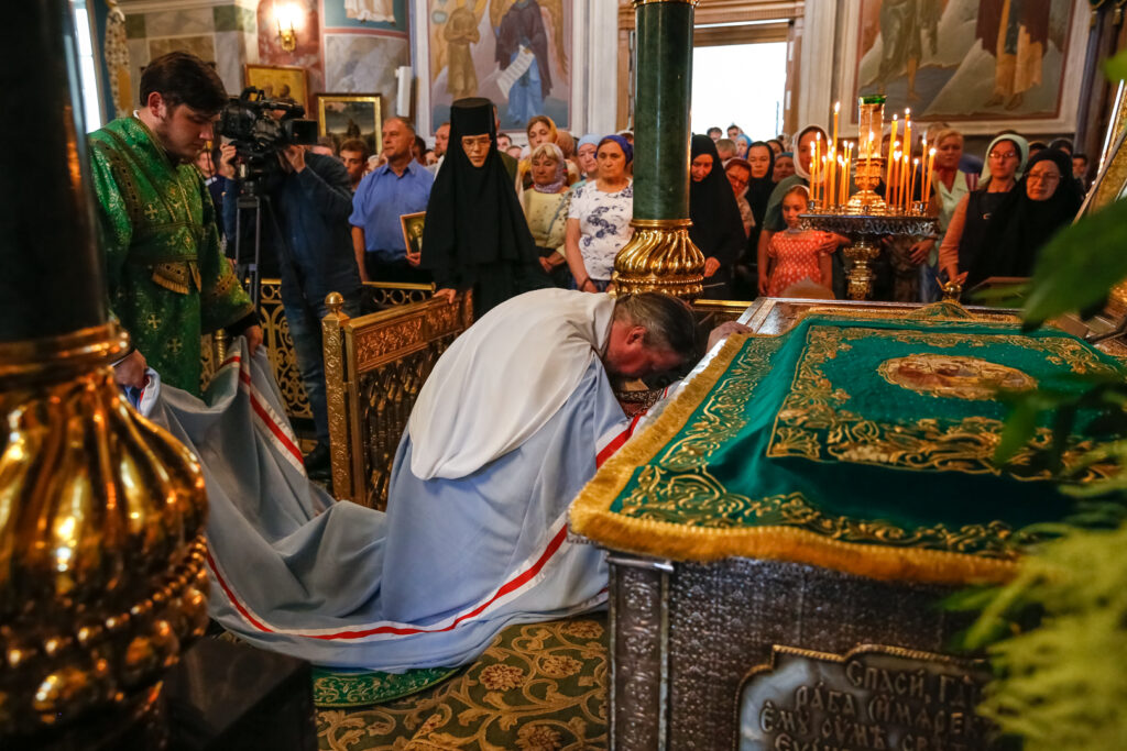 На богослужении вместе с многочисленными паломниками и прихожанами молились настоятельница Дивеевского монастыря игумения Сергия (Конкова) и сестры этой обители, настоятельницы других женских монастырей Русской Православной Церкви.