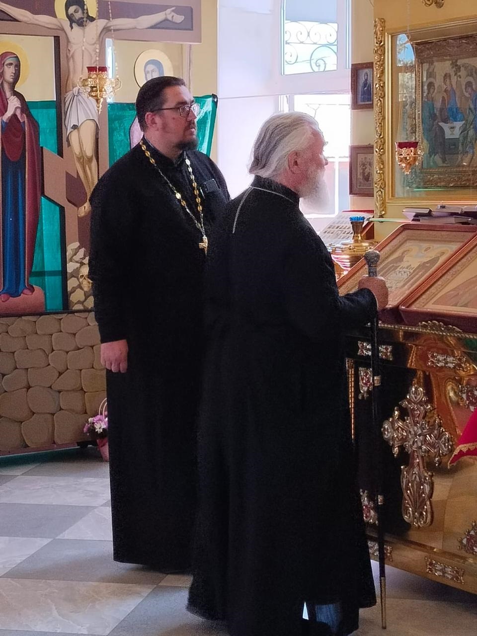 Настоятель храма иерей Александр Липатов доложил о проделанной работе, в свою очередь Владыка Алексий дал дальнейшие рекомендации по завершению ремонта и благословил настоятеля на дальнейшие труды.