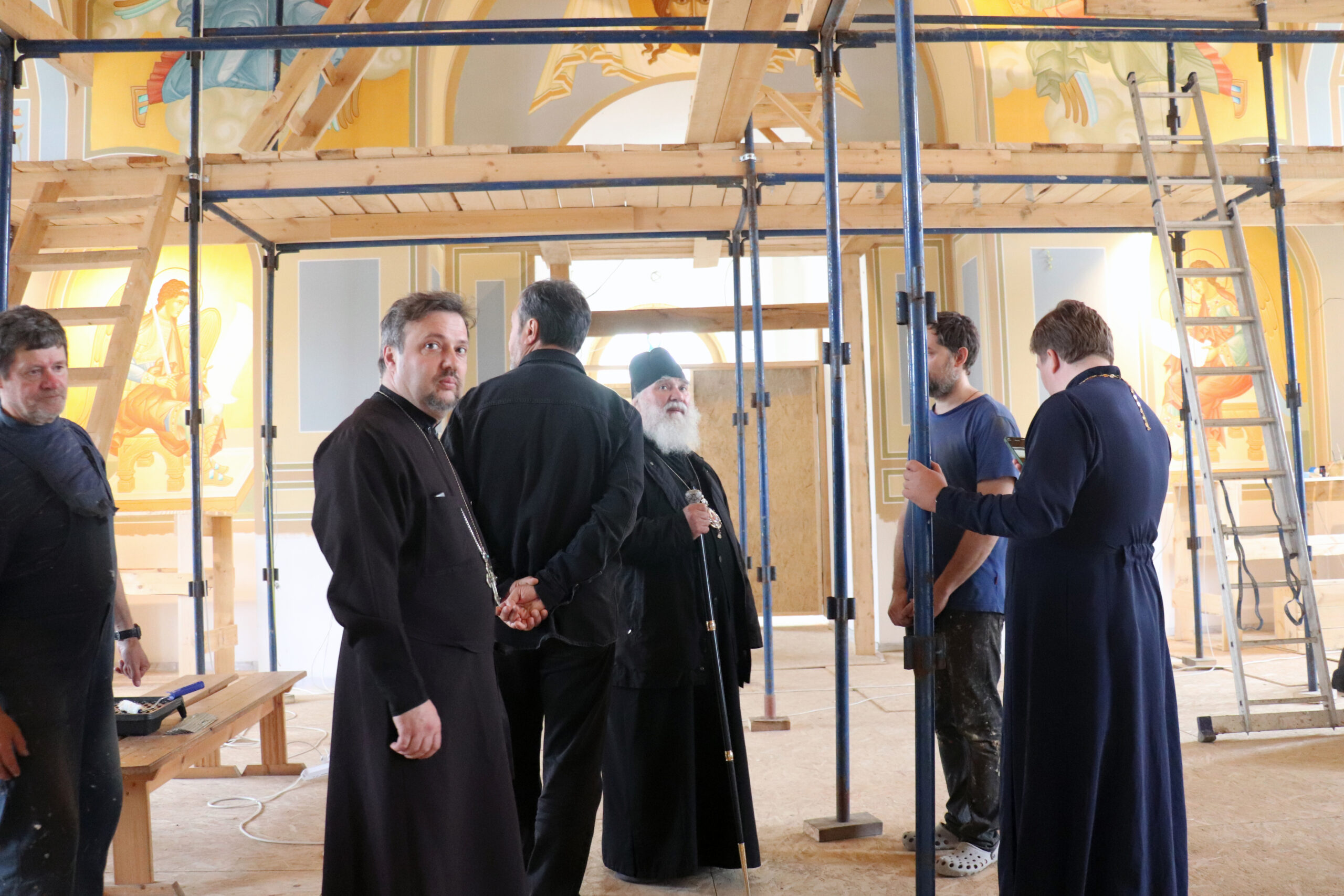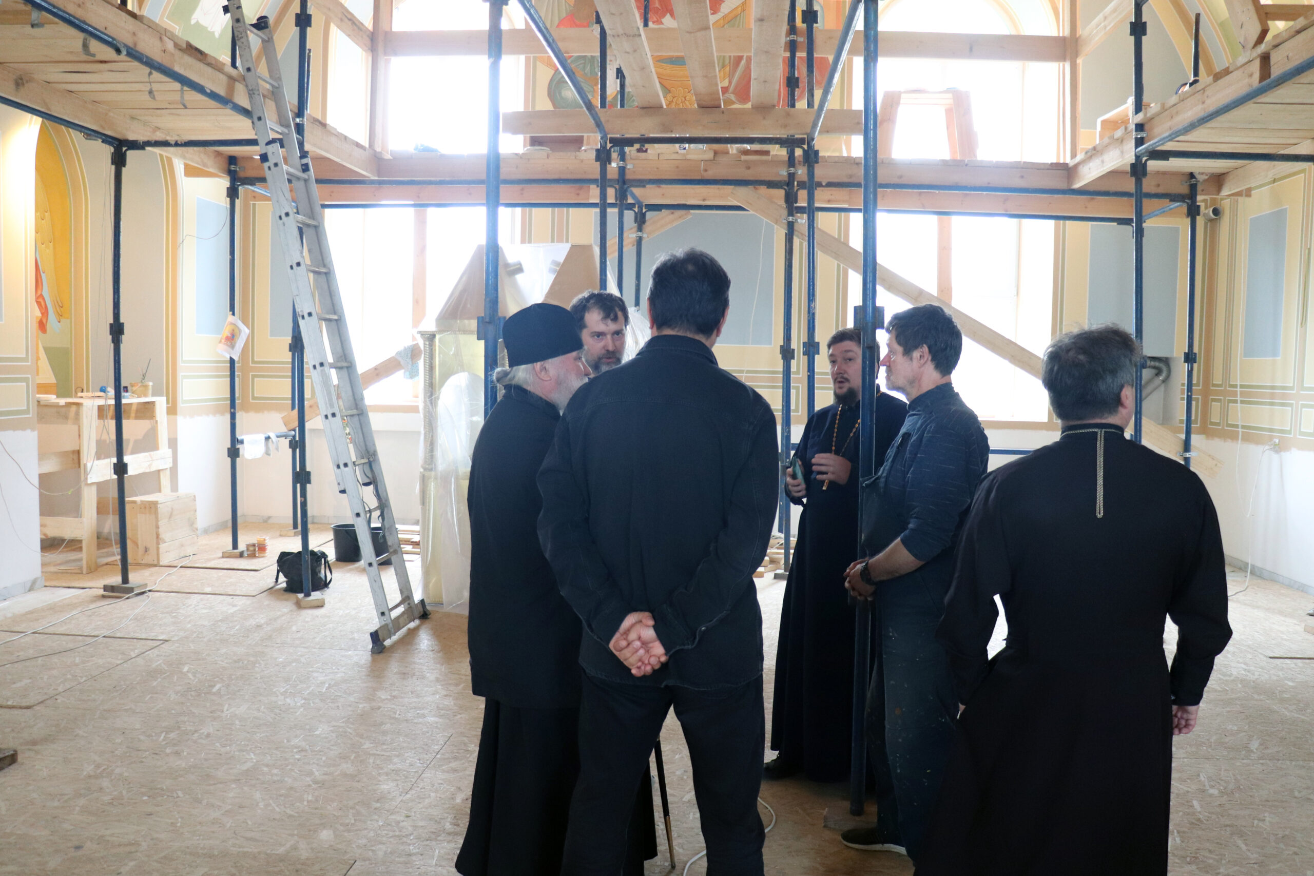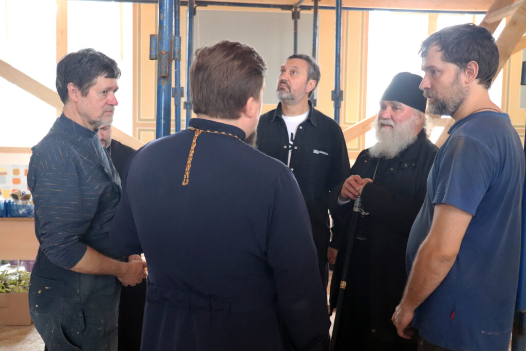 Побеседовав с иконописцами и осмотрев проделанную ими работу, присутствующие обсудили дальнейшие планы по завершению строительства Свято-Троицкого кафедрального собора.