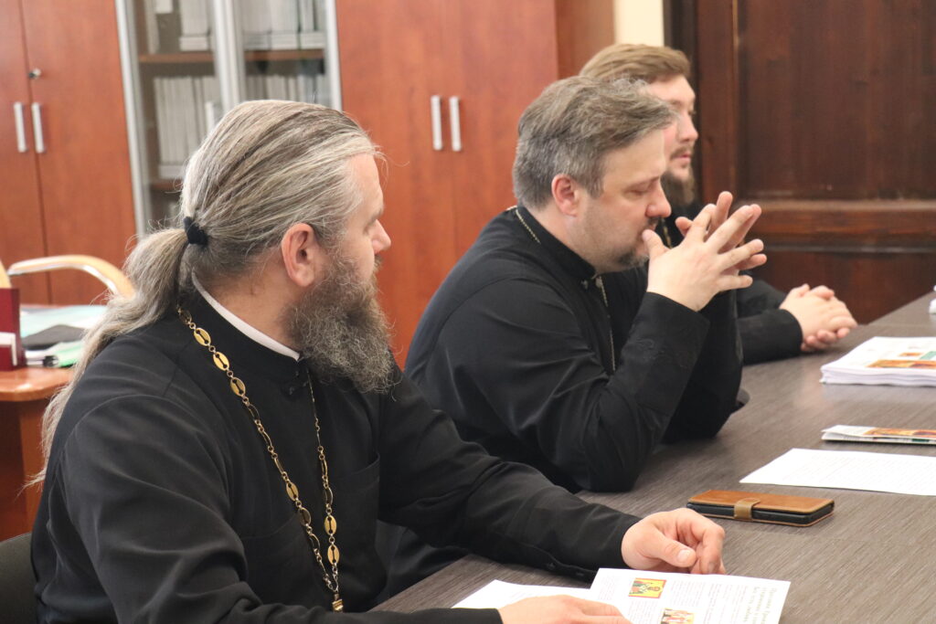 Владыка Алексий обсудил с духовенством проведение миссионерских акций в период празднования праздников дня Святой Троицы и дня России. Также архиерей дал указание начать подготовку ко дню памяти святых благоверных князя Петра и княгини Февронии Муромских.