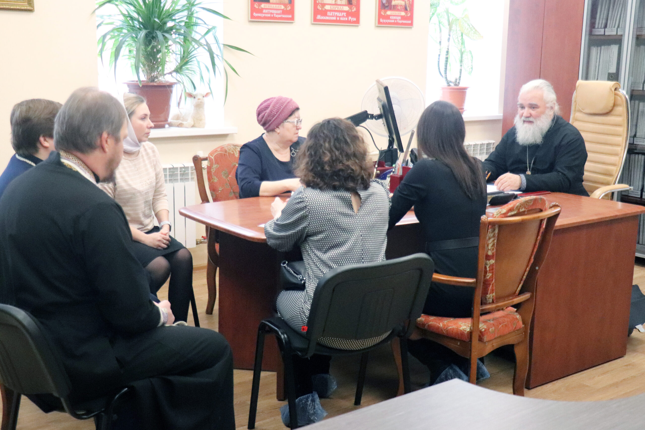 Бузулук. 17 февраля 2023 года епископ Бузулукский и Сорочинский Алексий провел встречу с представителями администрации города Бузулука по координации работы по поддержке членов семей мобилизованных. Встреча прошла в здании Епархиального управления.