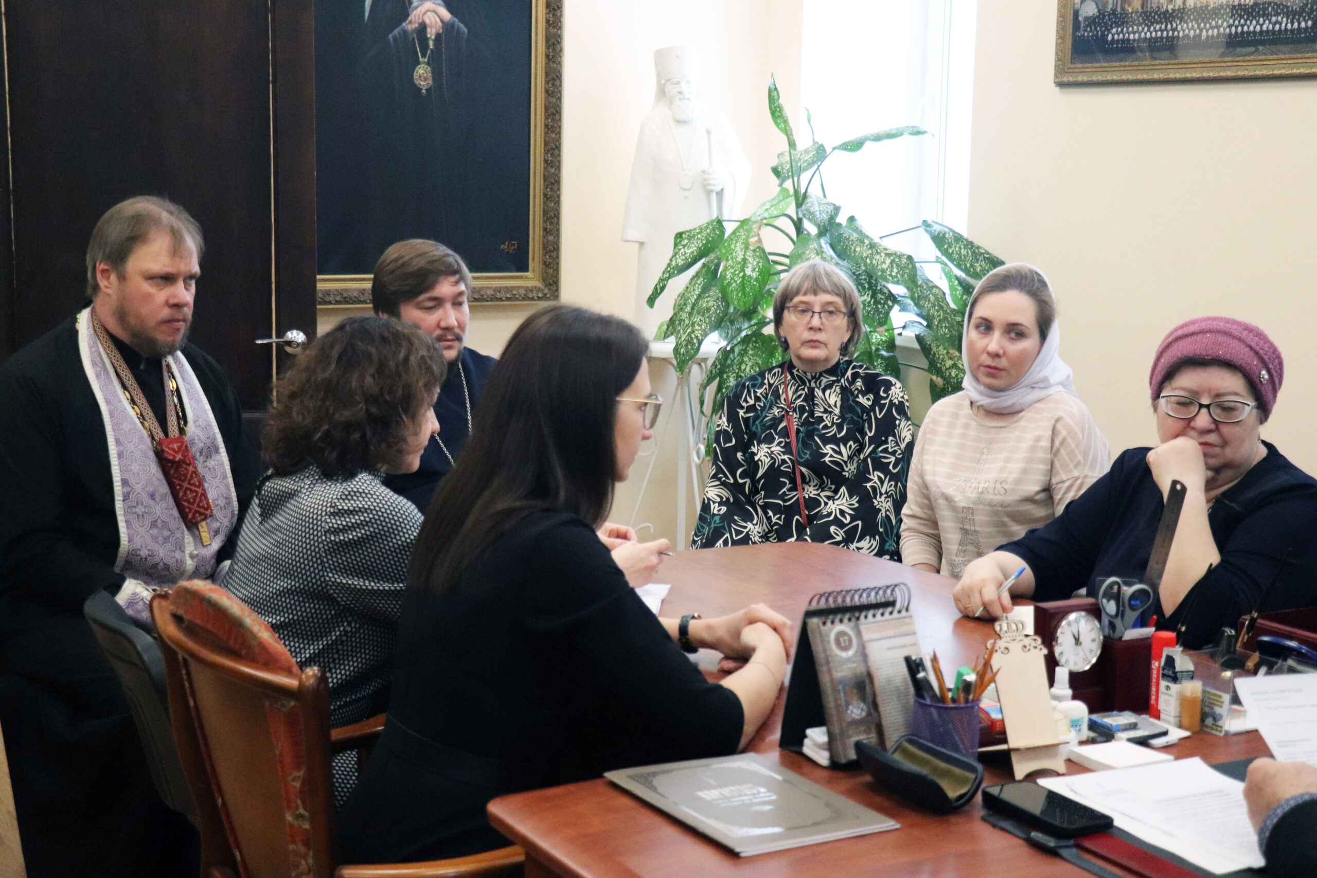 Во встрече приняли участие: заместитель главы администрации — руководитель аппарата администрации города Бузулука Анна Сергеевна Ковальчук, главный специалист отдела секретариата, секретарь штаба по помощи семьям мобилизованным Ольга Владимировна Черкасова, секретарь Бузулукской епархии иерей Дионисий Горбунов, руководитель епархиального отдела церковной благотворительности и социального служения протоиерей Вадим Агутин, координатор по работе с семьями мобилизованных при Бузулукской епархии Ирина Михайловна Грошева, помощник настоятеля Свято-Троицкого кафедрального собора г. Бузулука Инна Борисовна Майстренко и делопроизводитель Мария Виссарионовна Топорова.