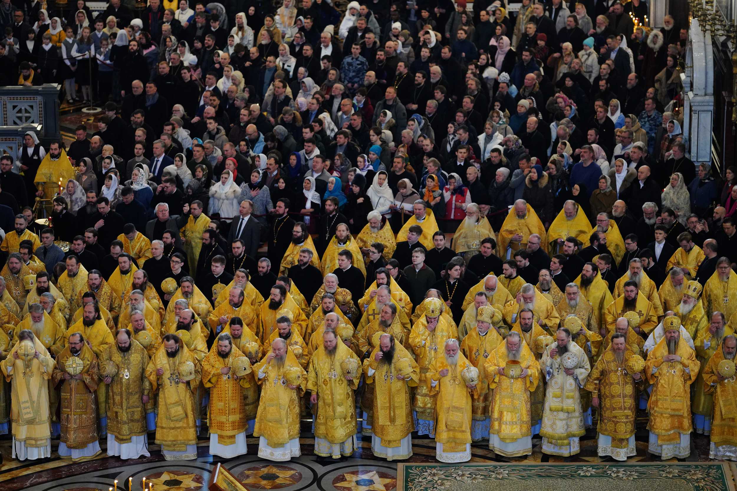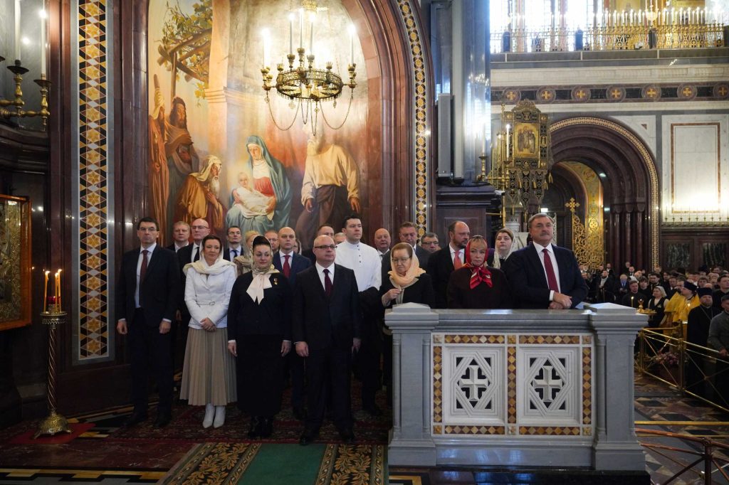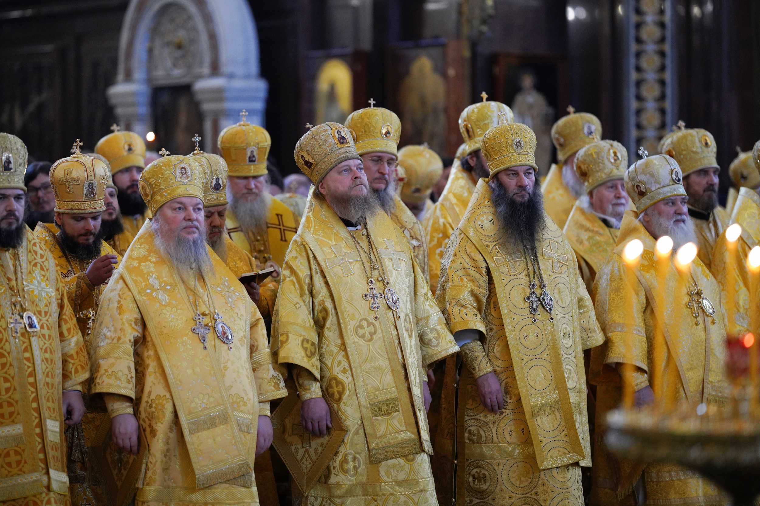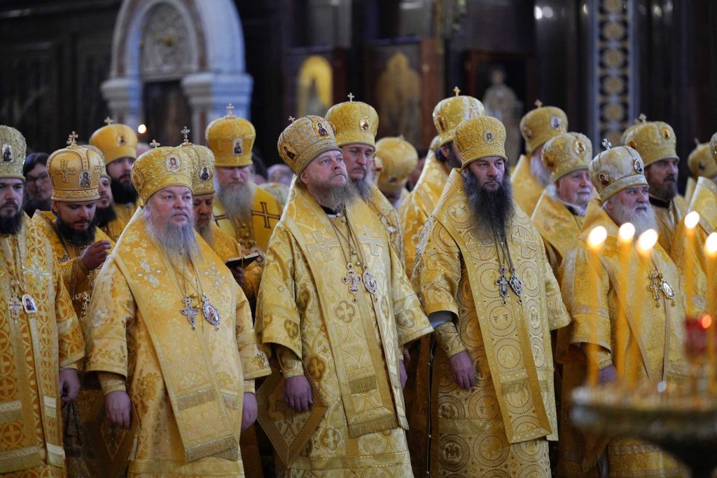 За Литургией Его Святейшеству сослужили сонм архиереев Московского Патриархата, среди которых был епископ Бузулукский и Сорочиснкий Алексий.