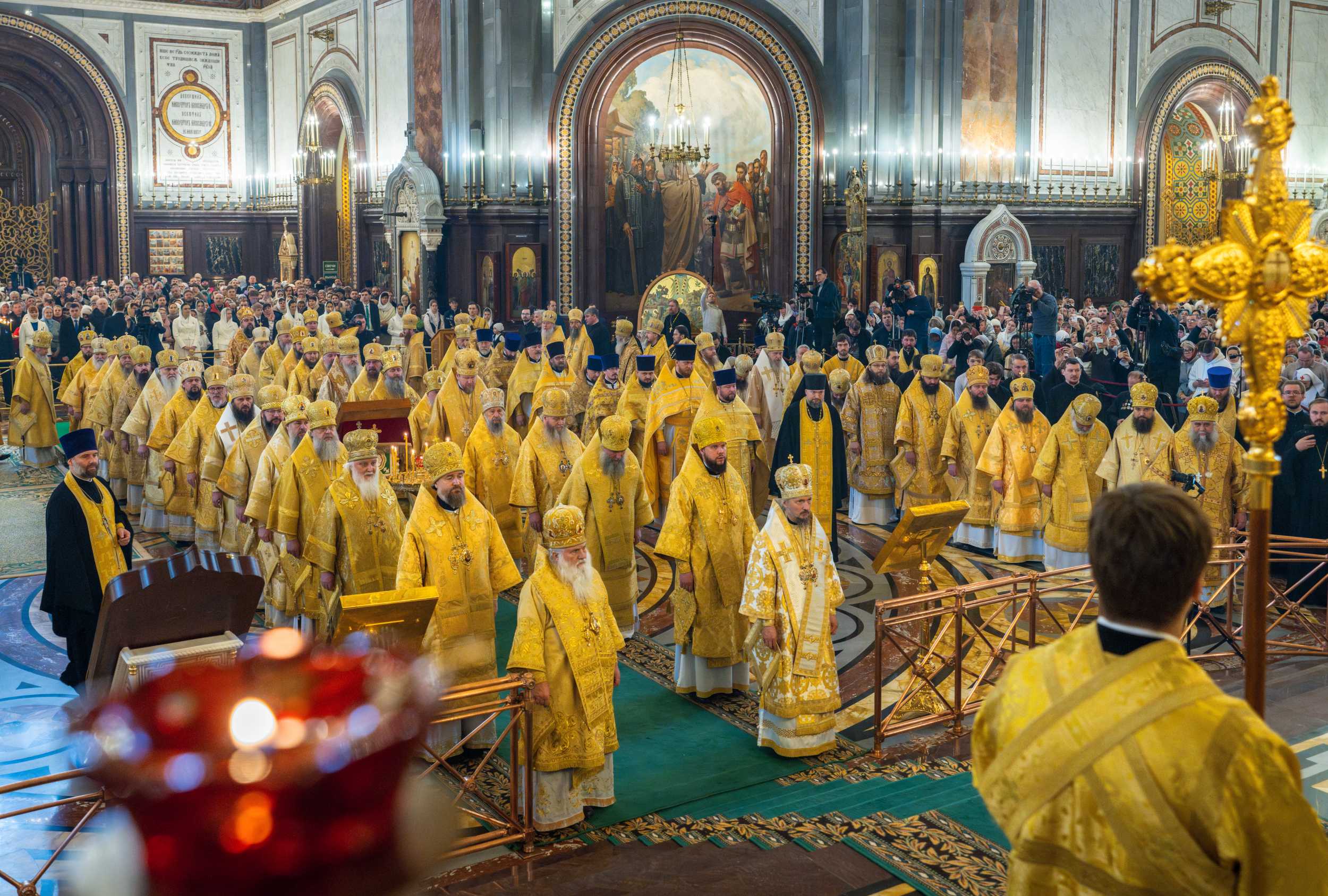 На сугубой ектении были вознесены особые прошения, Предстоятель Русской Церкви прочитал молитву о Святой Руси.