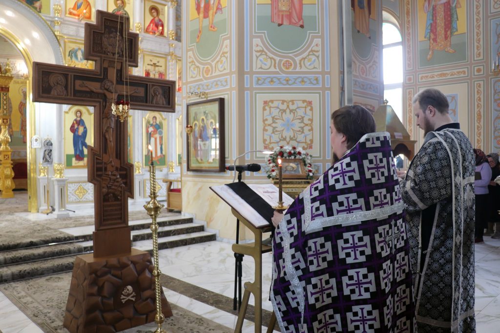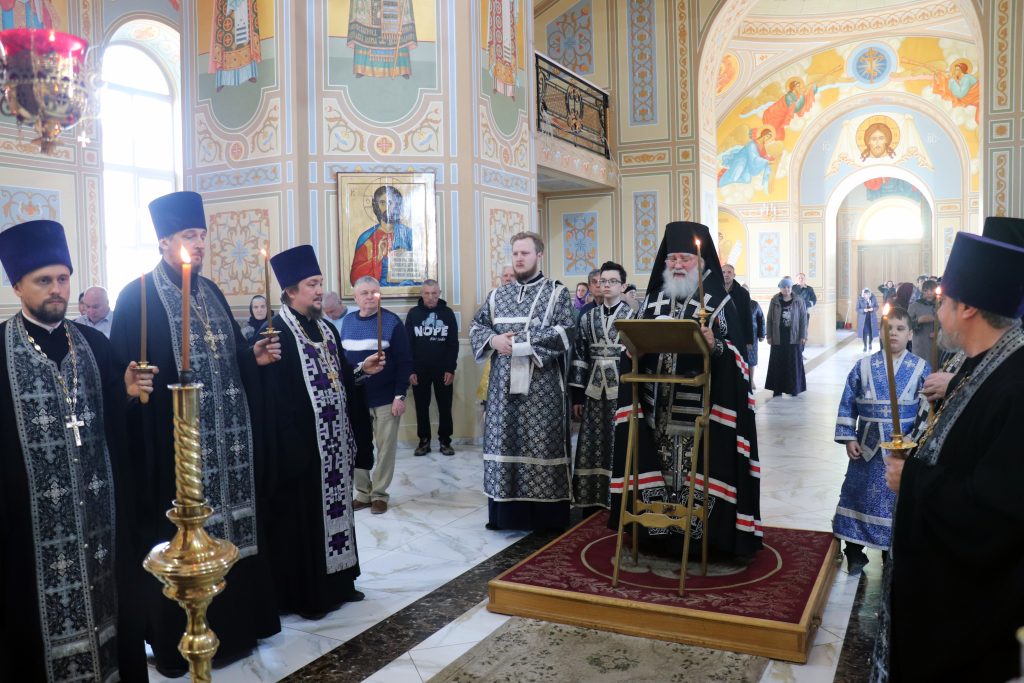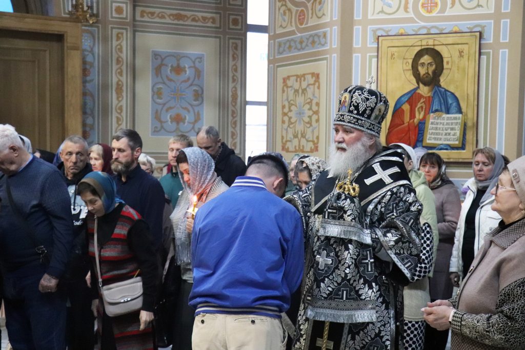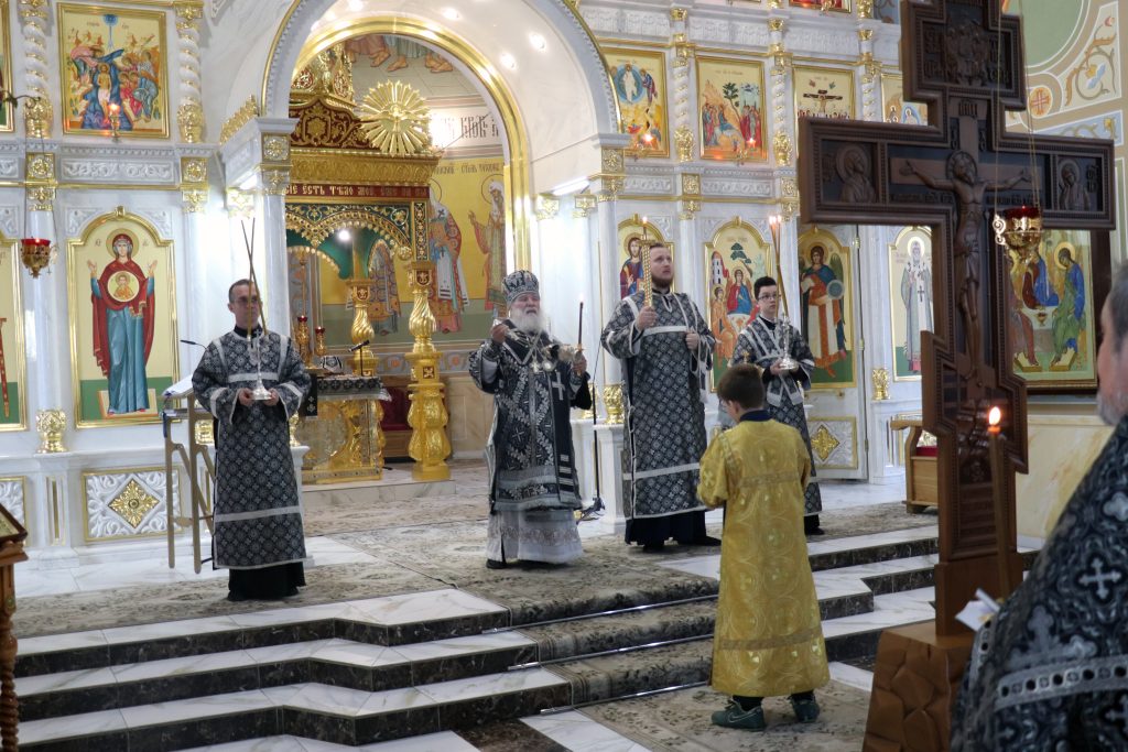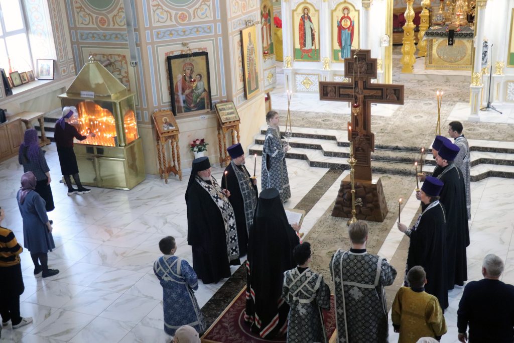По окончании утрени Владыка Алексий, духовенство и верующие поклонились Кресту Господню.