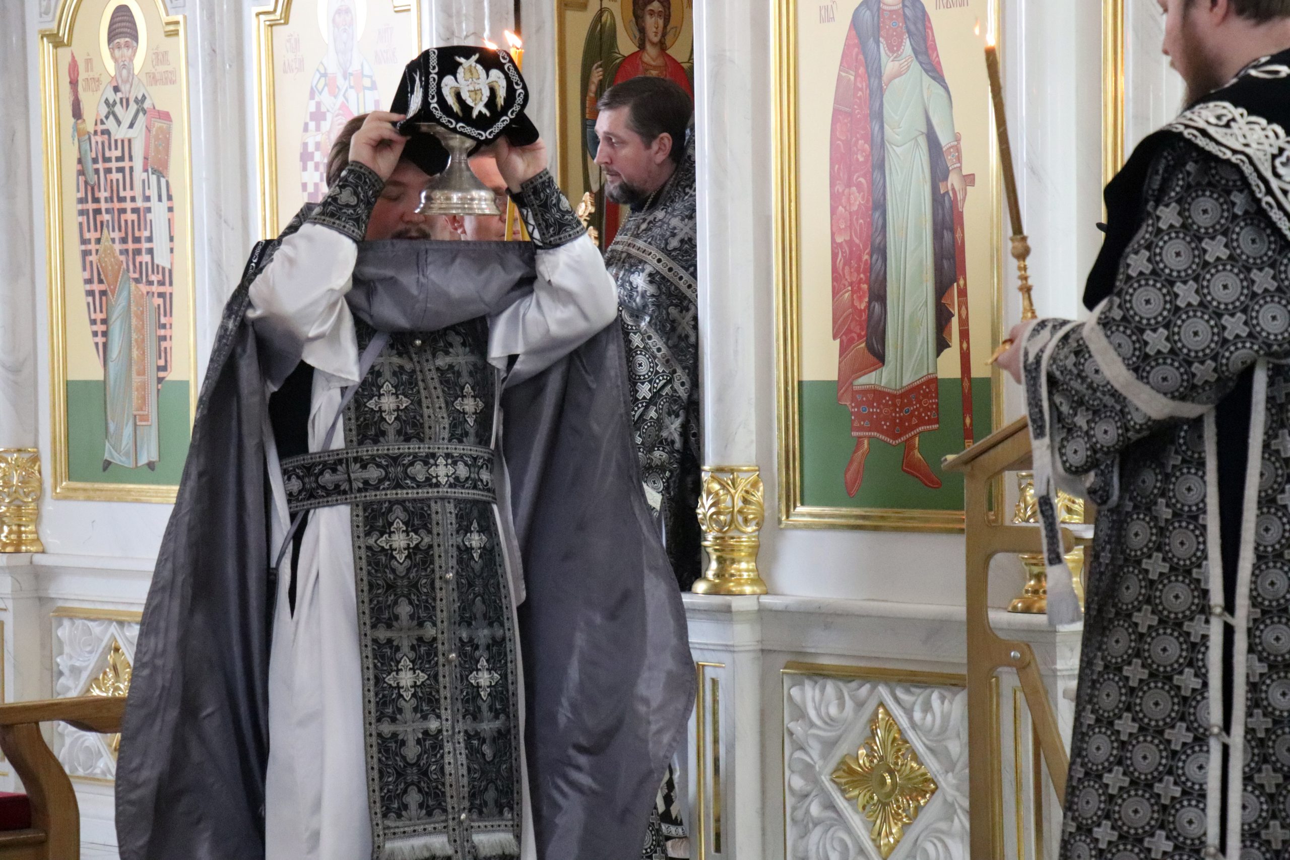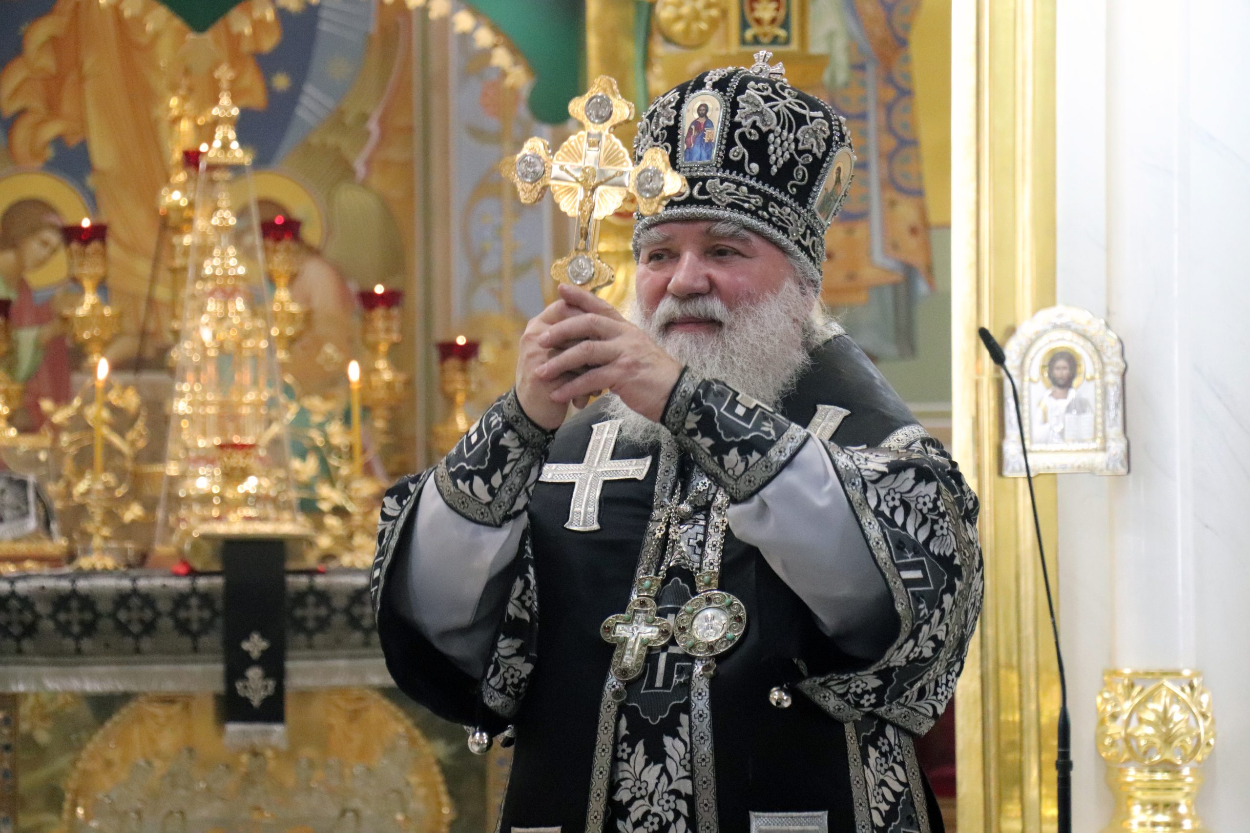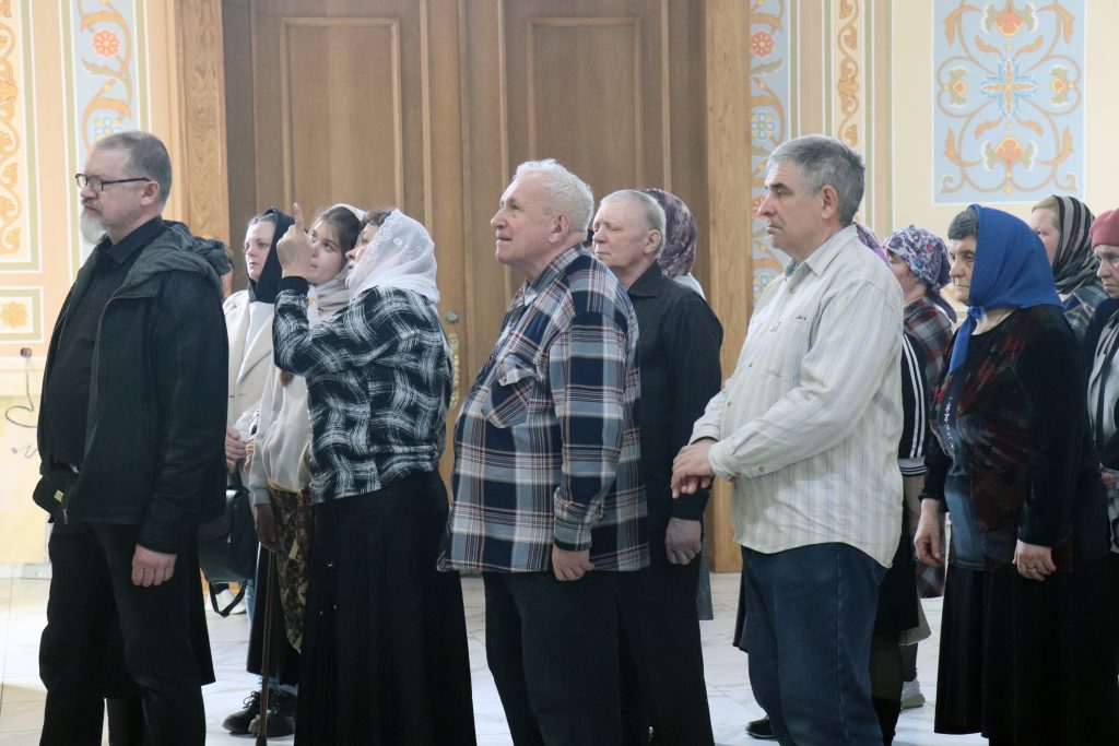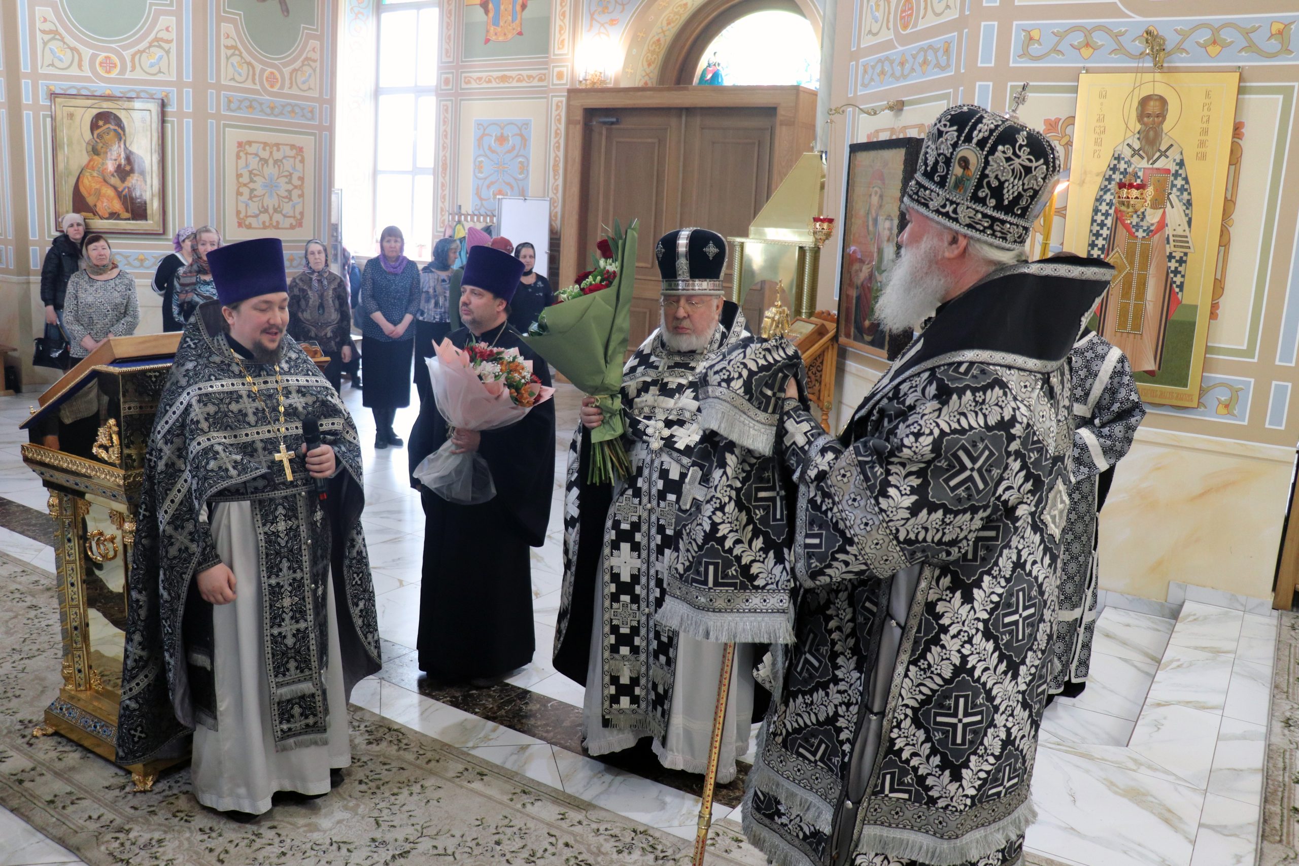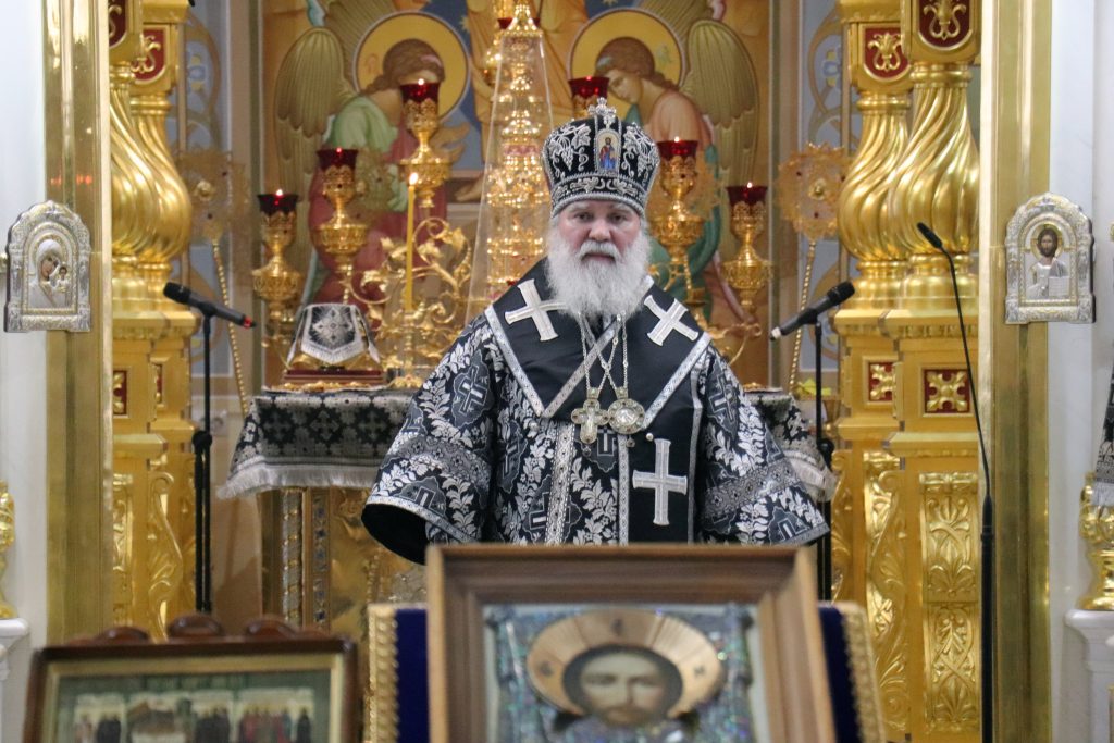 По отпусте Литургии Владыка Алексий обратился к прихожанам с проповедью, побеседовав о ныне воспоминаемых святых: преподобном Феофане исповеднике Сигрианском, правоверном Финеесе, первосвященнике Израильском, святителе Григории Двоеслове, папе Римском и преподобном Симеоне Новом Богослове.