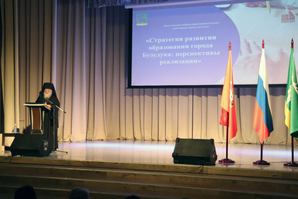 Бузулук. 28 августа 2025 года, епископ Бузулукский и Сорочинский Алексий принял участие в ежегодном городском августовском педсовете на тему «Стратегия развития образования города Бузулука: перспективы реализации», который прошел в ДК «Машиностроитель»