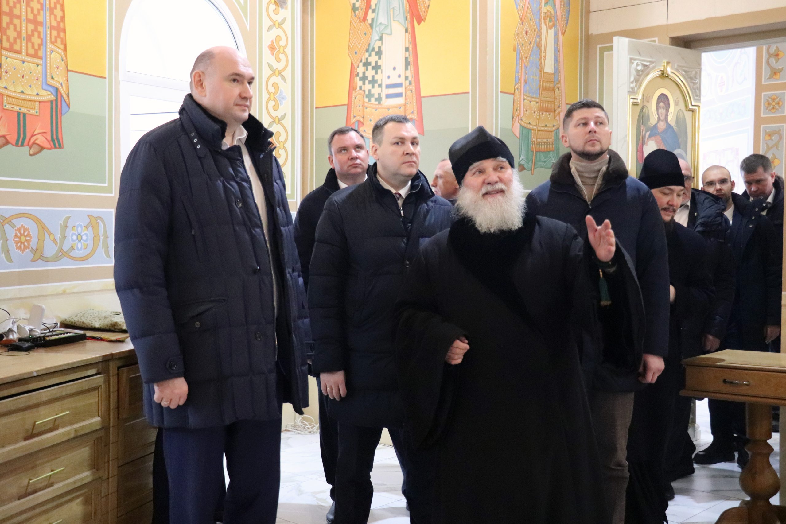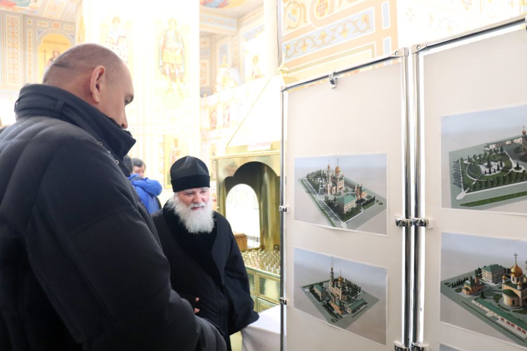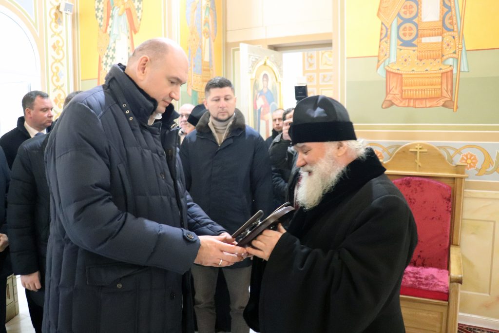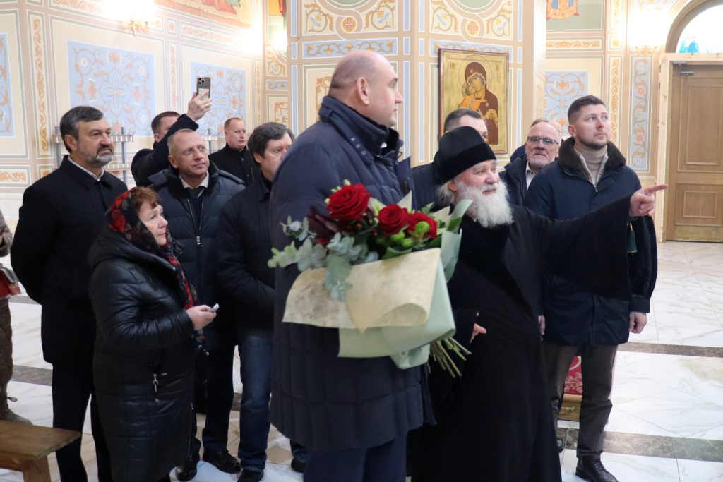 Евгений Солнцев осмотрел Свято-Троицкий кафедральный собор, роспись которого практически завершена, и проект обустройства прилегающей территории. В заключение встречи Владыка Алексий преподнес в дар губернатору икону преподобного Серафима Саровского.