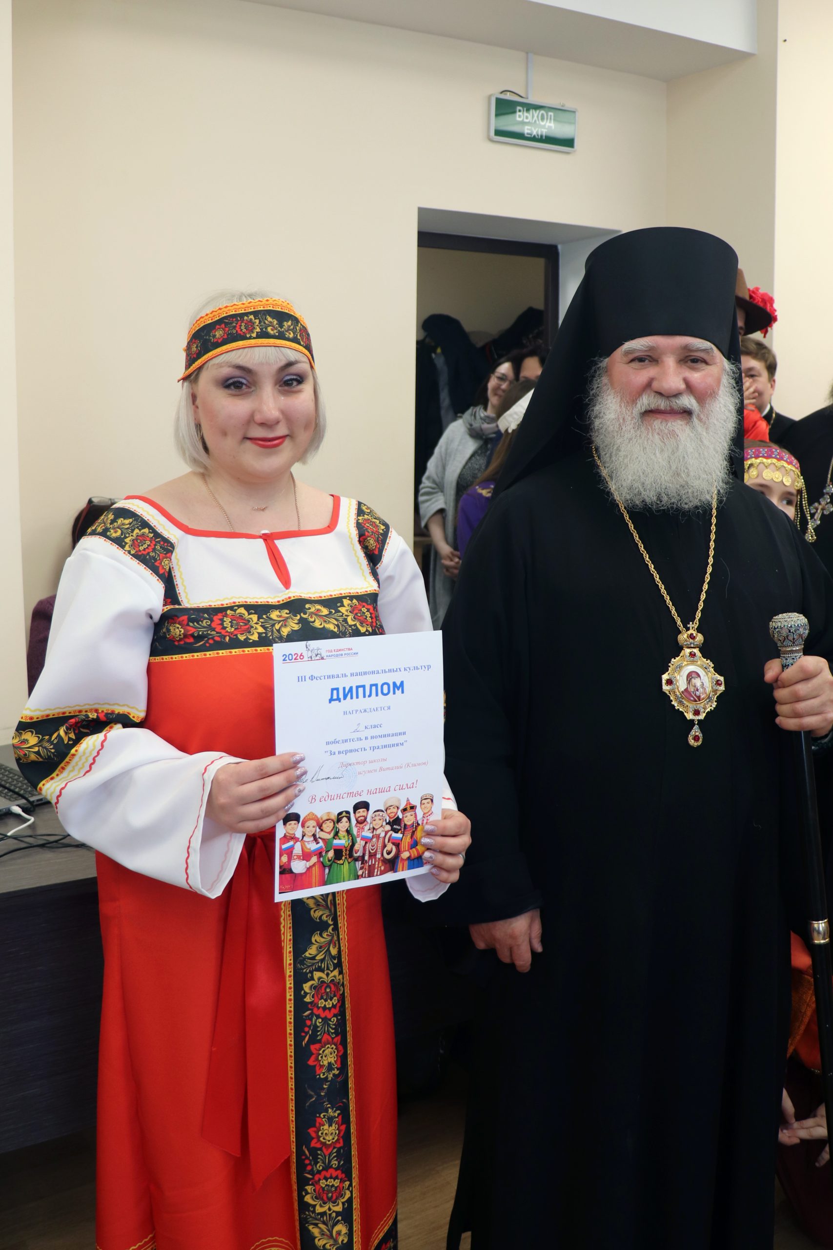 По окончании фестиваля Владыка Алексий вручил дипломы победителям и, конечно же, было сделано общее фото, которое еще раз символизирует название фестиваля «В единстве народов – сила России!» В завершение все желающие смогли попробовать принесенные блюда.