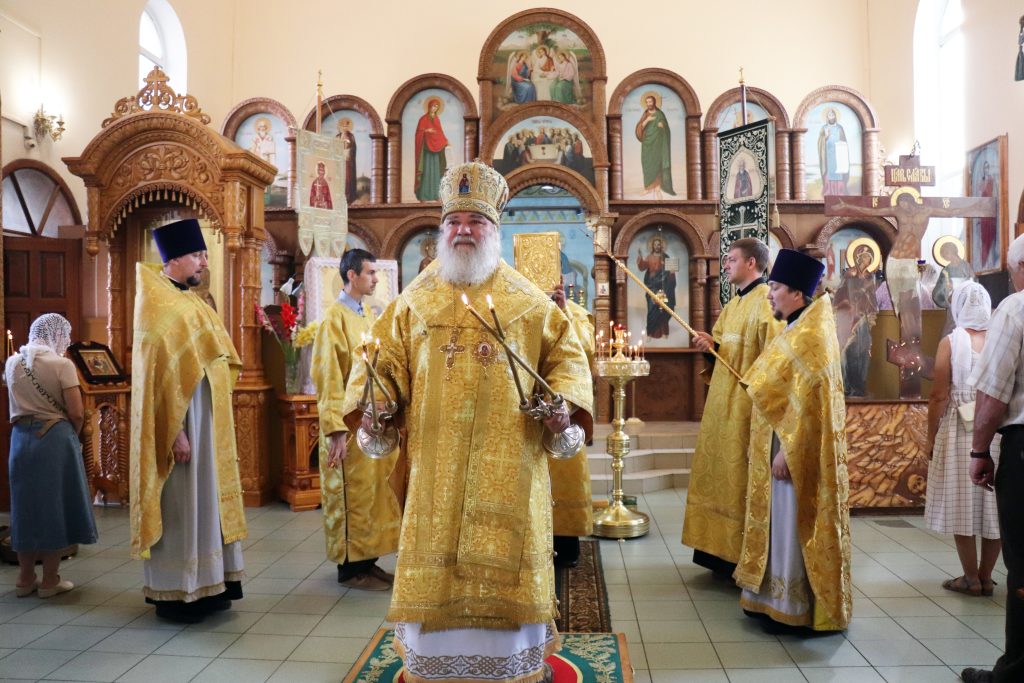 Бузулук. 30 июля 2022 года, всубботу седмицы 7-й по Пятидесятнице, память Вмц. Марины (Маргарииты) Антиохийской (IV), епископ Бузулукский и Сорочинский Алексий совершил Божественную литургию в Преображенском храме Свято-Троицкого кафедрального собора.