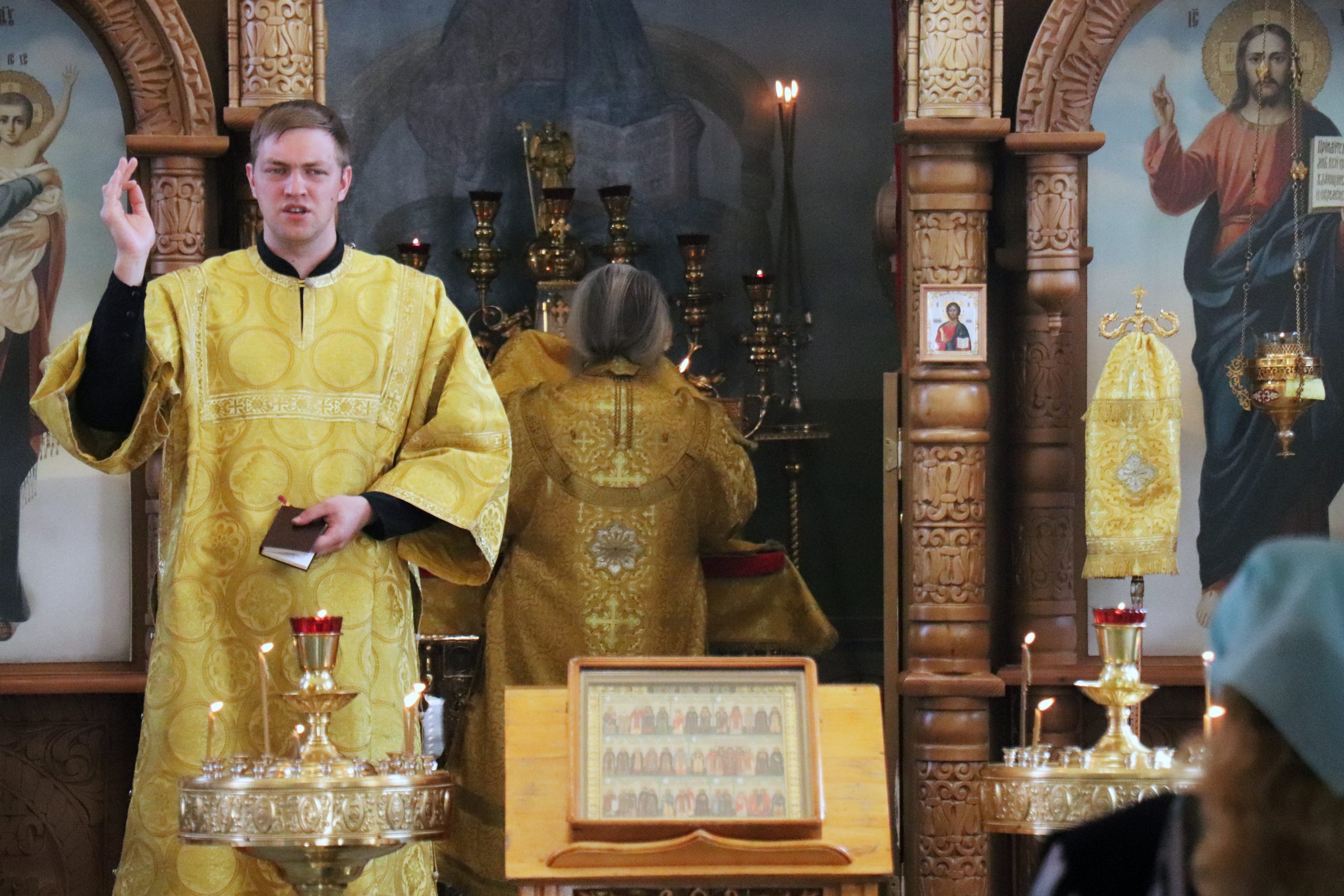 Его Преосвященству сослужили: иерей Дионисий Горбунов, иерей Михаил Цапяк и иеродиакон Христофор (Ткаченко). Пел хор под управлением Натальи Задориной.