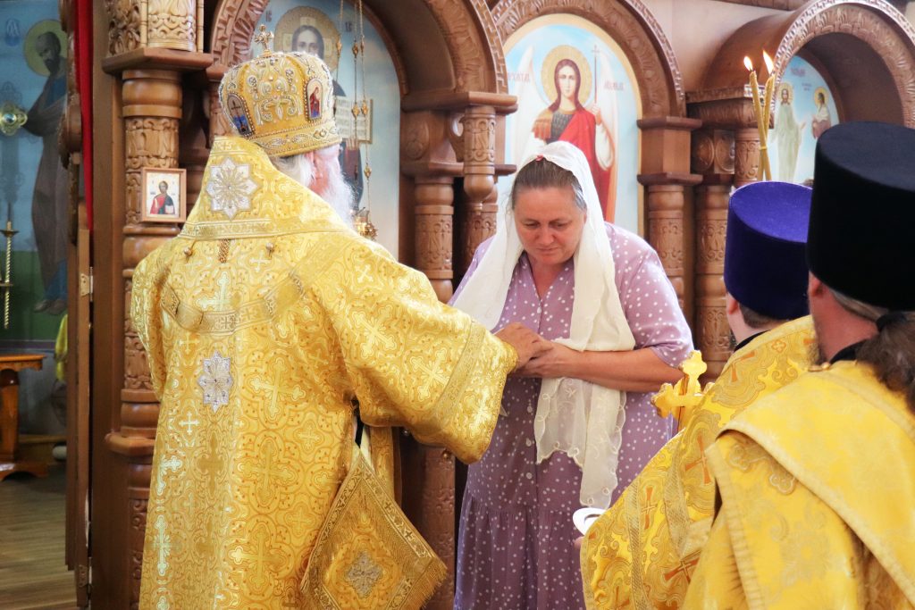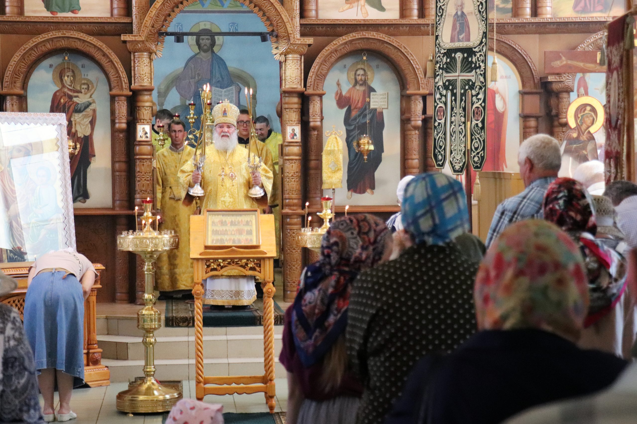 На богослужении Владыка Алексий обратился с проповедью к прихожанам: «Во имя Отца и Сына и Святого Духа. Сегодня мы слышим краткое, но весьма назидательное чтение Евангелия. Господь говорит: Кто любит отца или мать более, нежели Меня, не достоин Меня; и кто любит сына или дочь более, нежели Меня, не достоин Меня; и кто не берет креста своего и следует за Мною, тот не достоин Меня. (Мф 10:37).