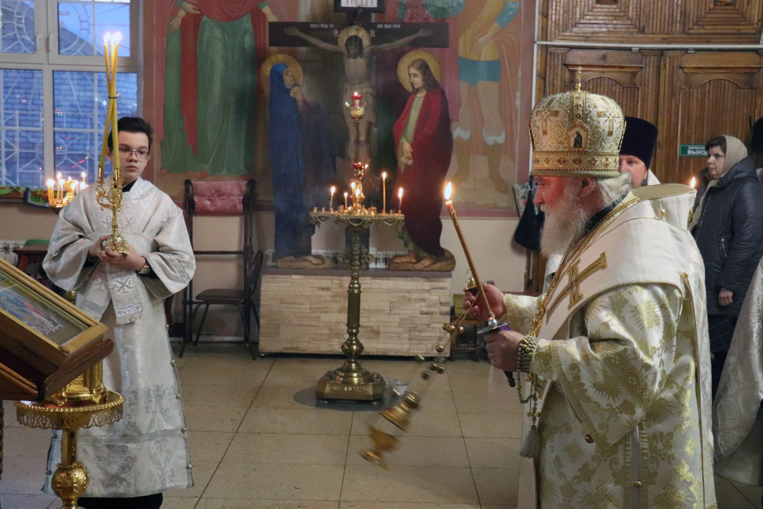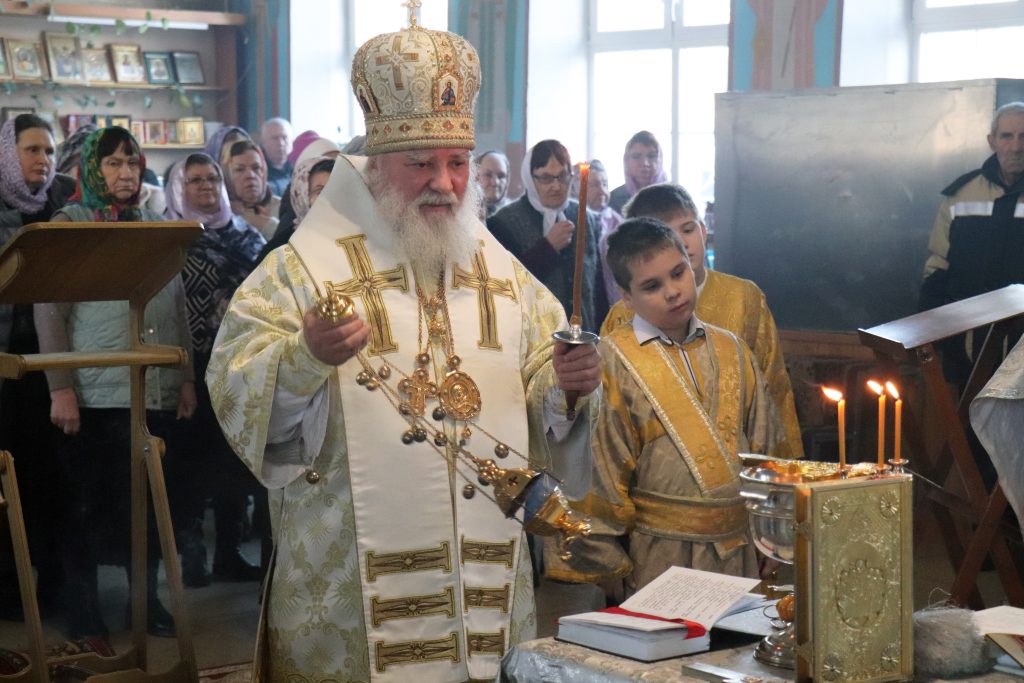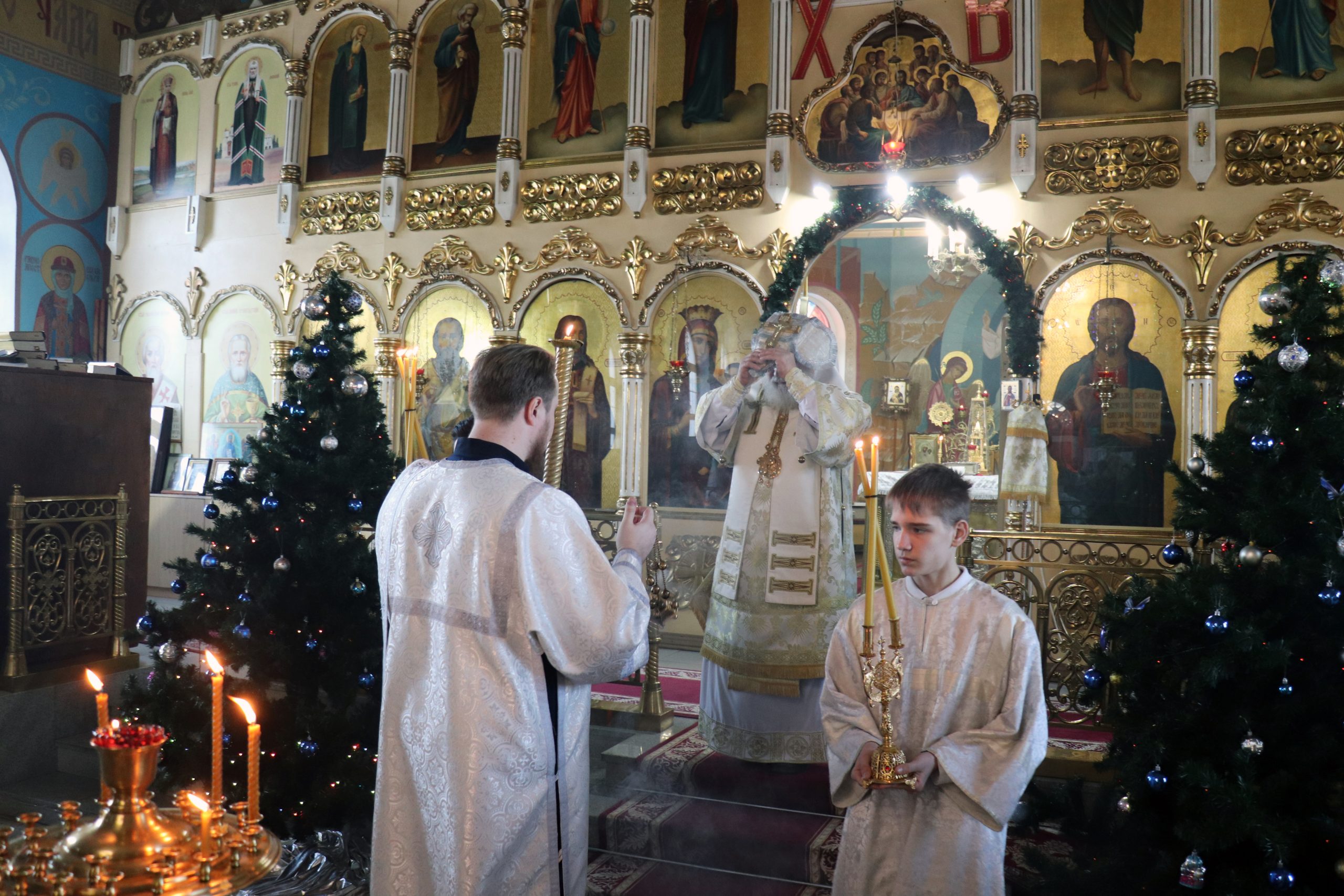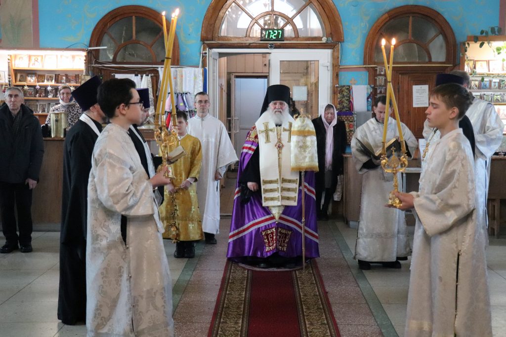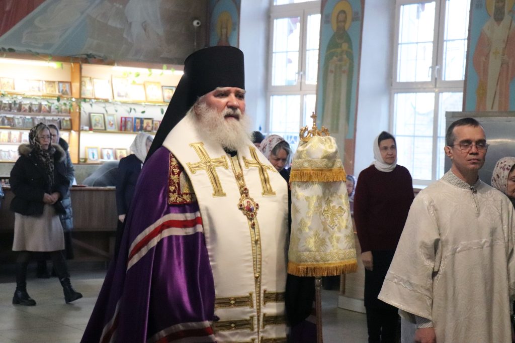Его Преосвященству сослужили: настоятель собора протоиерей Сергий Корчагин, протоиерей Александр Аухимик, протоиерей Виссарион Илларионов, иерей Павел Шелемин и диакон Иоанн Шумилин.