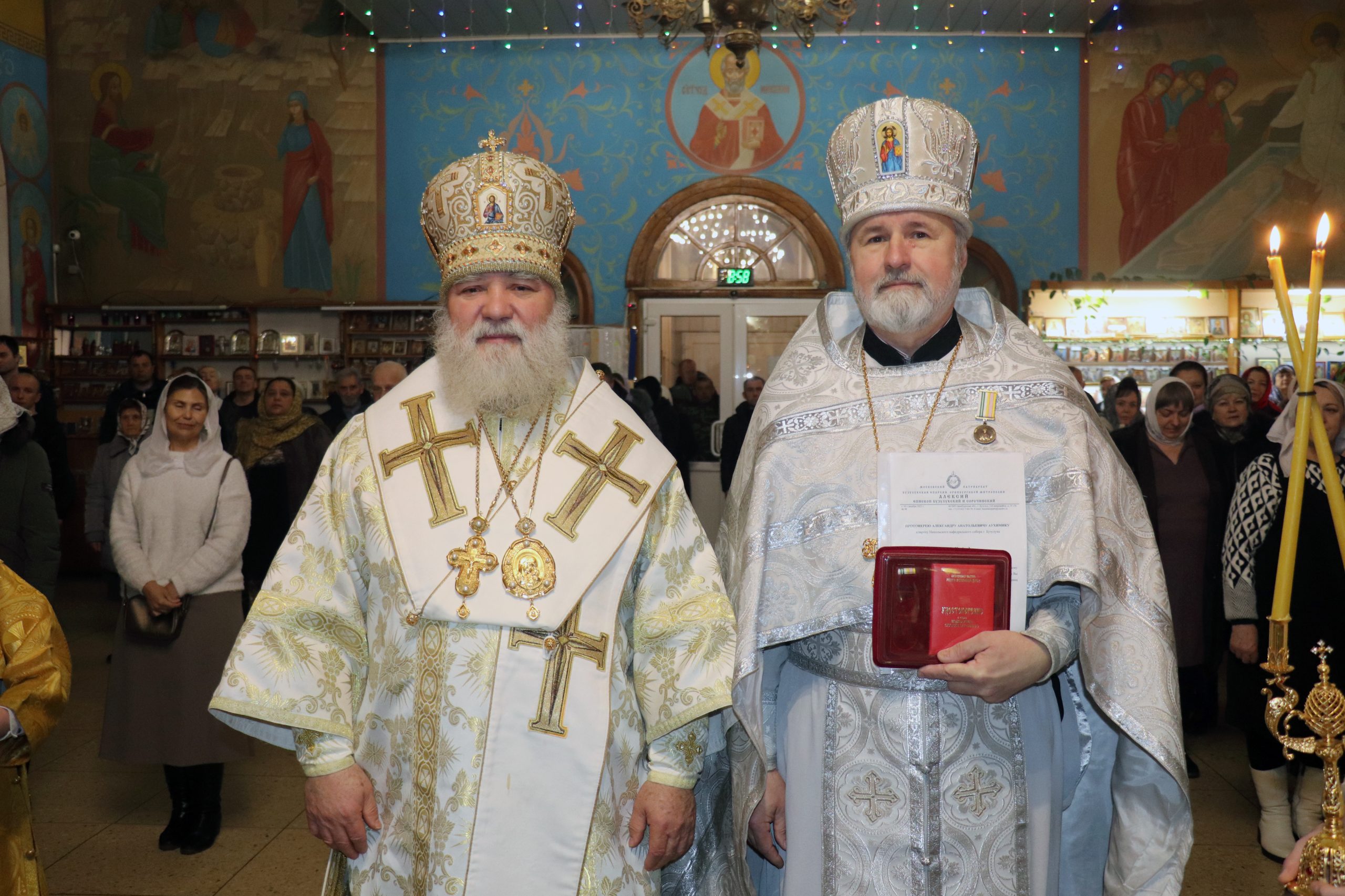 На малом входе Литургии Владыка Алексий наградил протоиерея Александра Аухимика медалью Бузулукской епархии священномученика Константина Бугурусланского третей степени, во внимание к усердному служению Церкви Божией и в связи с 40-летием пресвитерской хиротонии.